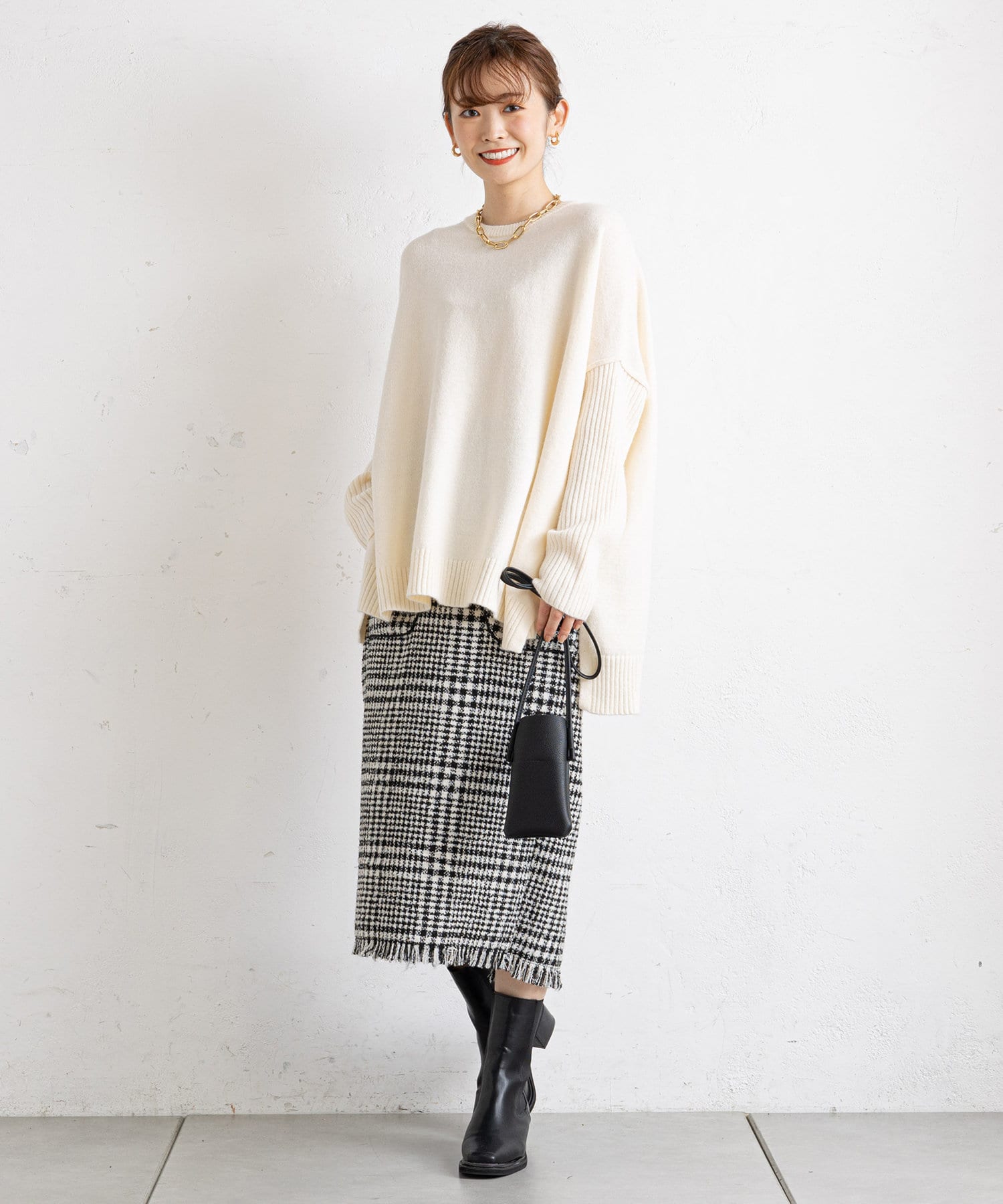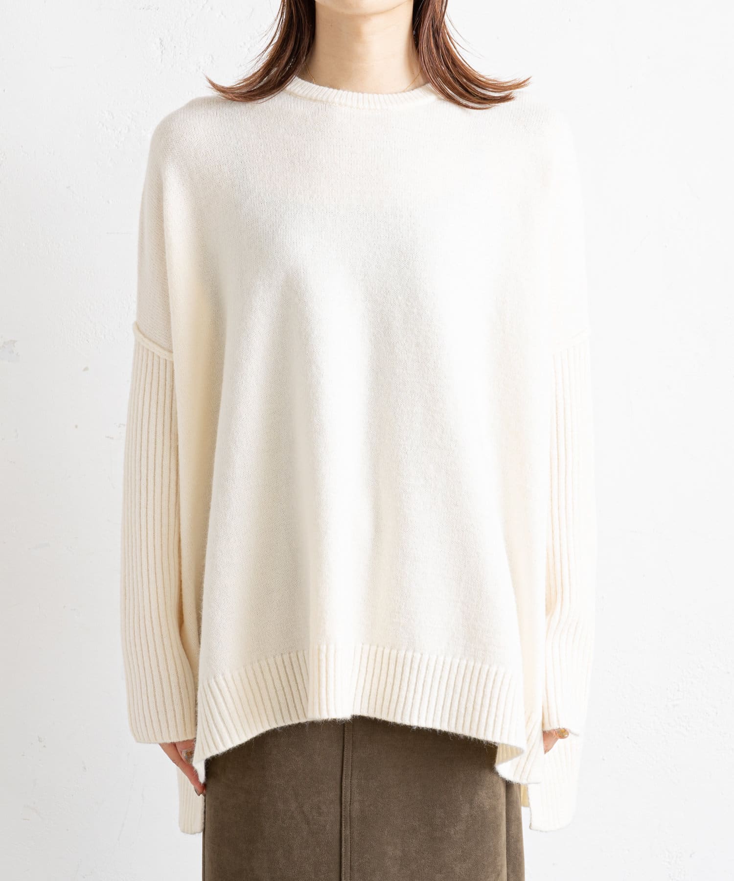 ●ゆったり身幅と細身のリブ切り替えのスリーブで