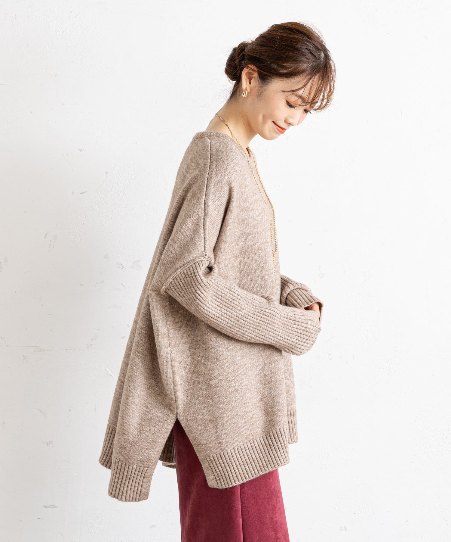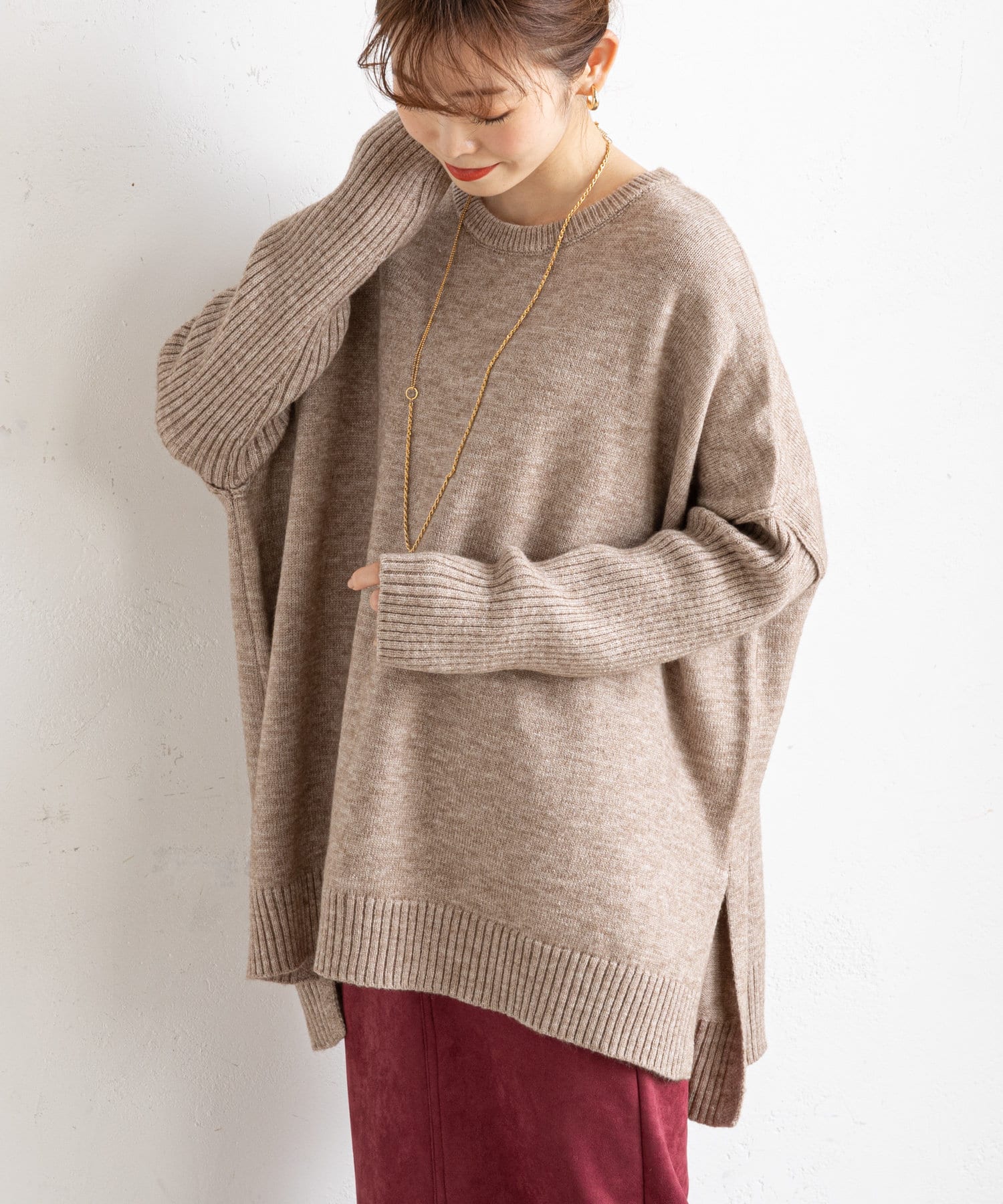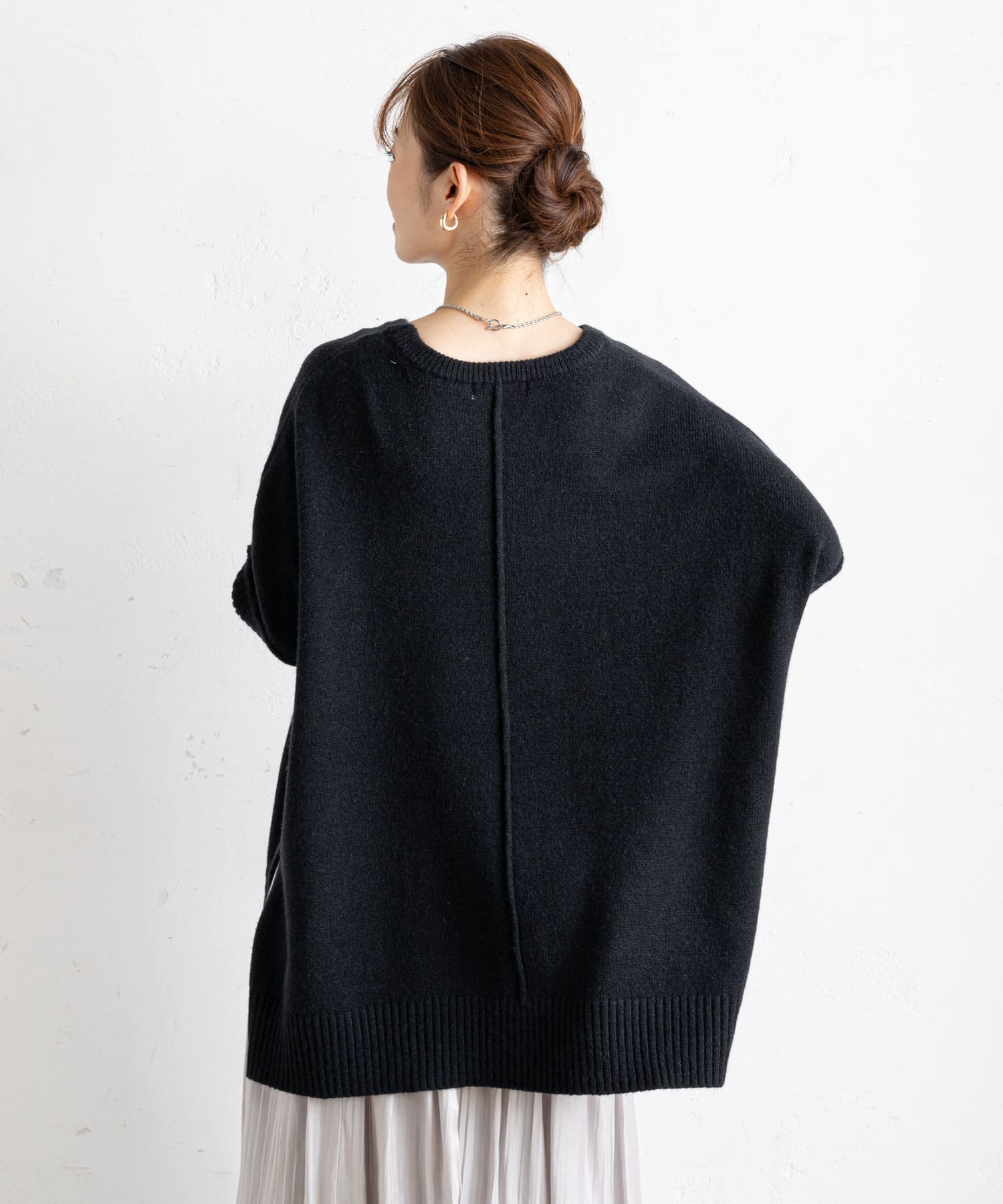 • prose verse(プロズヴェール) 編地切り替えポンチョ風ニット