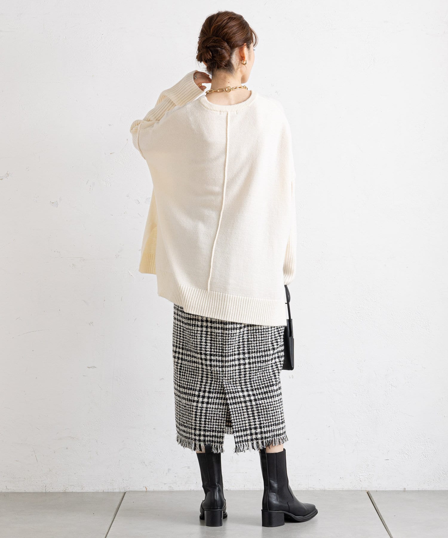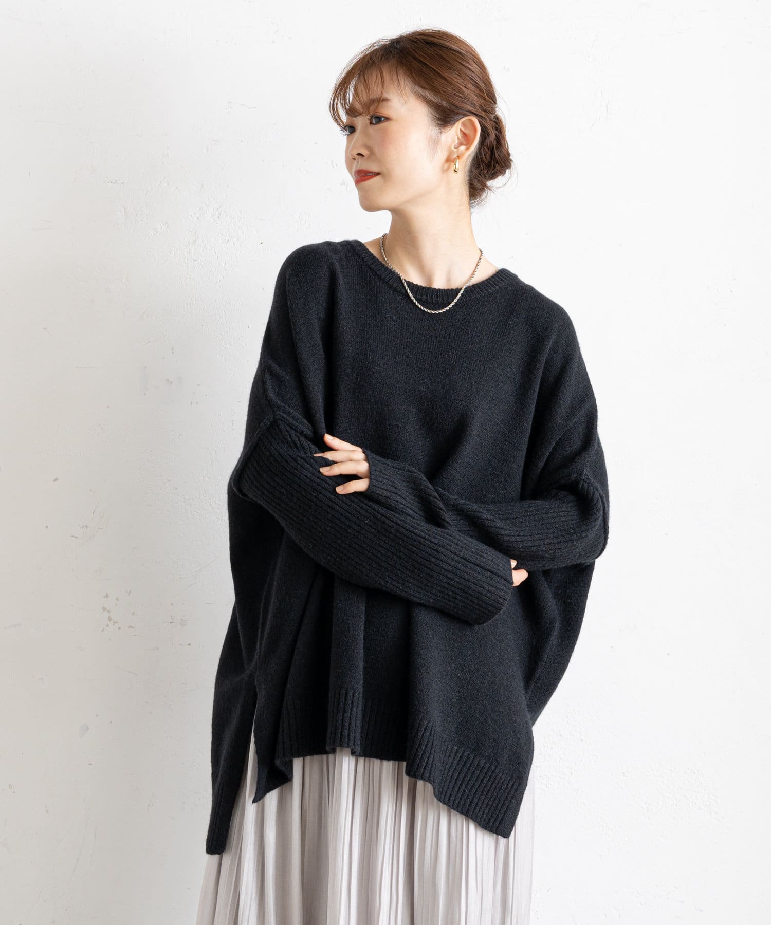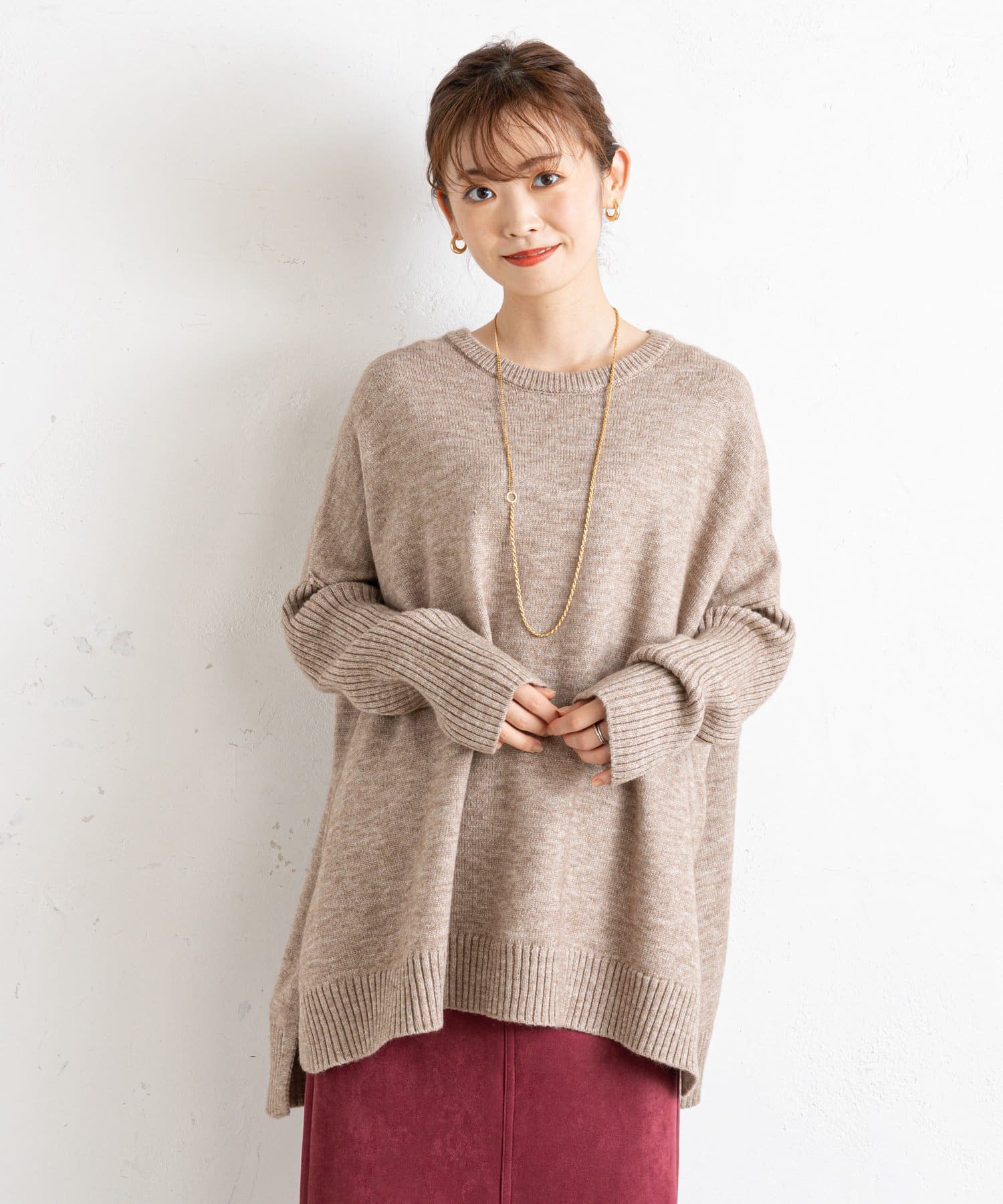 • prose verse(プロズヴェール) 編地切り替えポンチョ風ニット