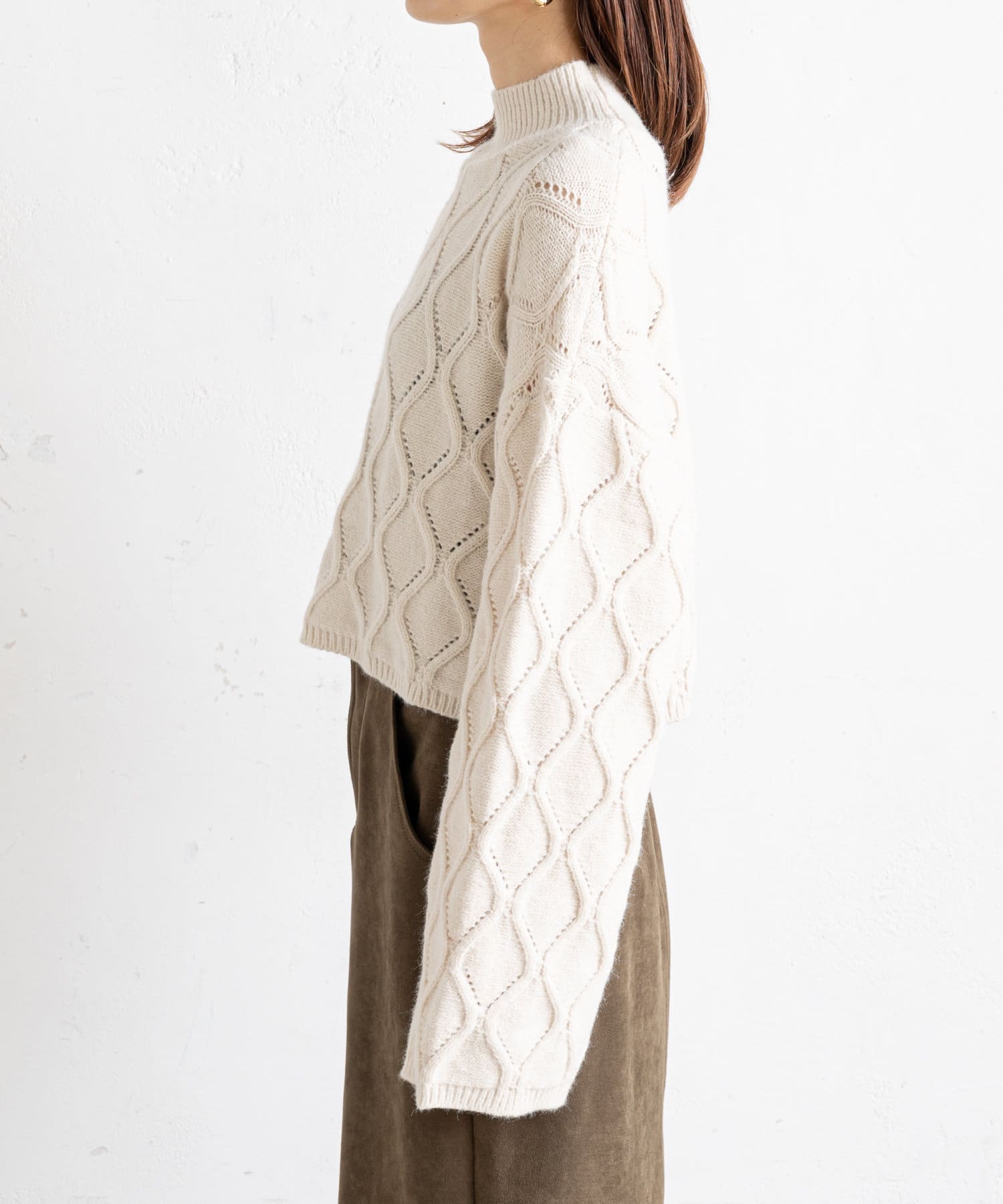 • prose verse(プロズヴェール) アイレットアーガイルショート丈ニット