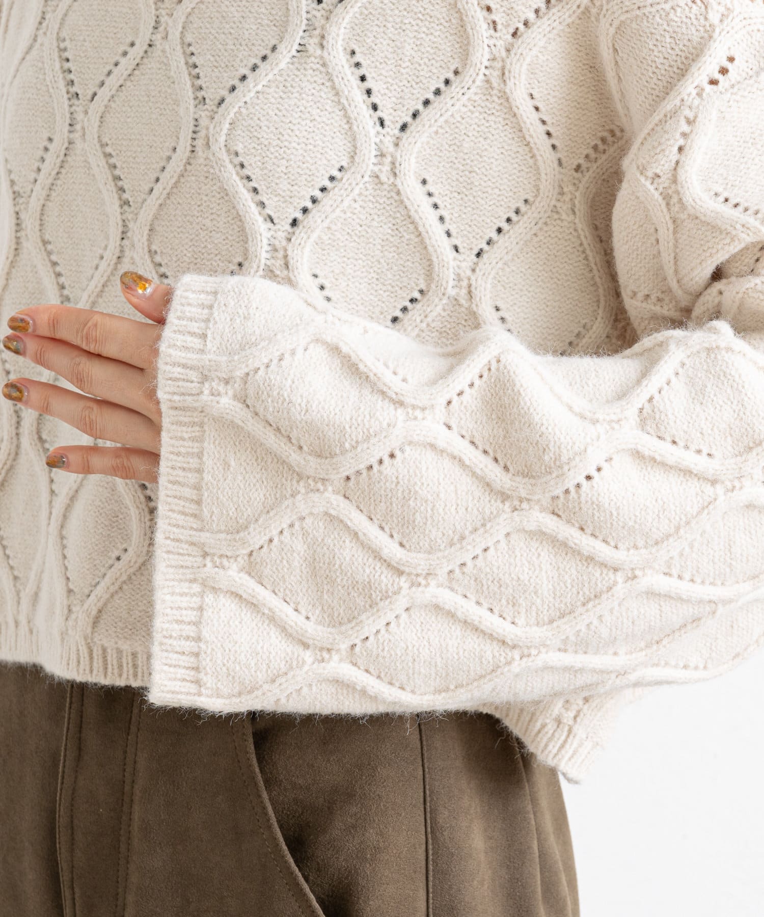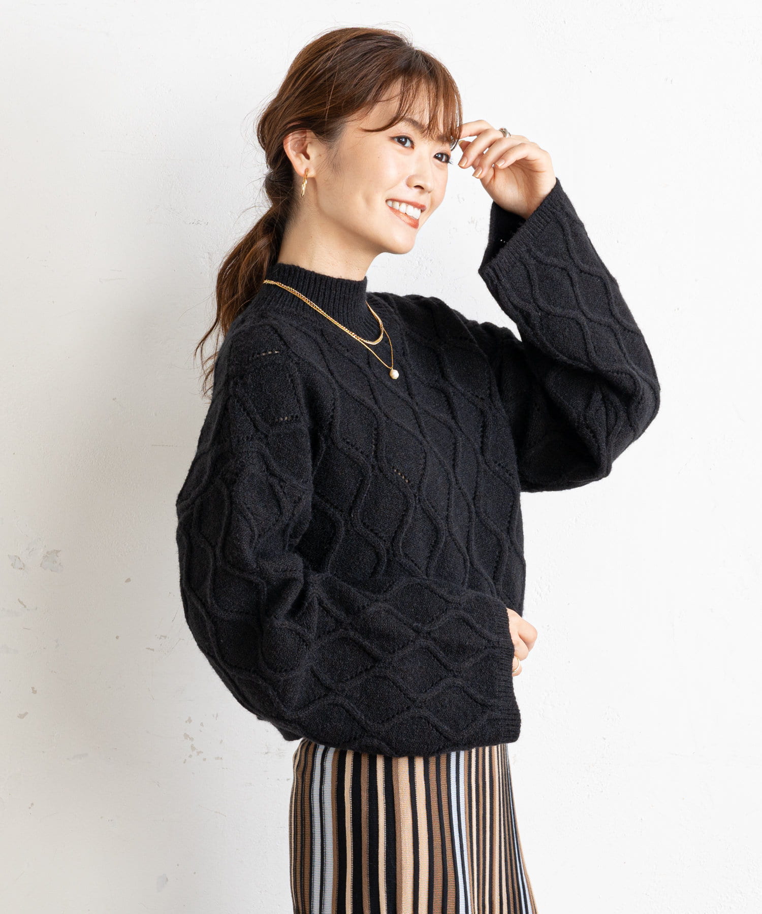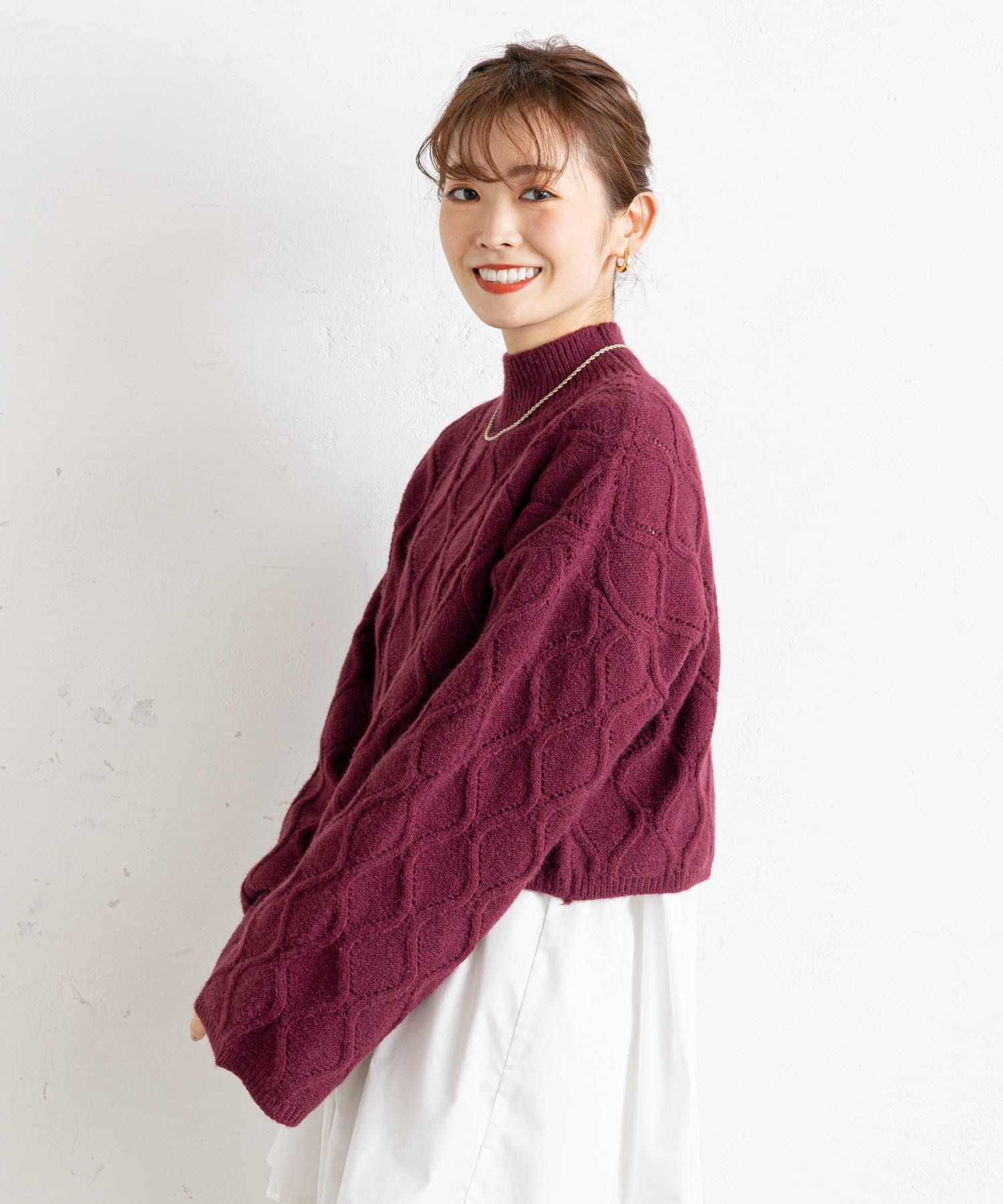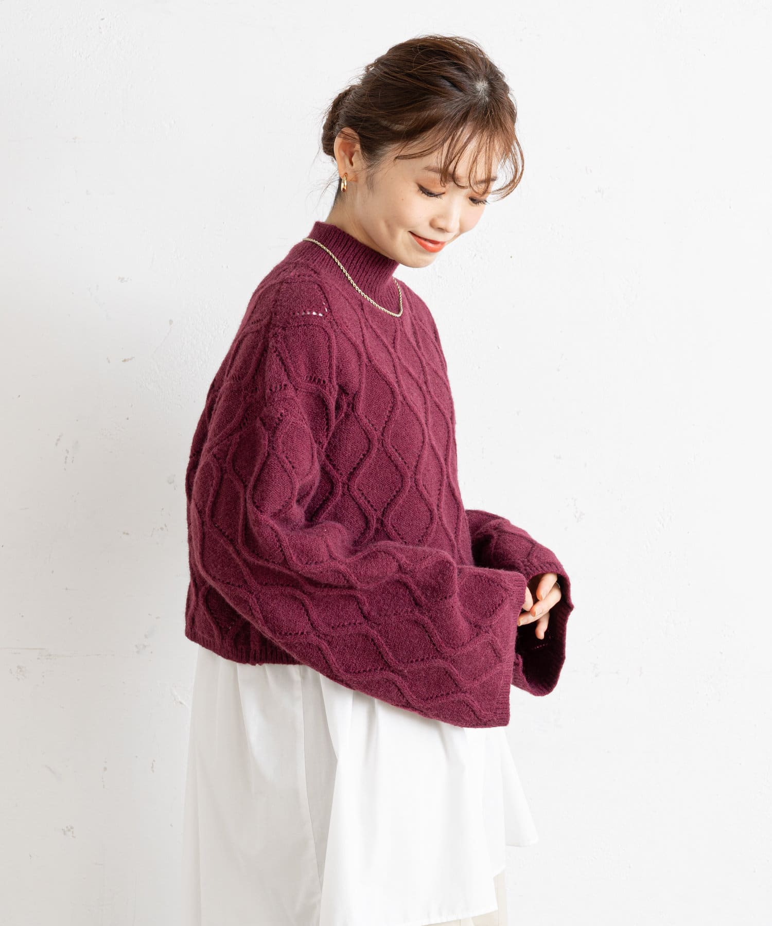 ●立体感のあるアーガイル調の編地が目を引くニット