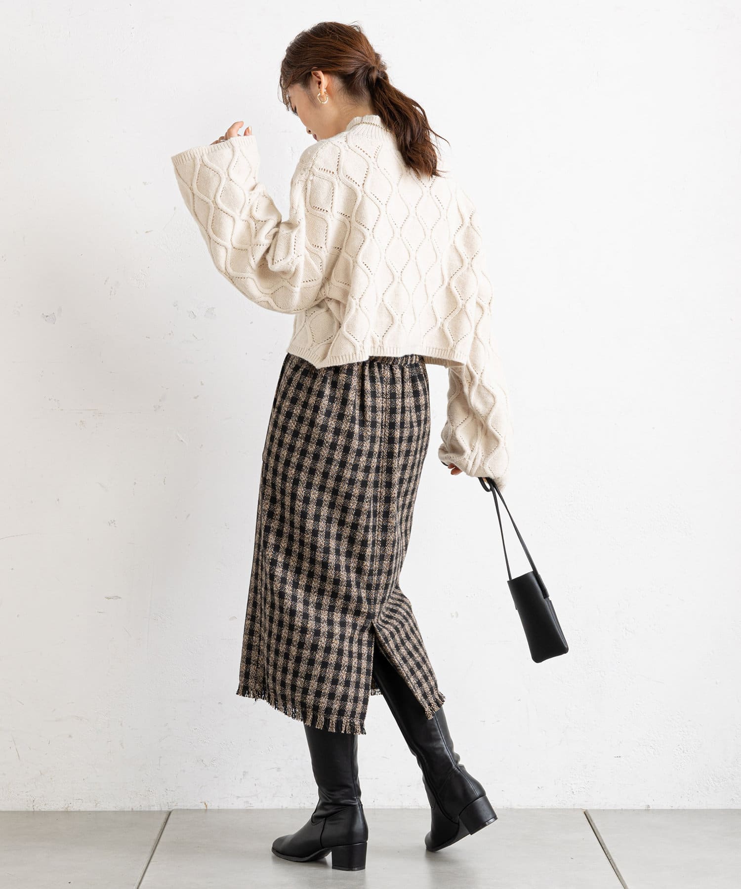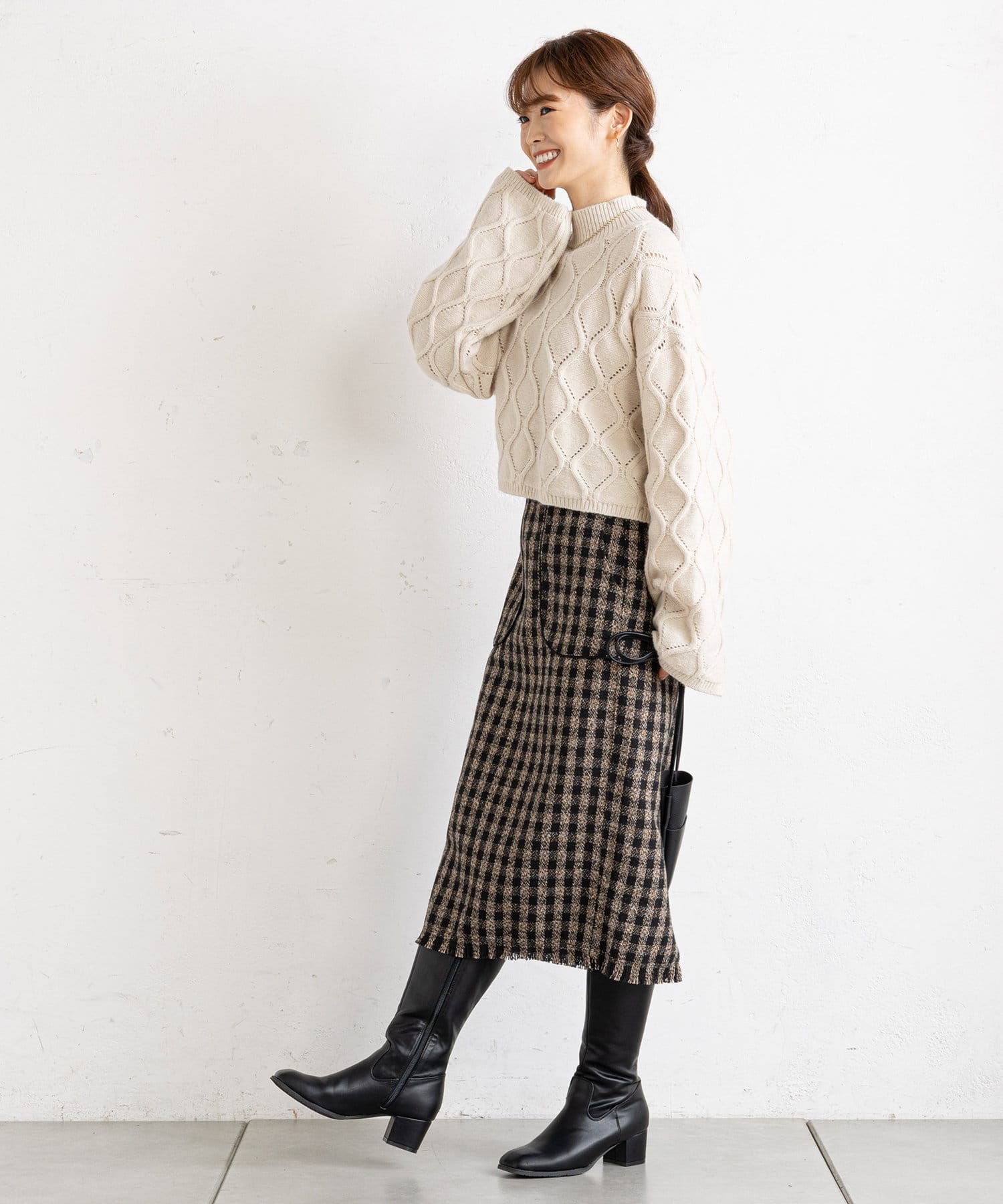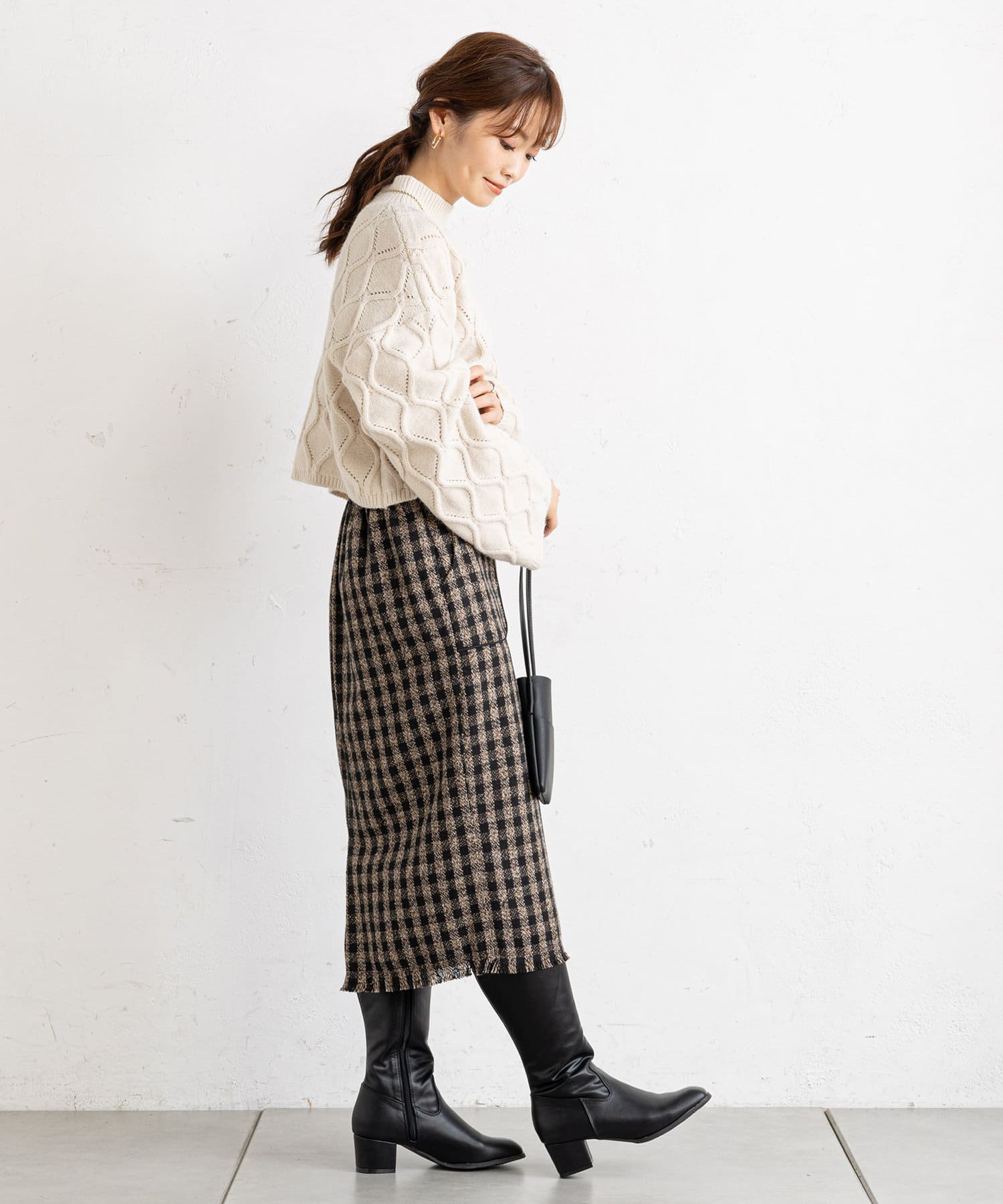 prose verse(プロズヴェール) アイレットアーガイルショート丈ニット
