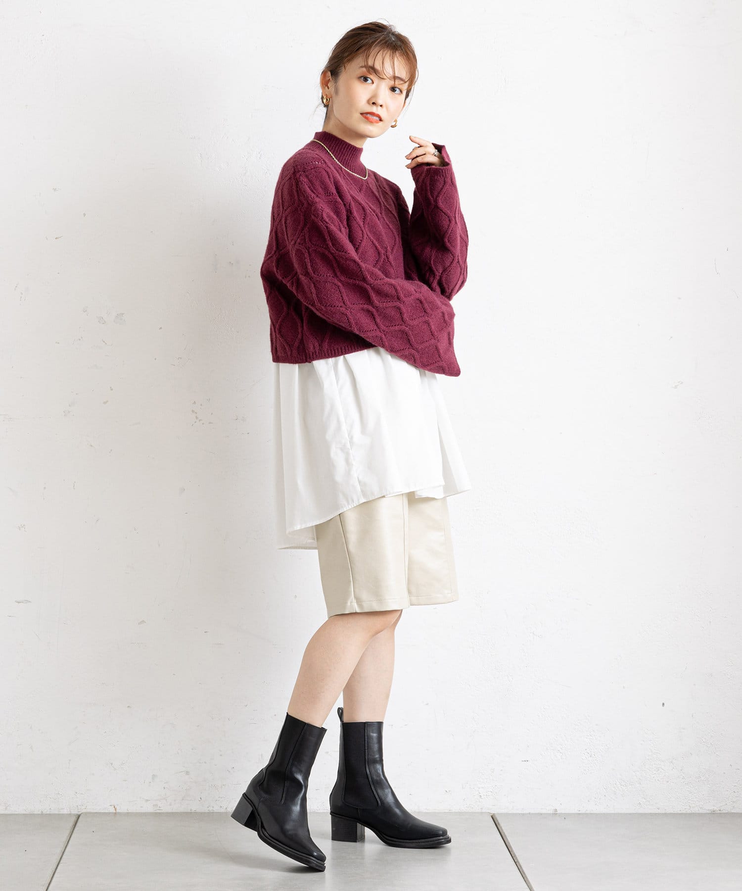 旬顔ショート丈ニット