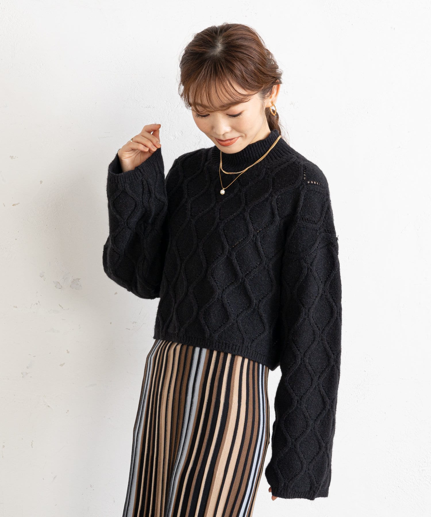 アイレットアーガイルショート丈ニット
