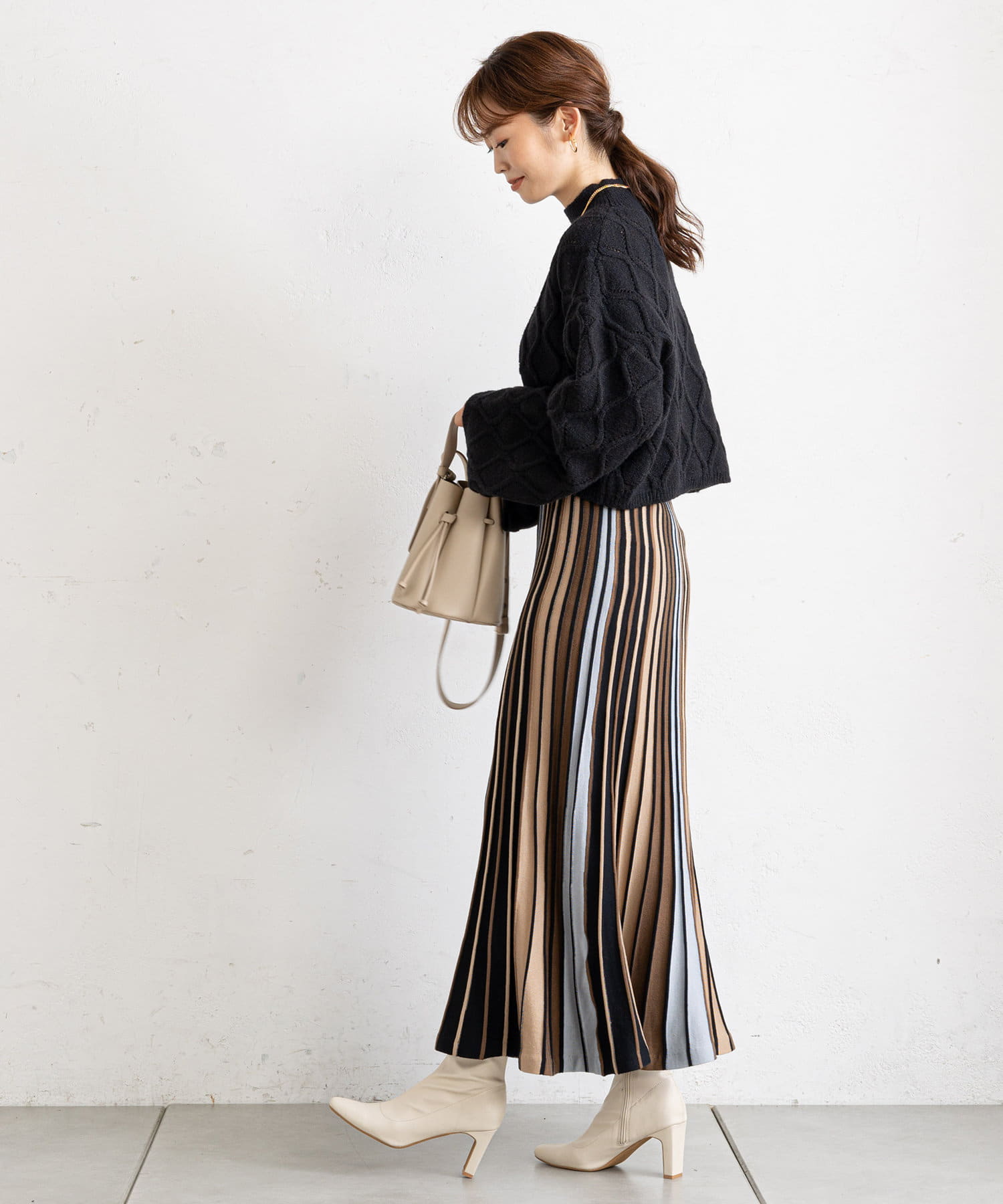 合わせで脚が長く見えるスタイルアップコーデに