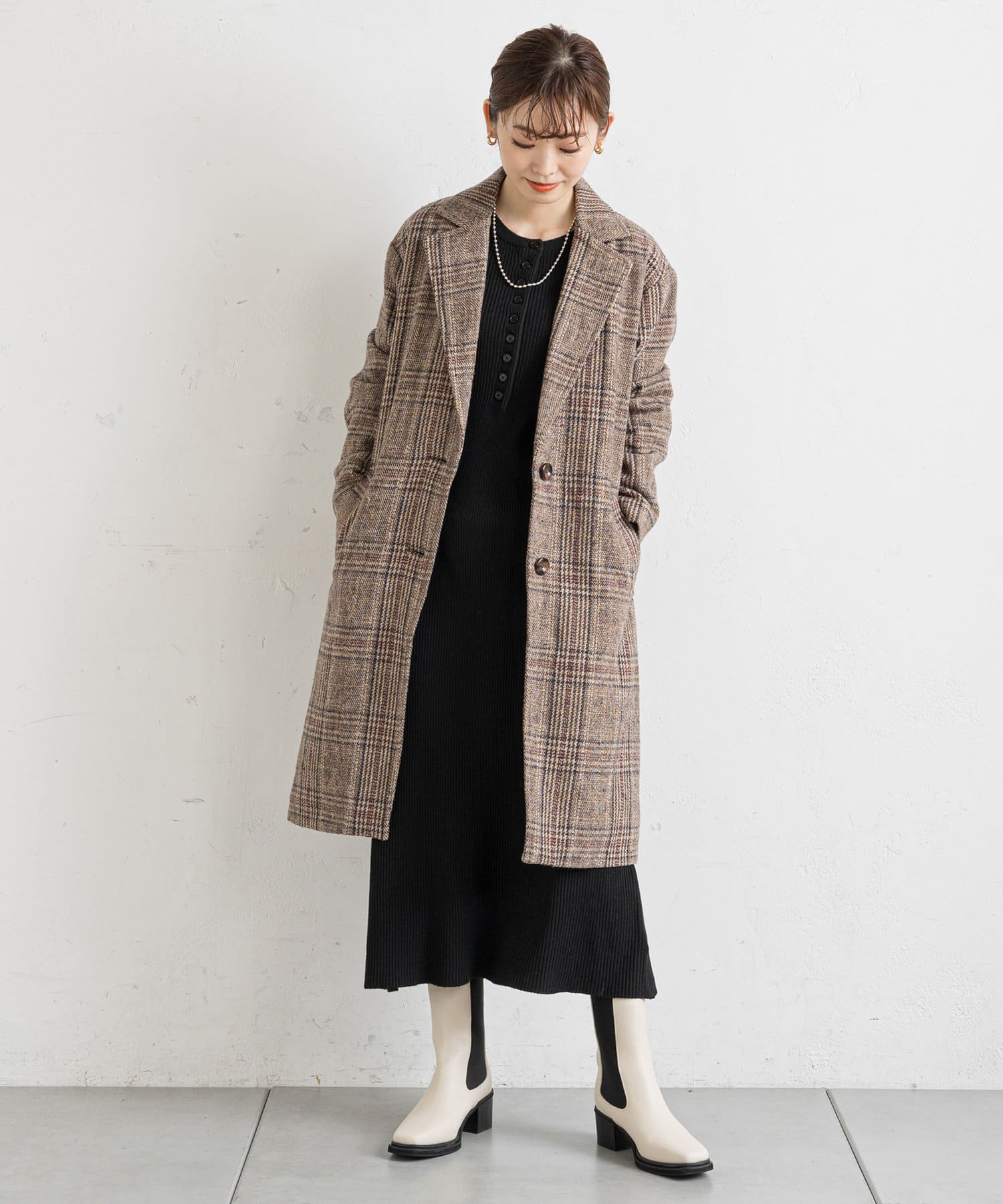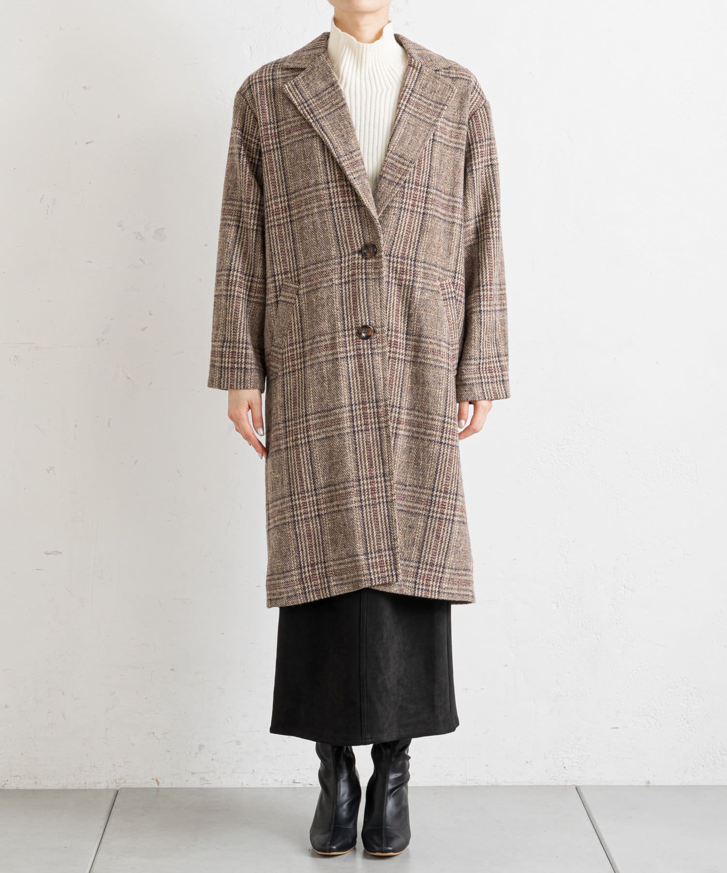 ●トラッドなグレンチェックがレトロな雰囲気のチェスターコート