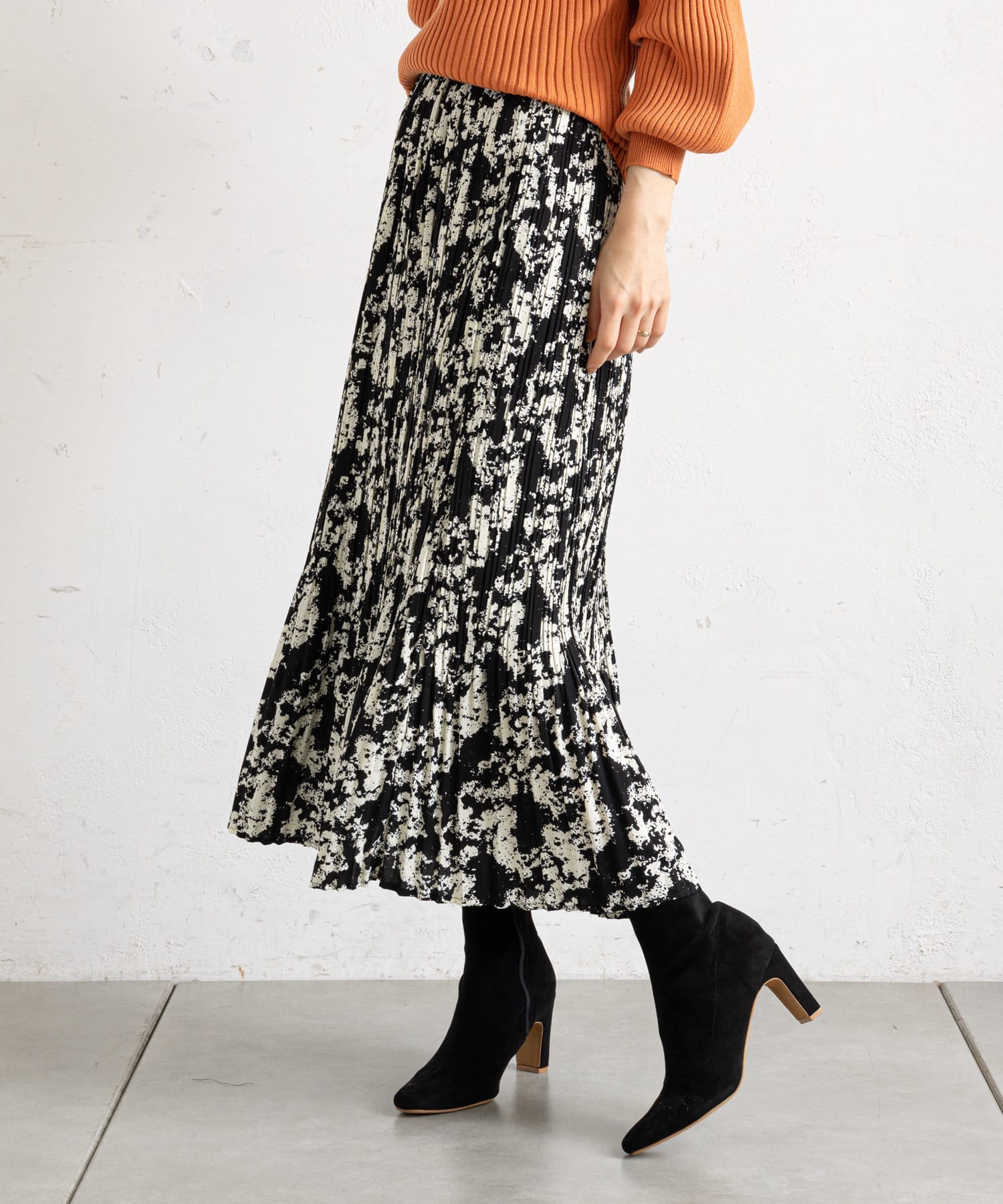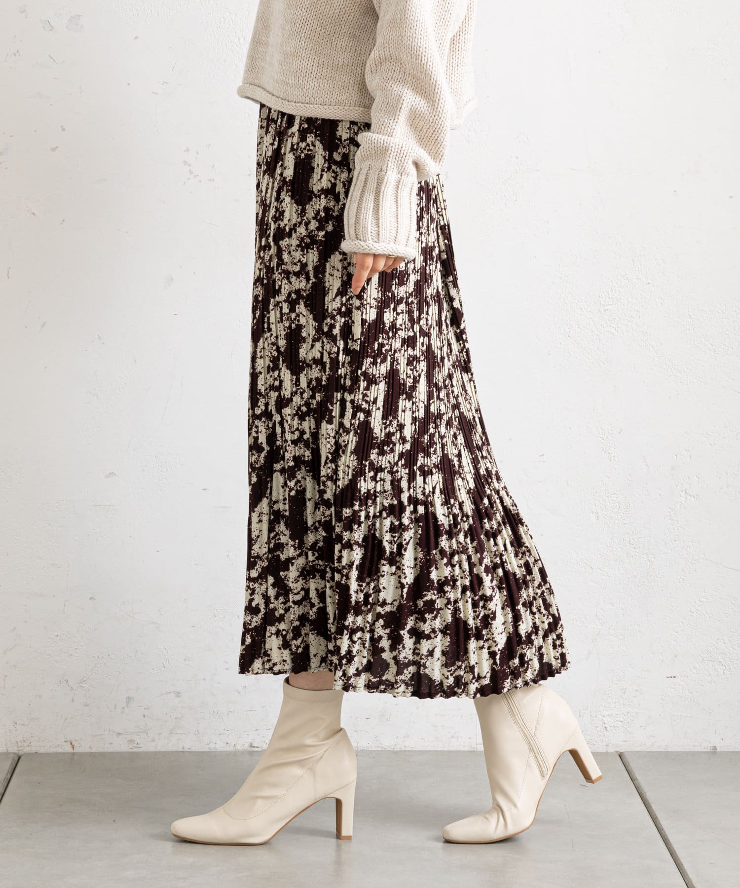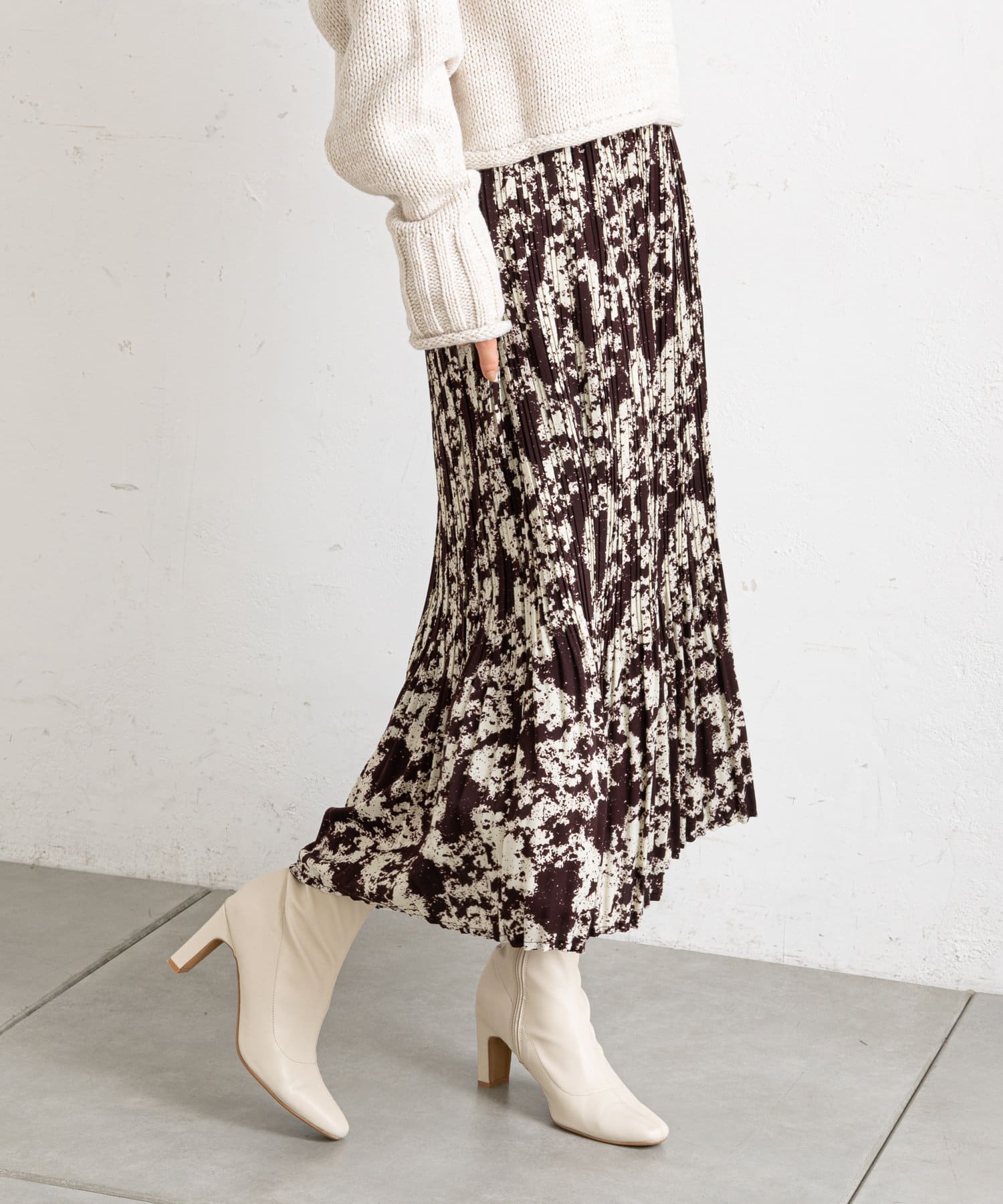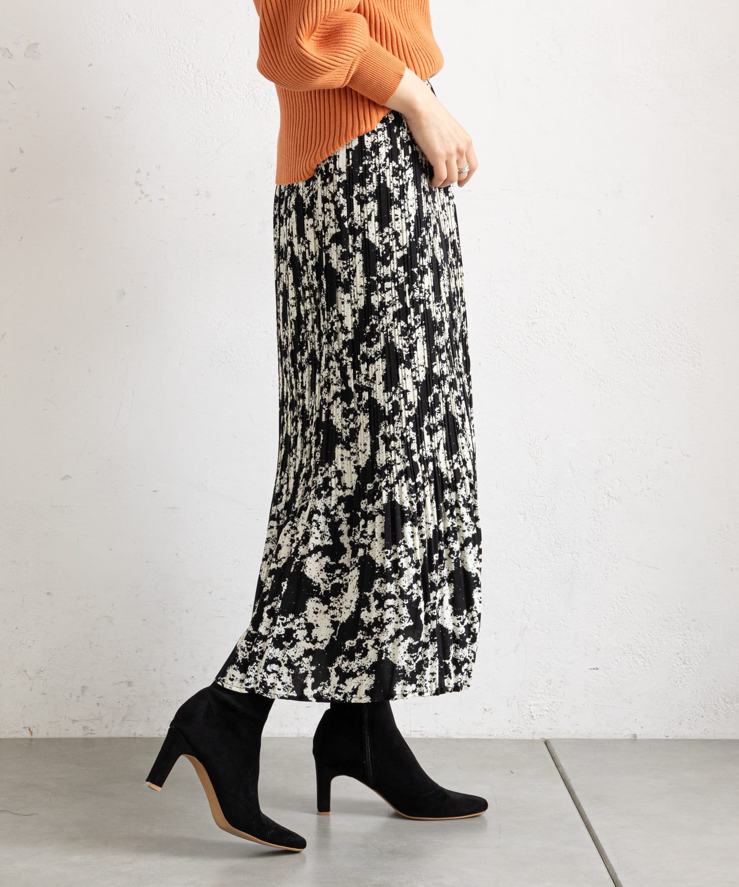 【ウエストゴム仕様】ニュアンス柄消しプリーツスカート