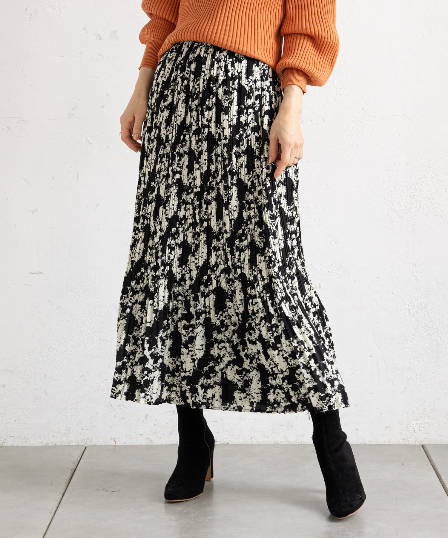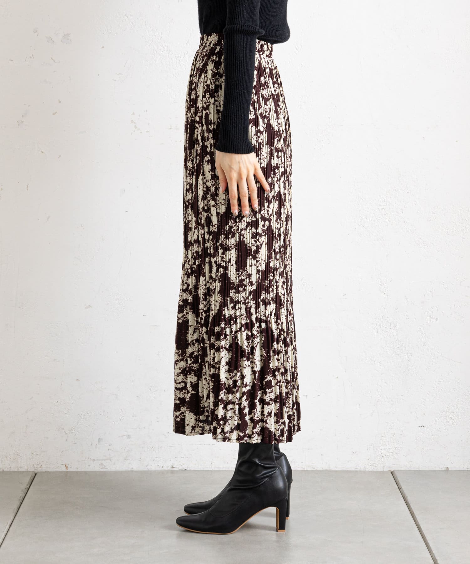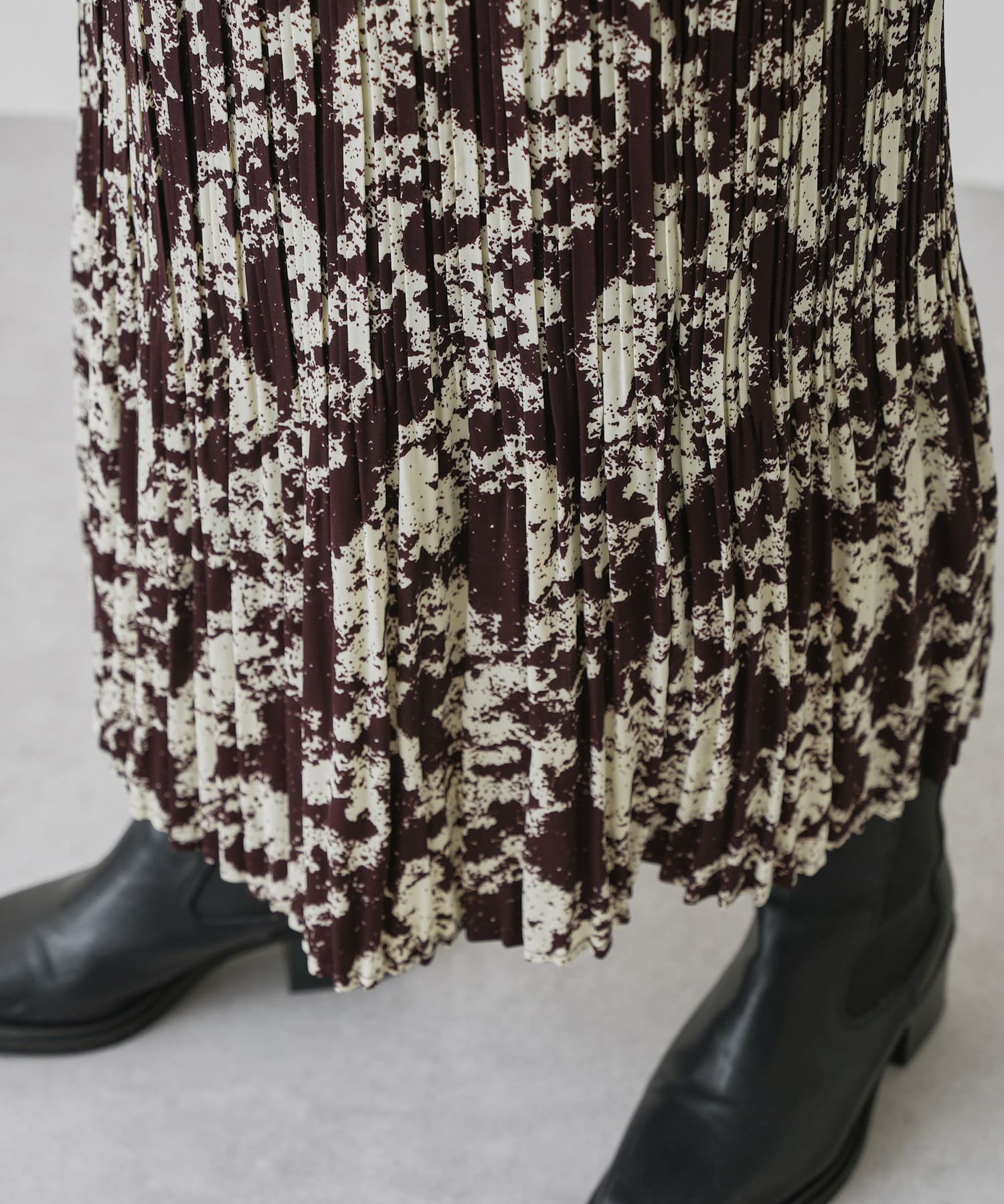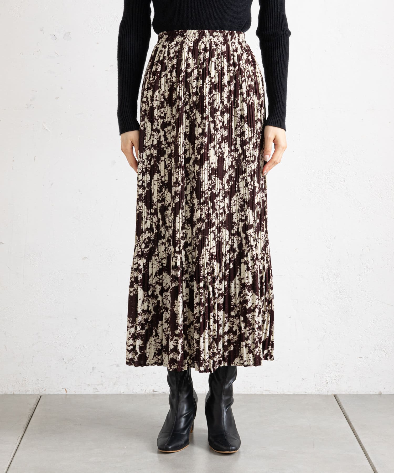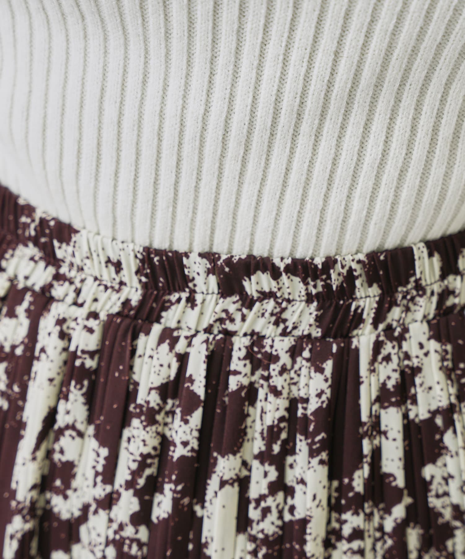 【ウエストゴム仕様】ニュアンス柄消しプリーツスカート