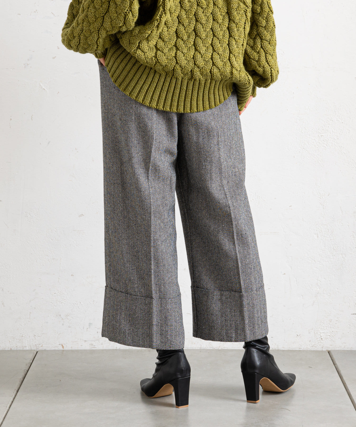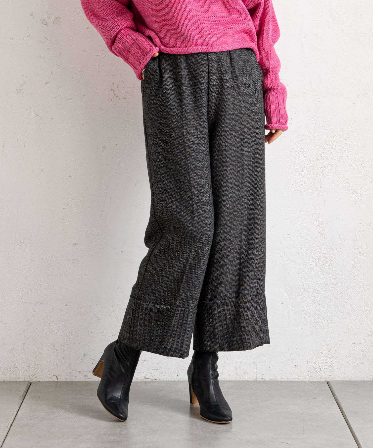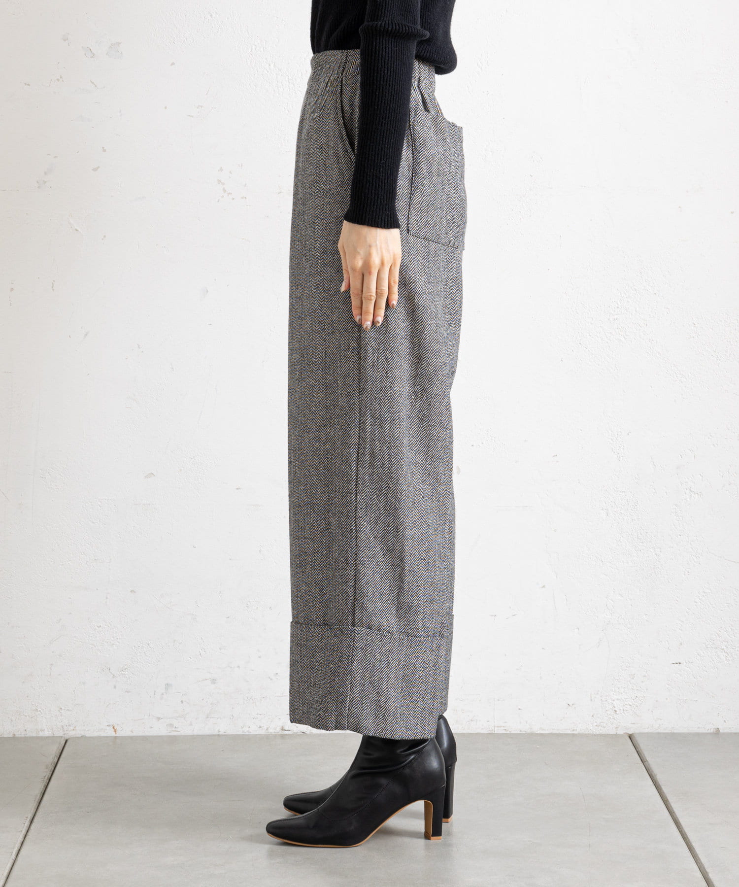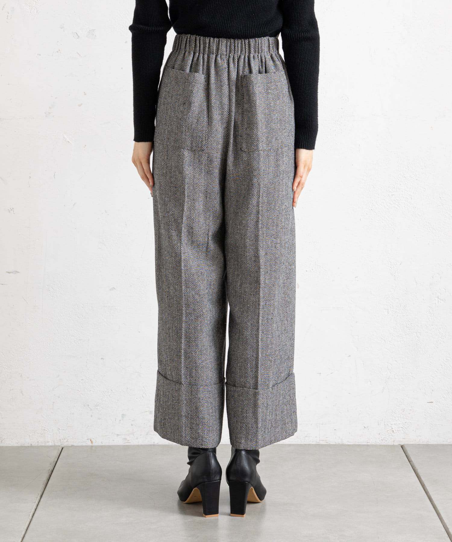 【バックウエストゴム仕様】ロールヘムツイードヘリンボーンパンツ