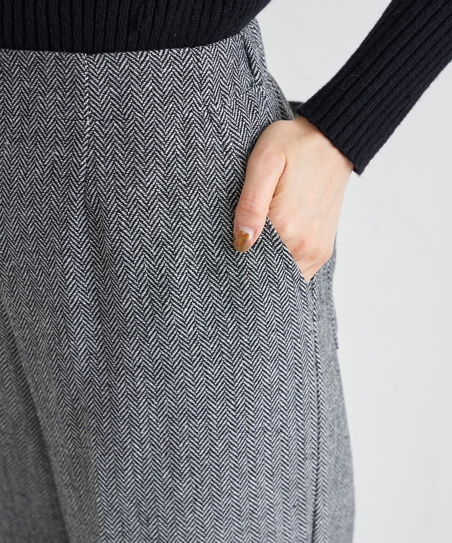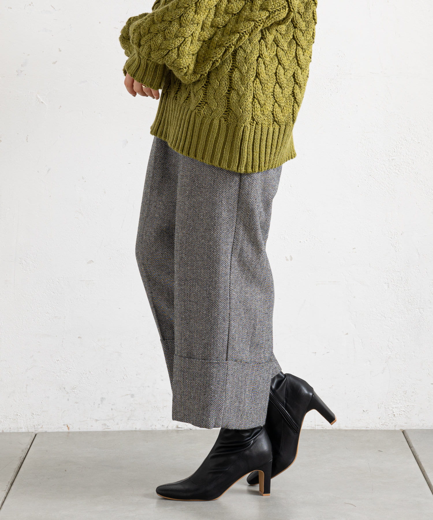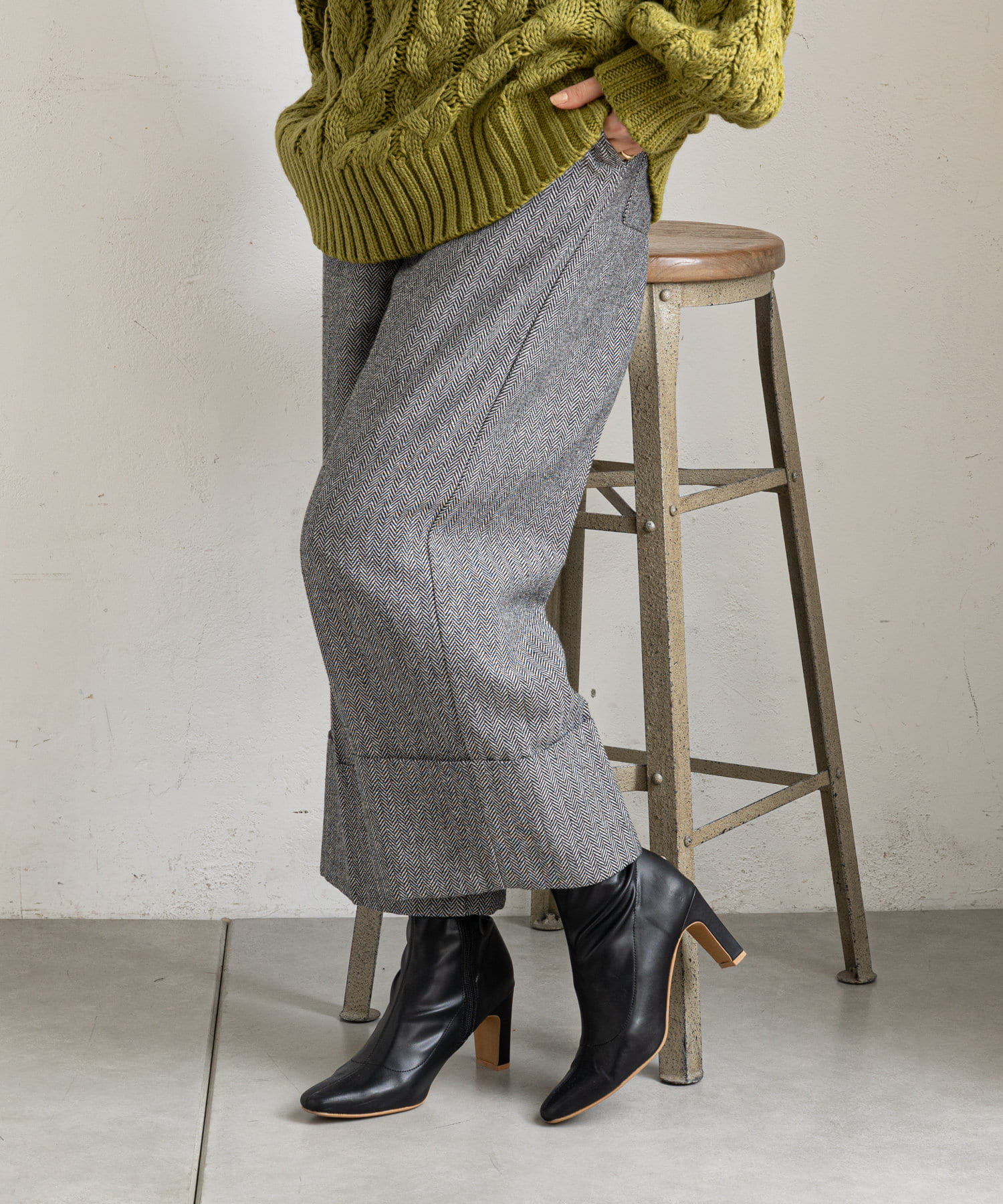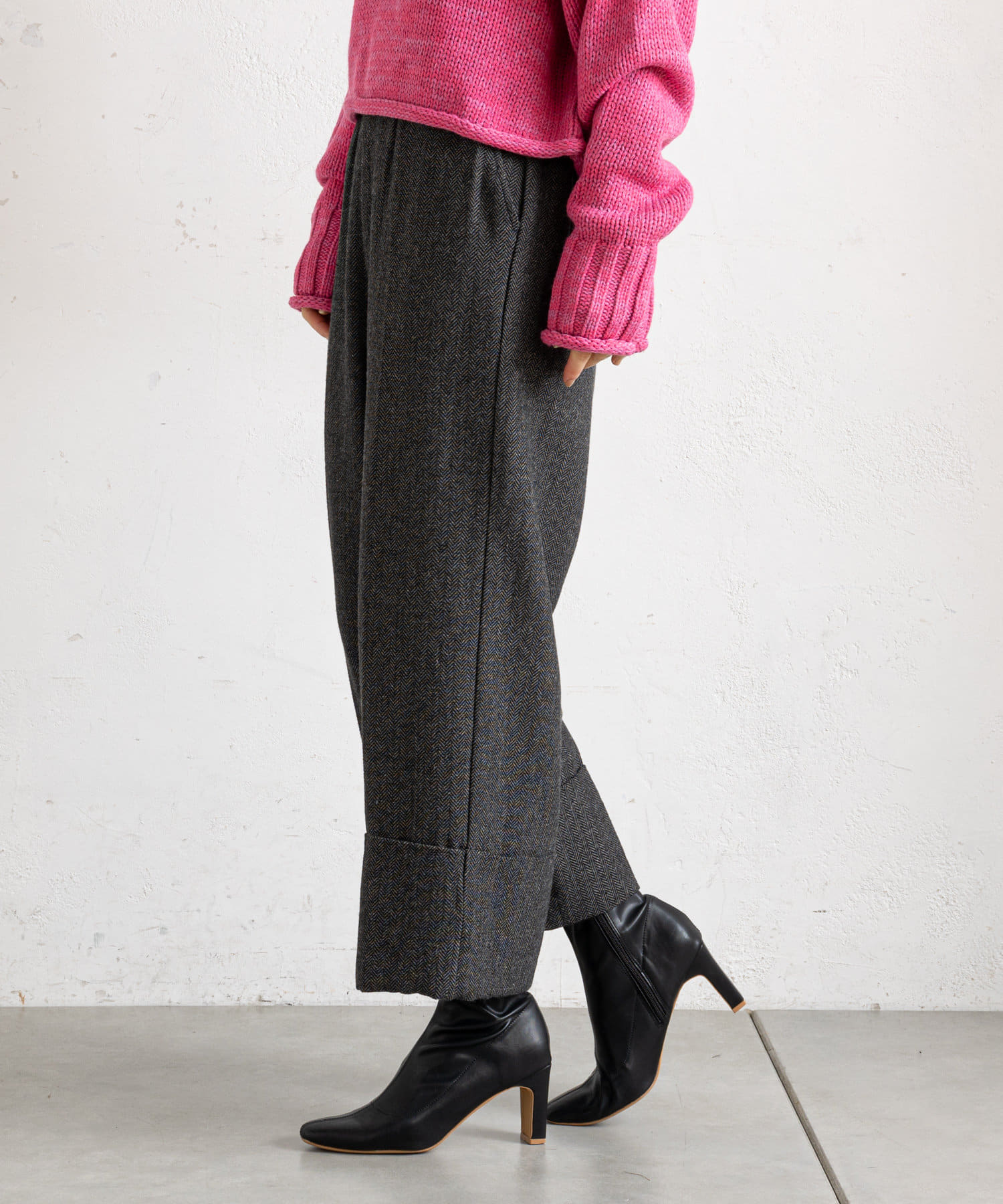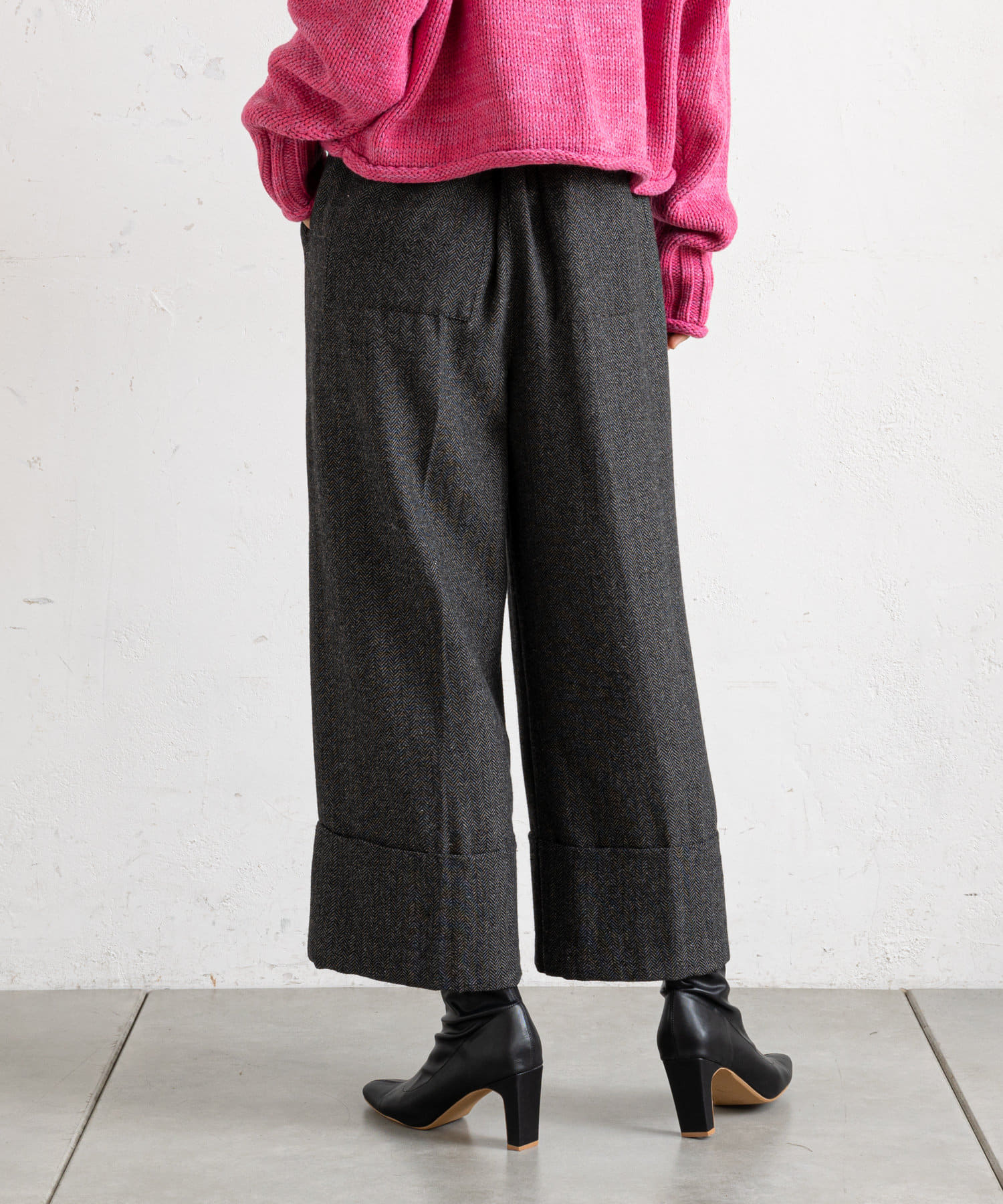 【バックウエストゴム仕様】ロールヘムツイードヘリンボーンパンツ