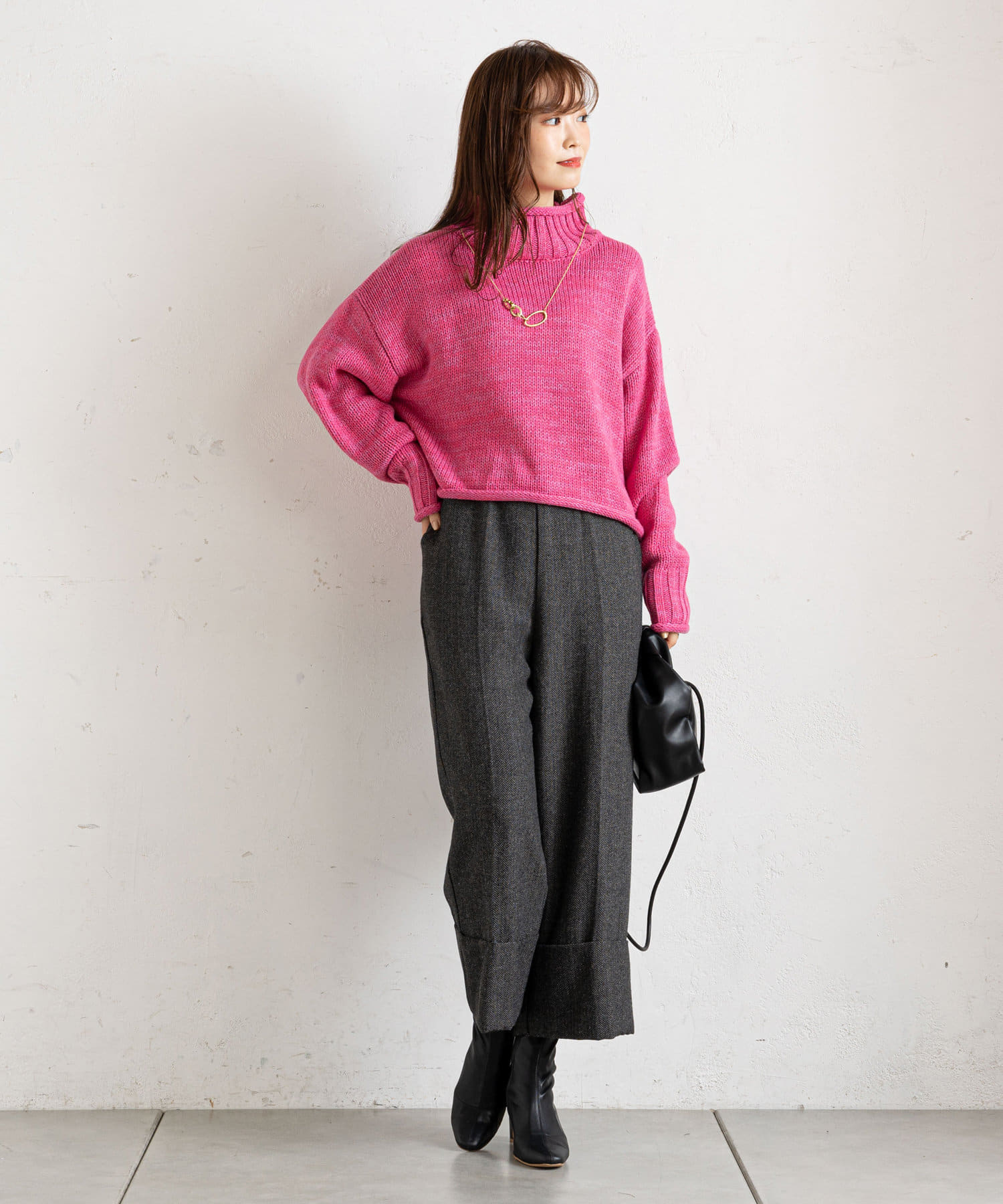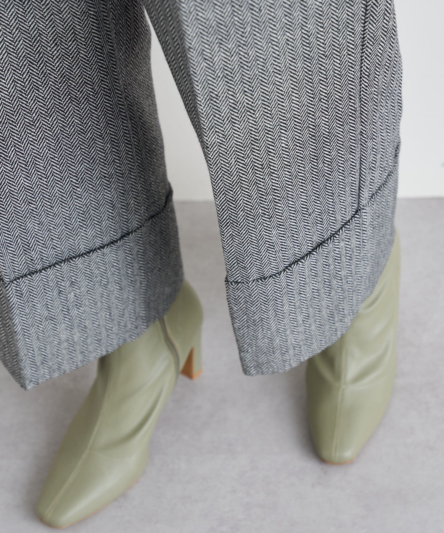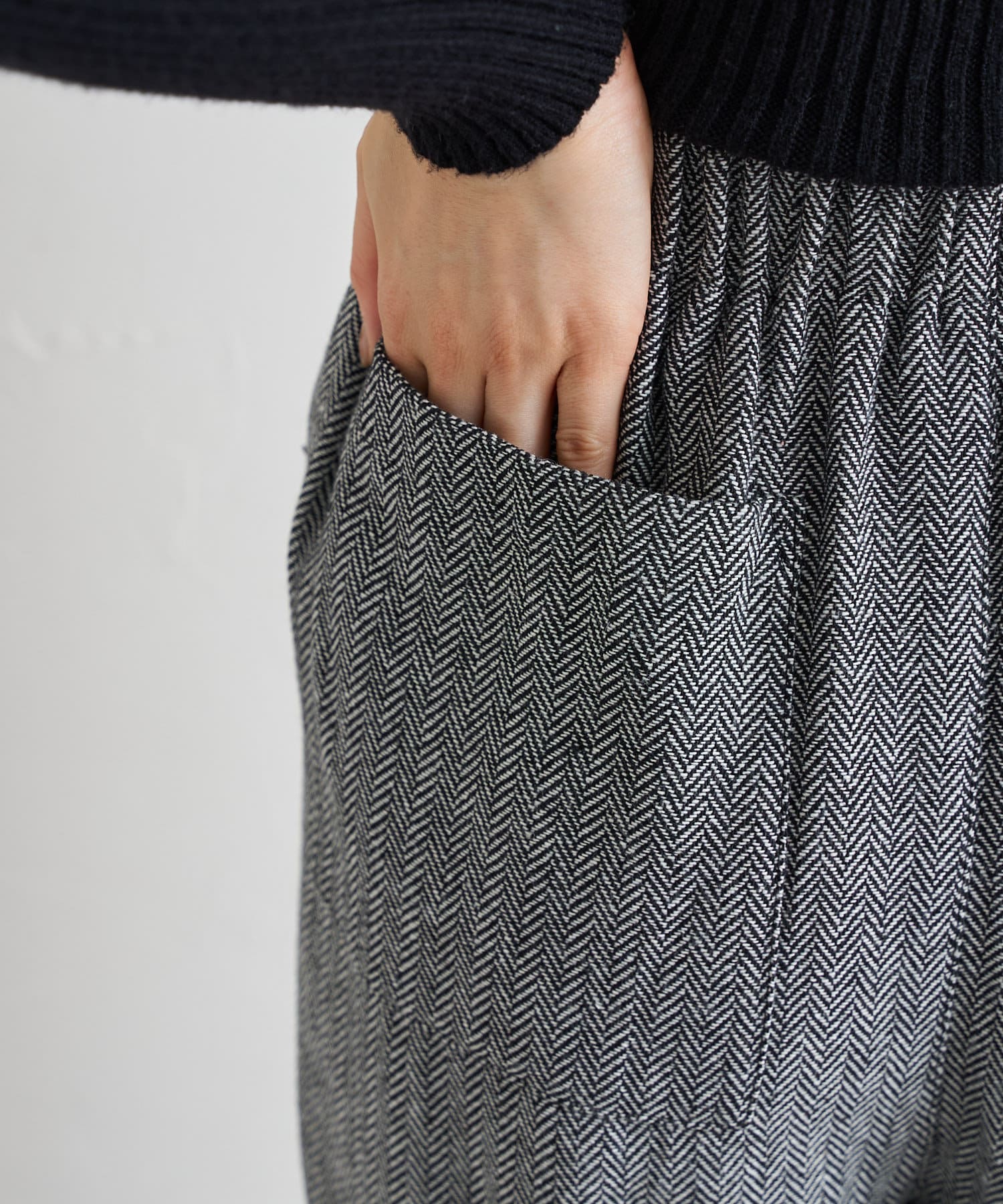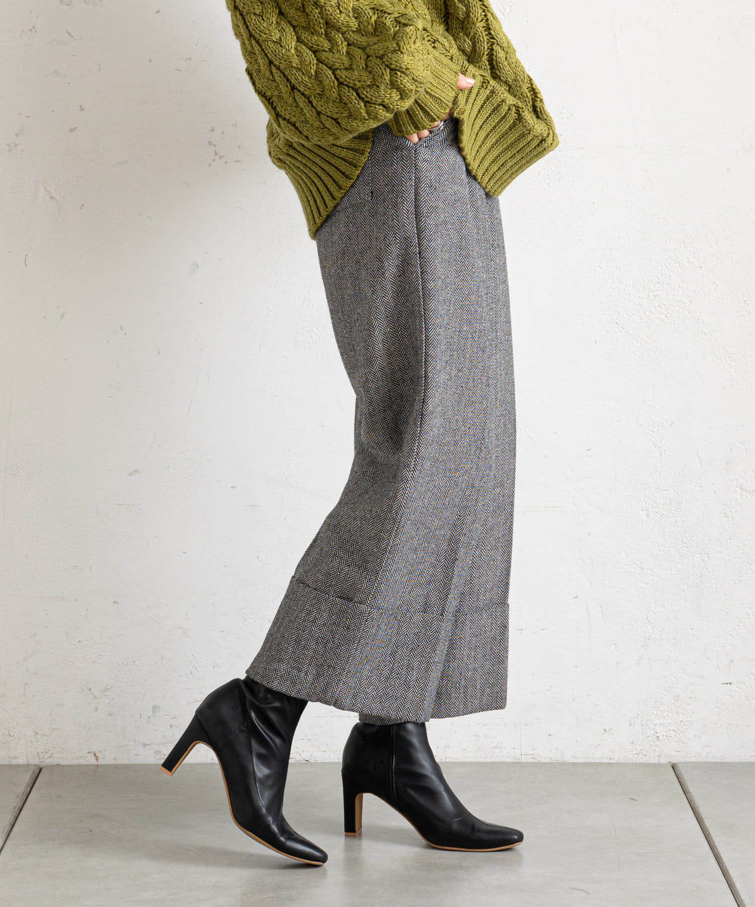 【バックウエストゴム仕様】ロールヘムツイードヘリンボーンパンツ