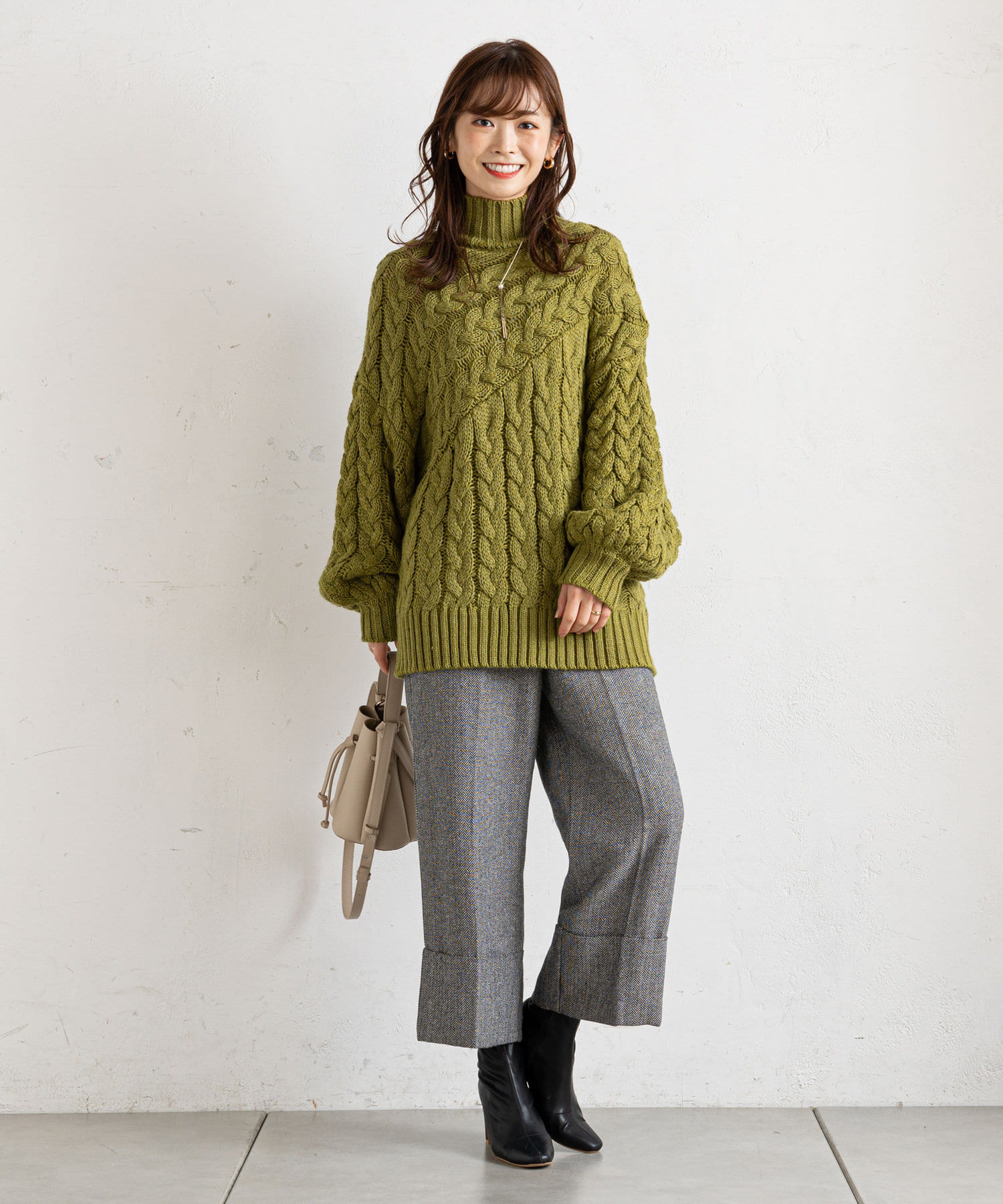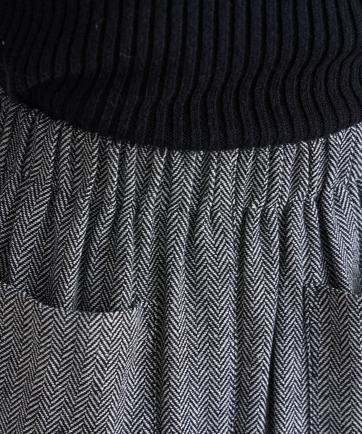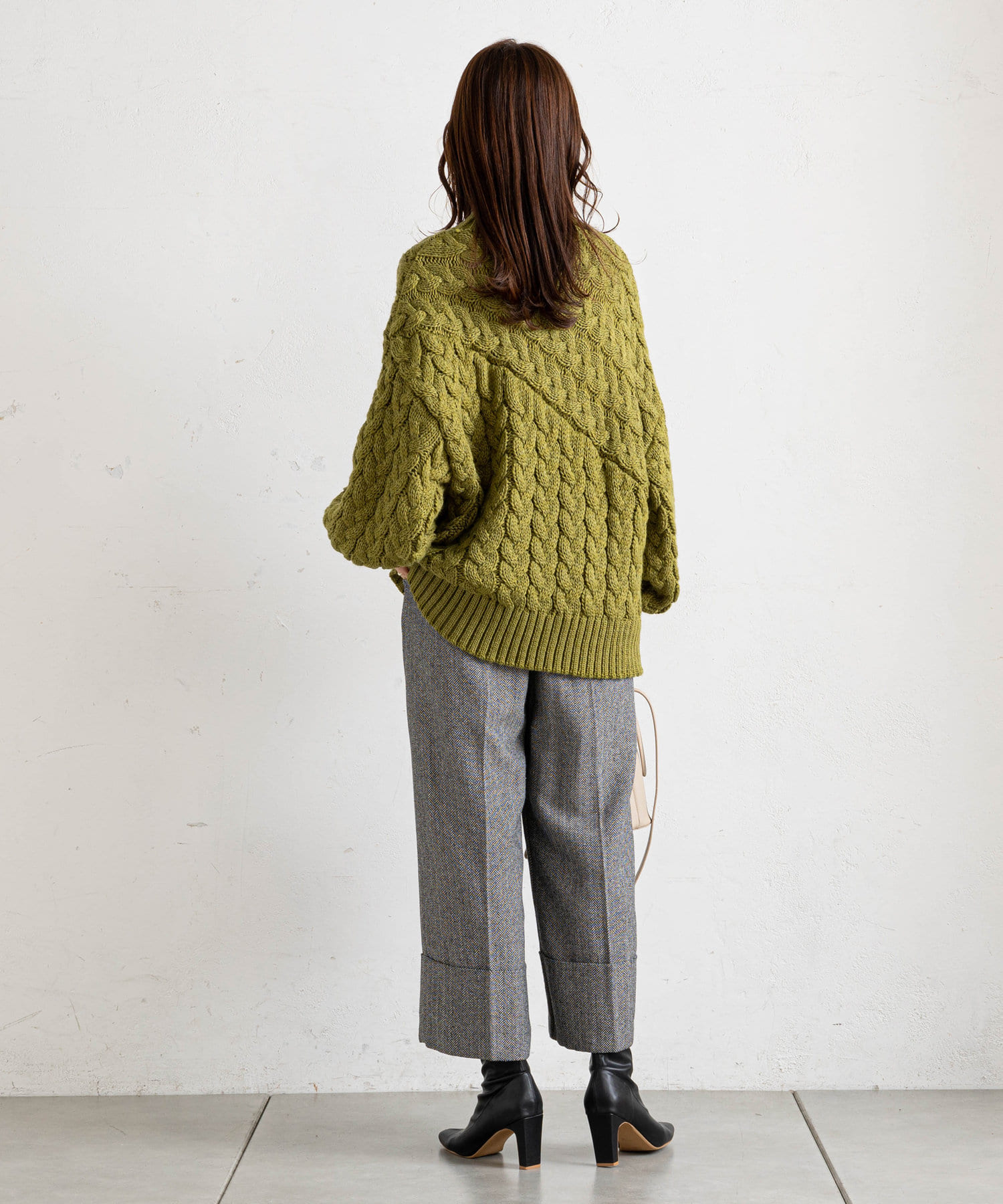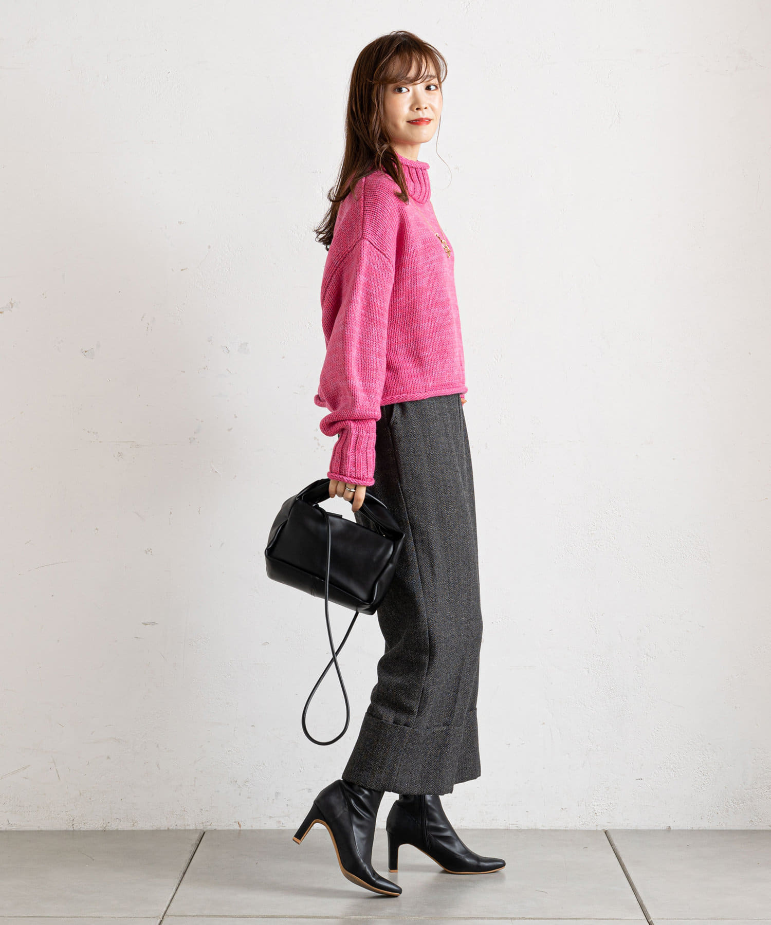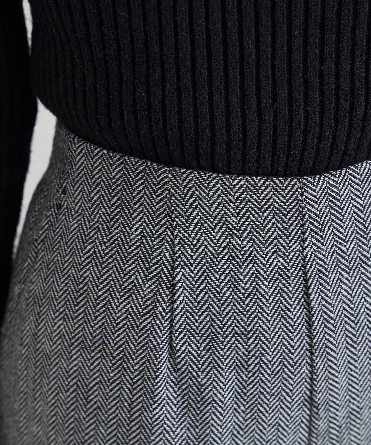 【バックウエストゴム仕様】ロールヘムツイードヘリンボーンパンツ