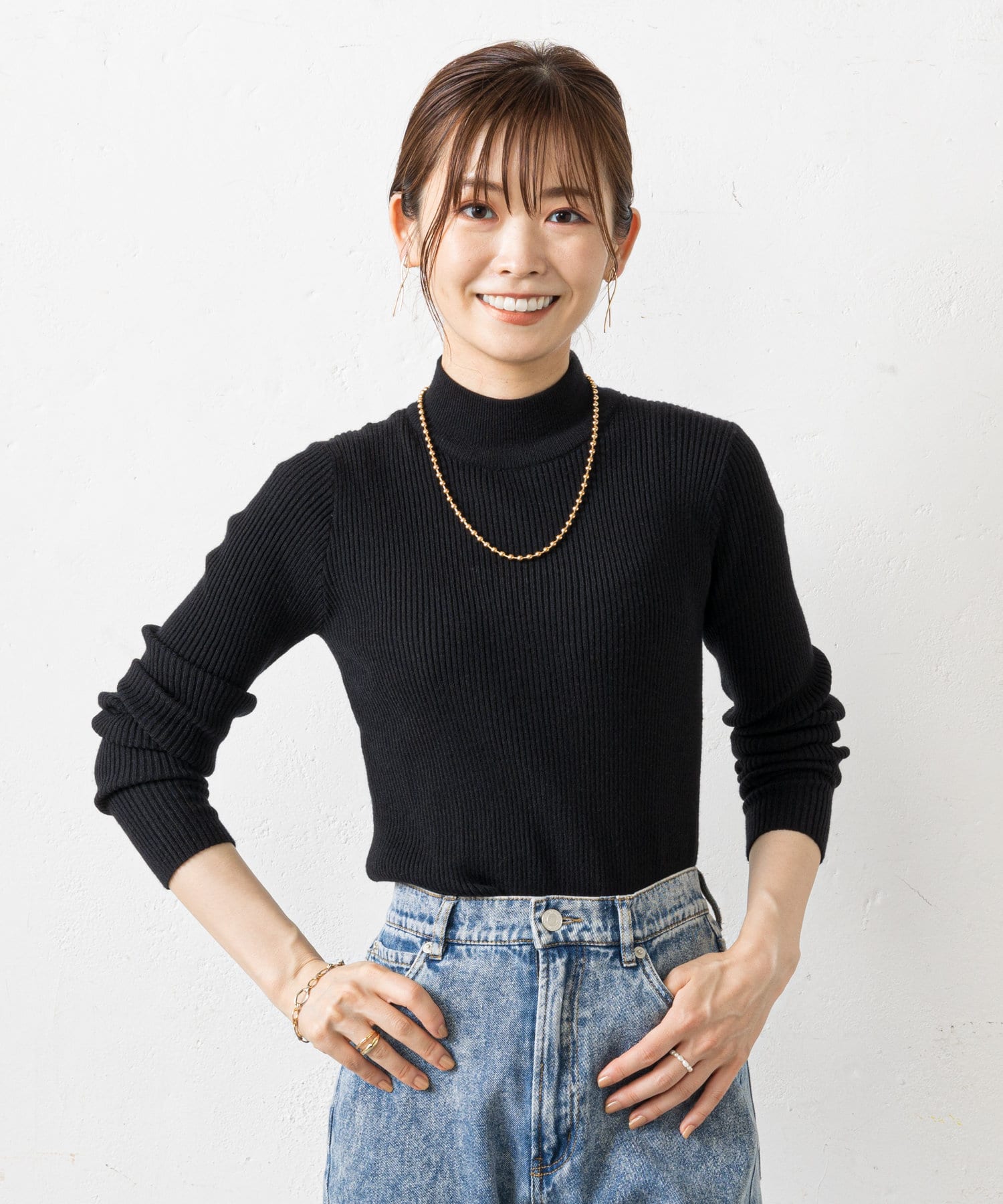 ●防寒もしながら首元のアクセントになるハイネックニットは