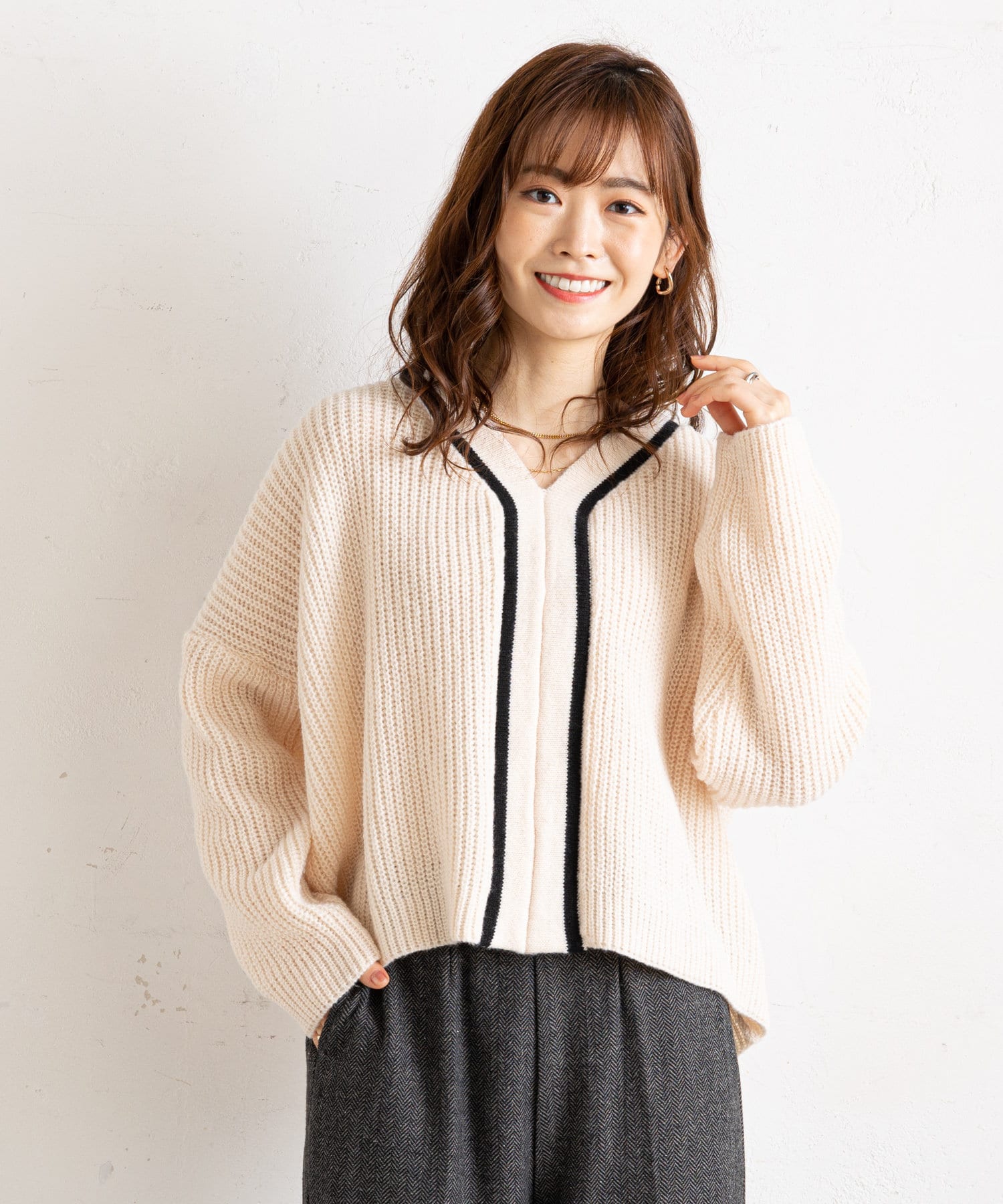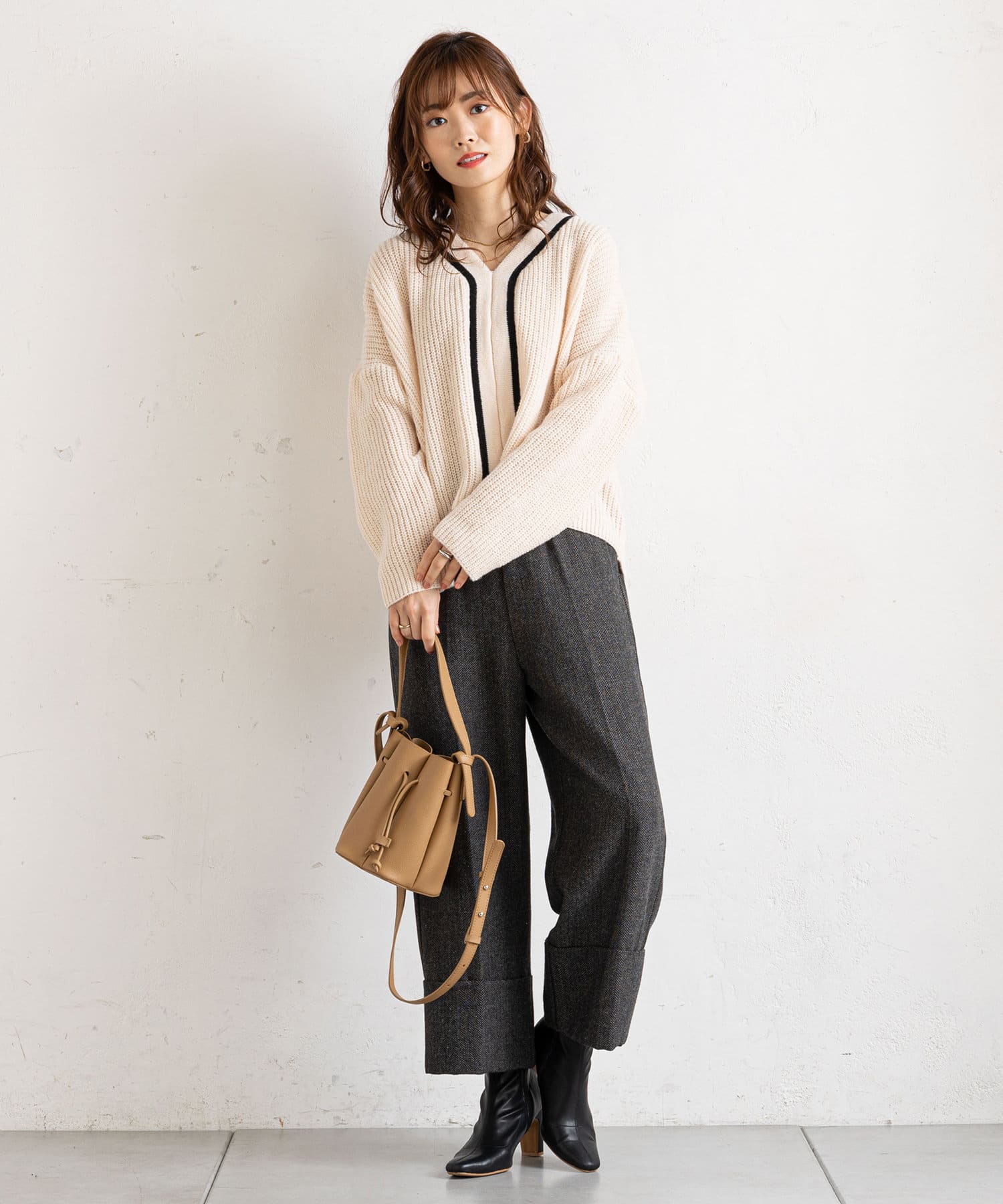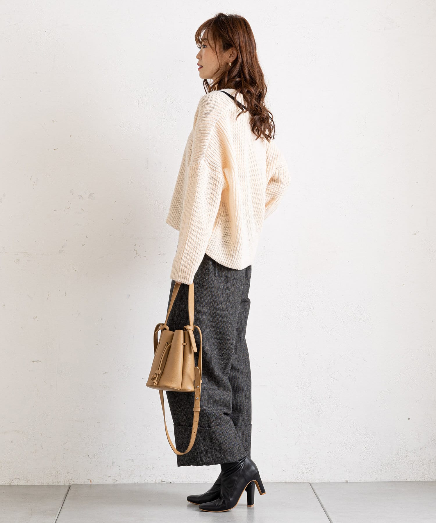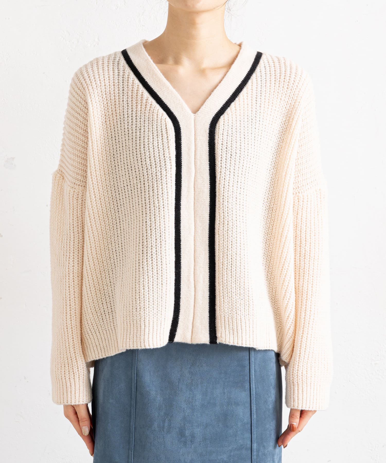 ●Vネックが首元をスッキリ見せ、抜け感をプラス