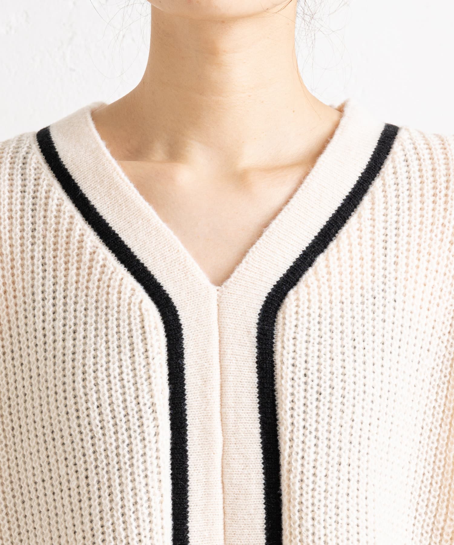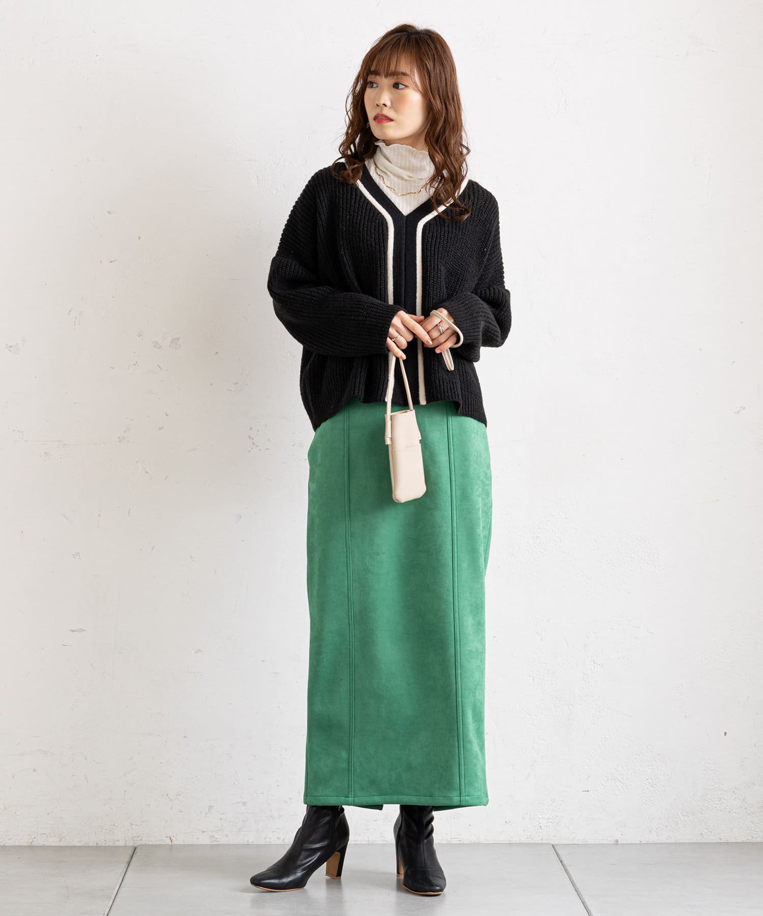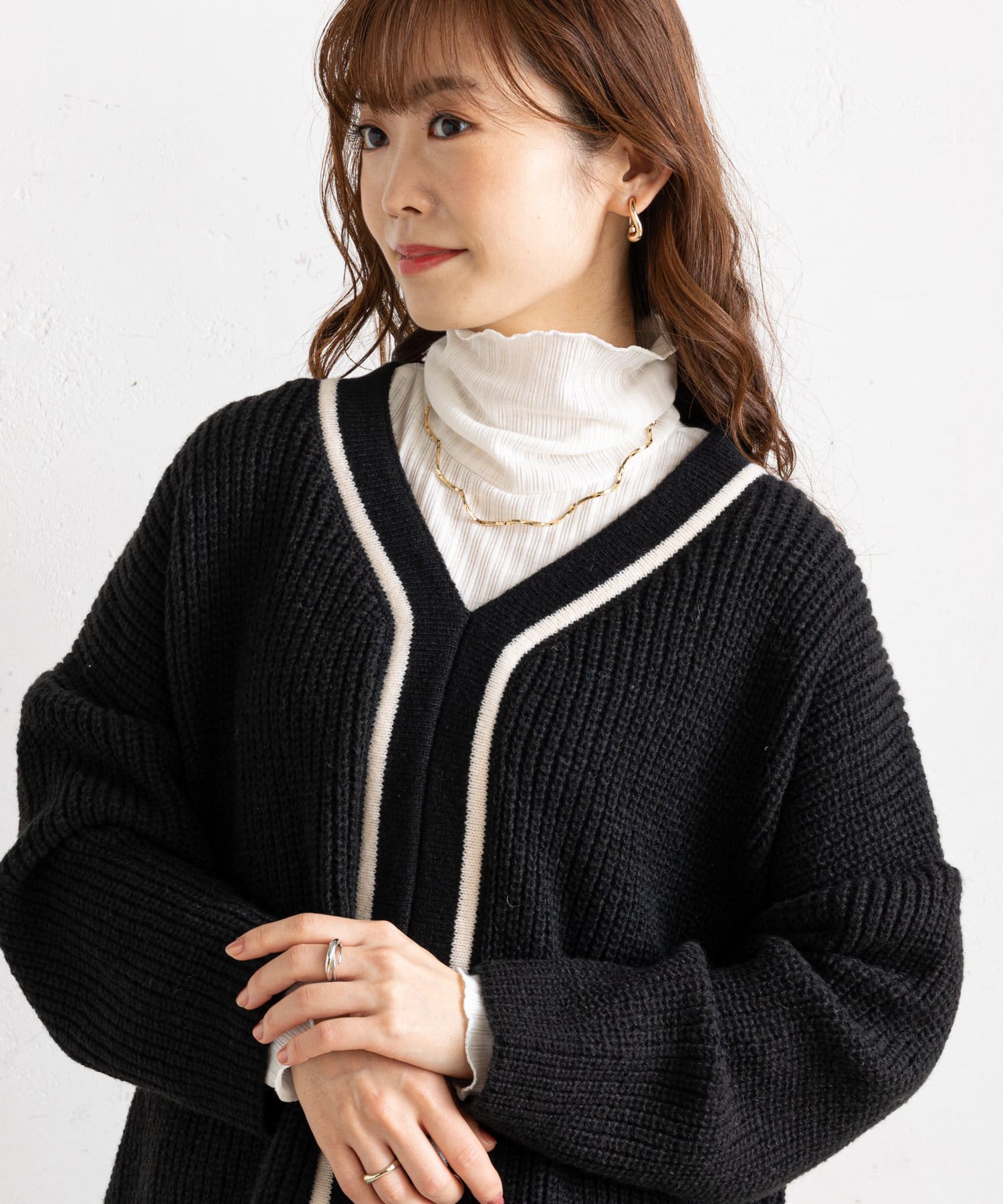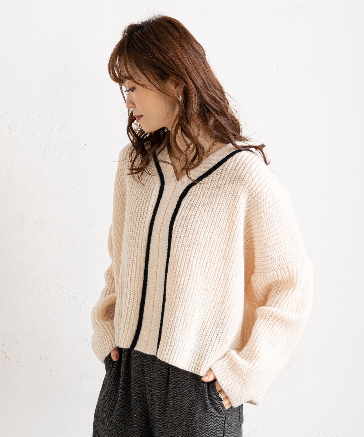 ●Vネックが首元をスッキリ見せ、抜け感をプラス