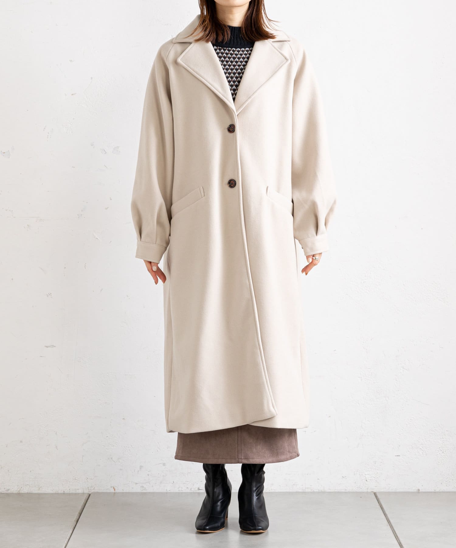 【M/Lサイズ展開】ボリューム袖ラグランコート