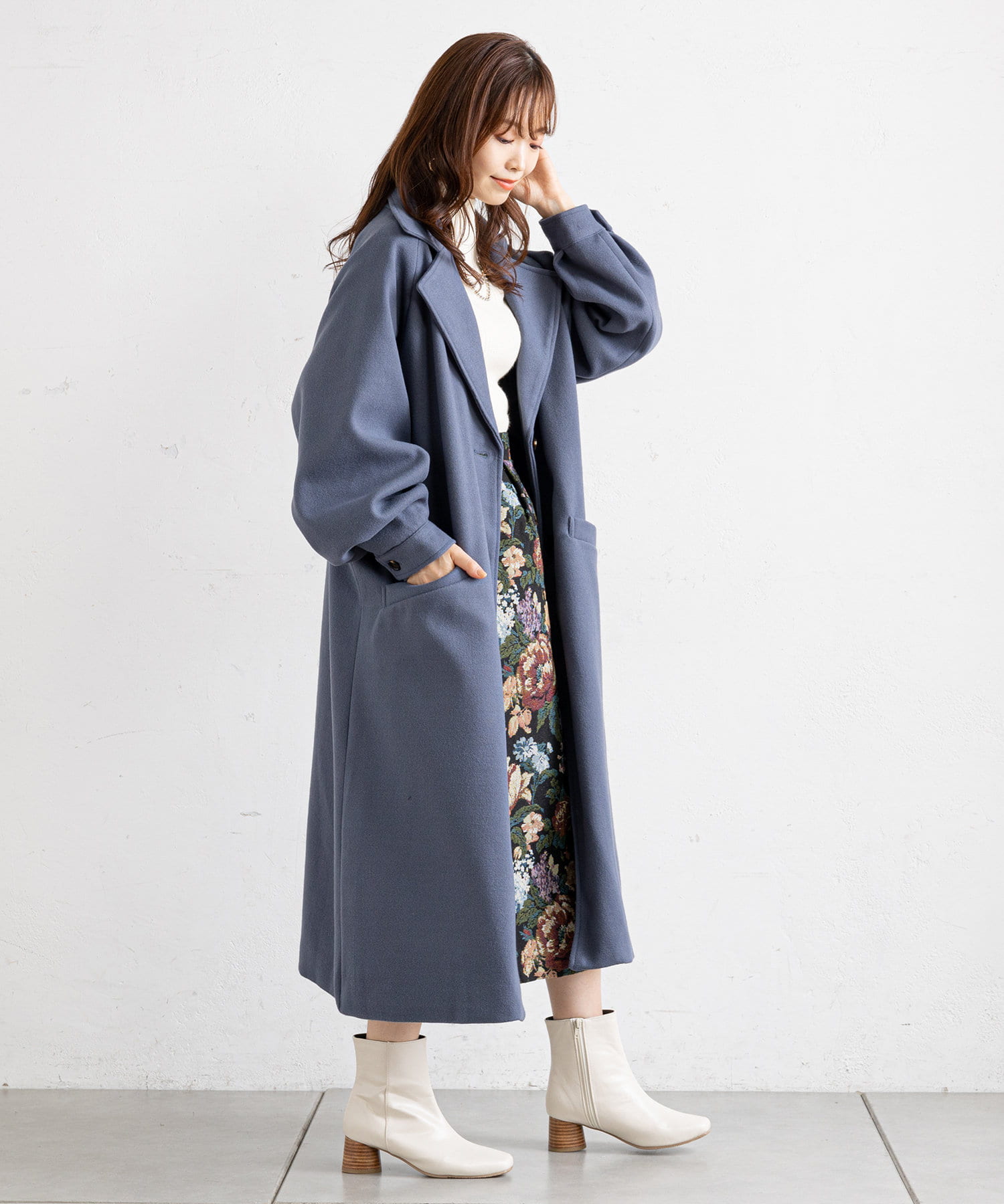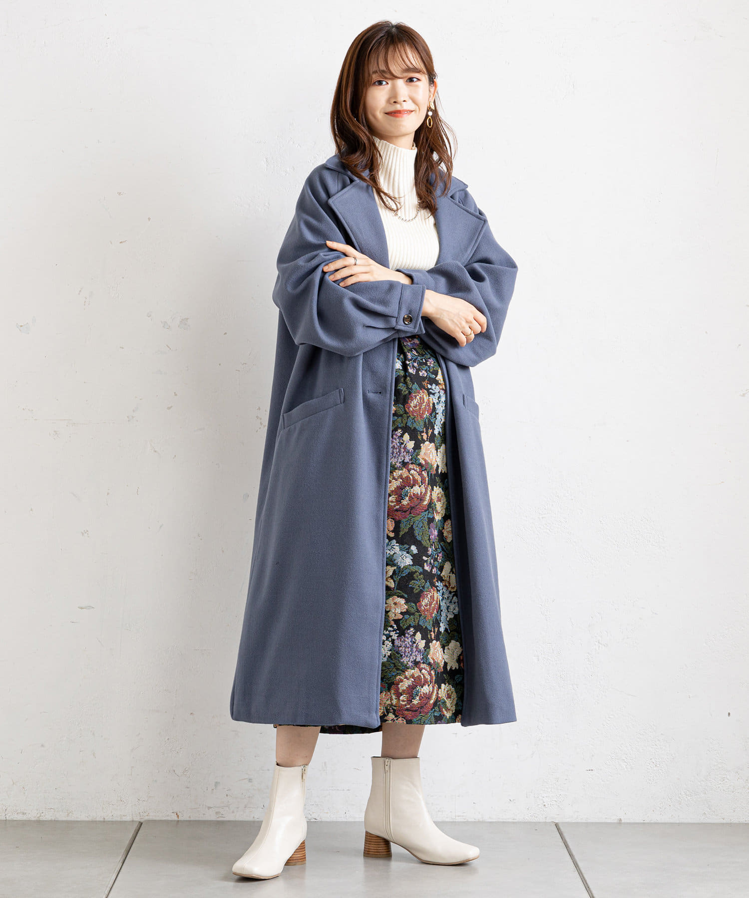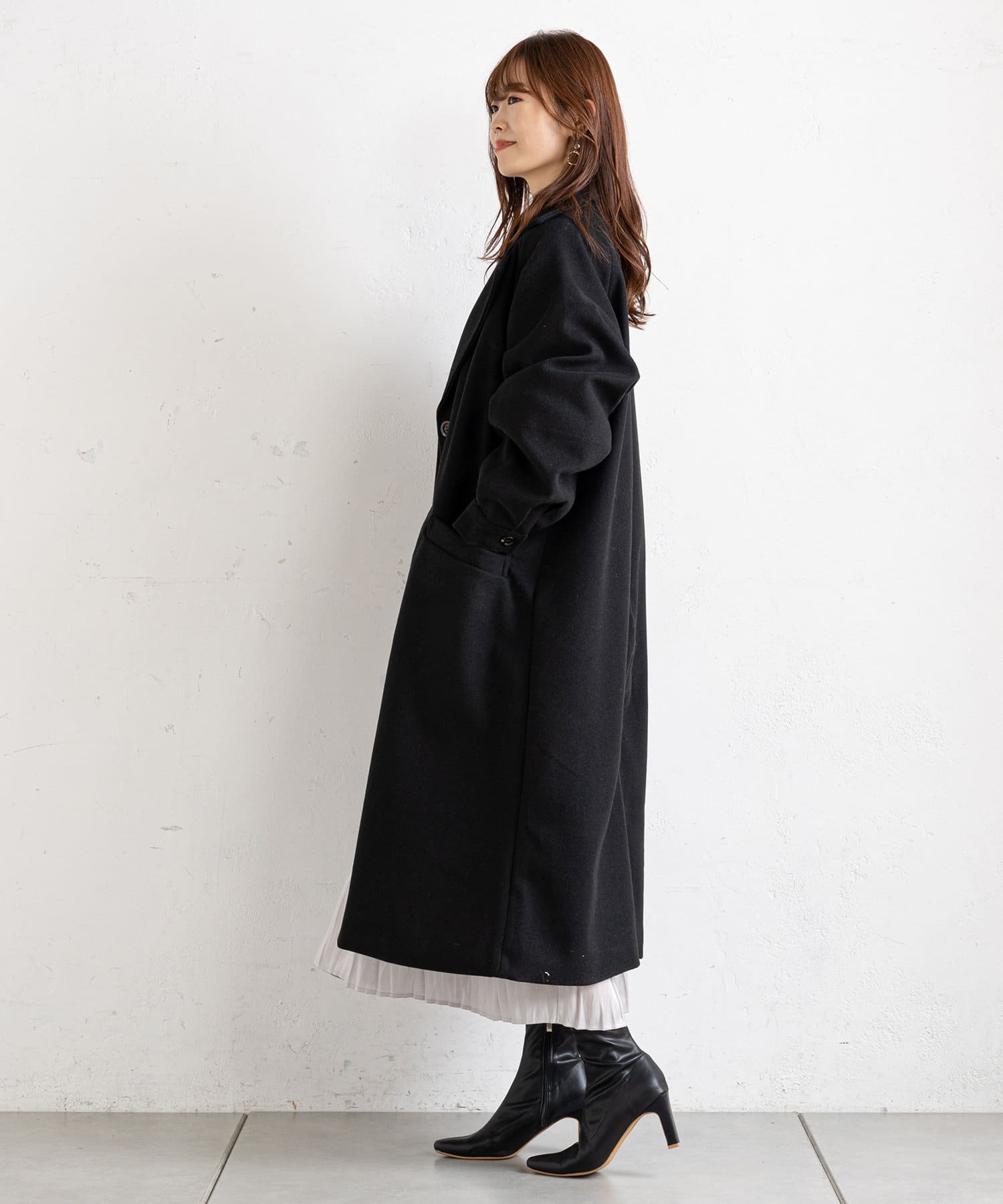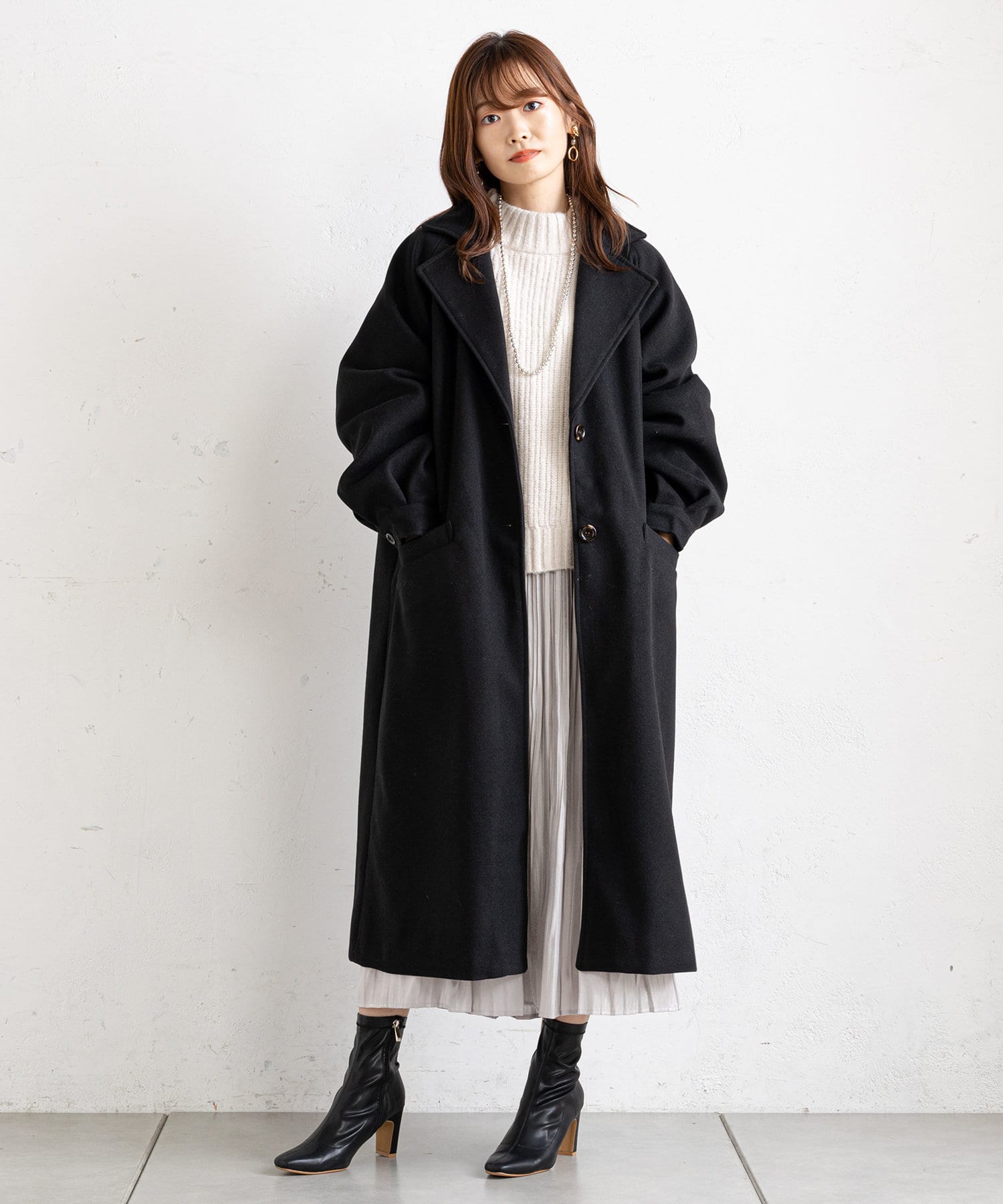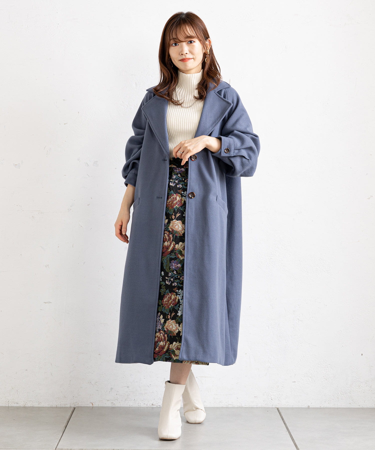 ふんわりスリーブが女性らしいロングコート