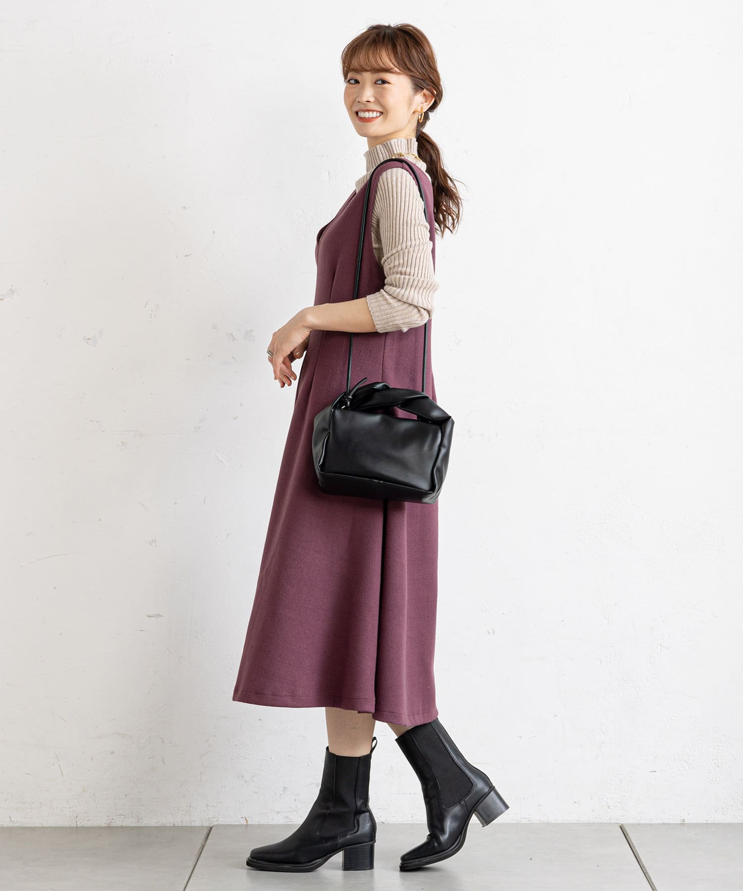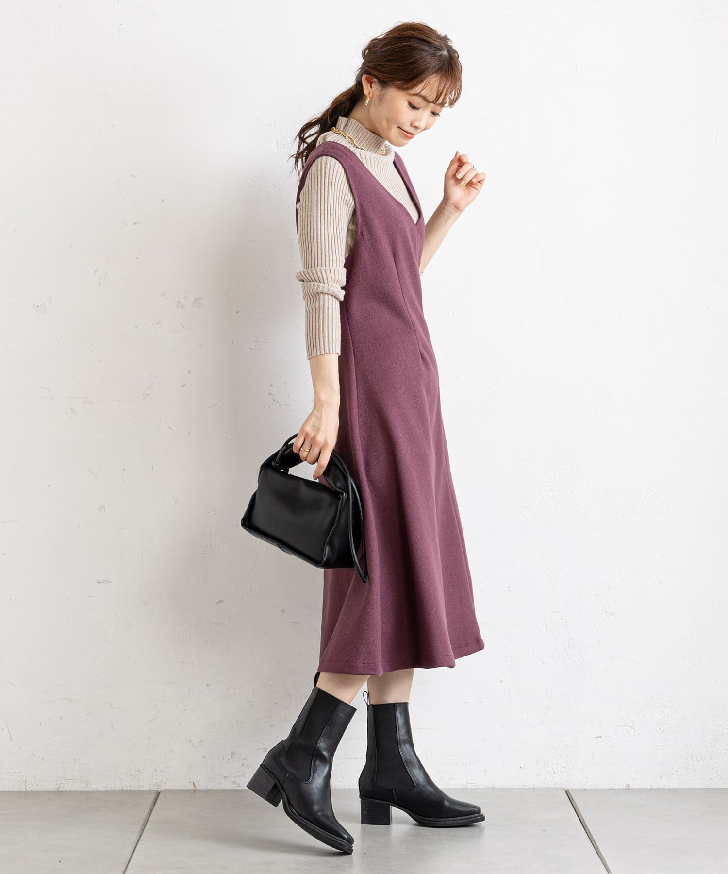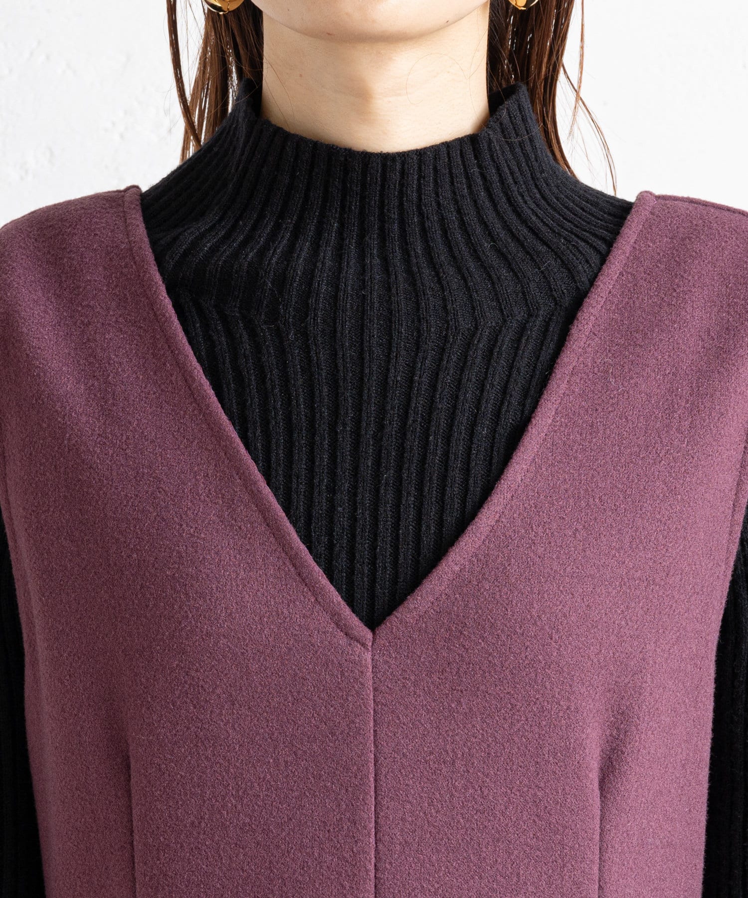 ・ハイネックニットをインナーに合わせて