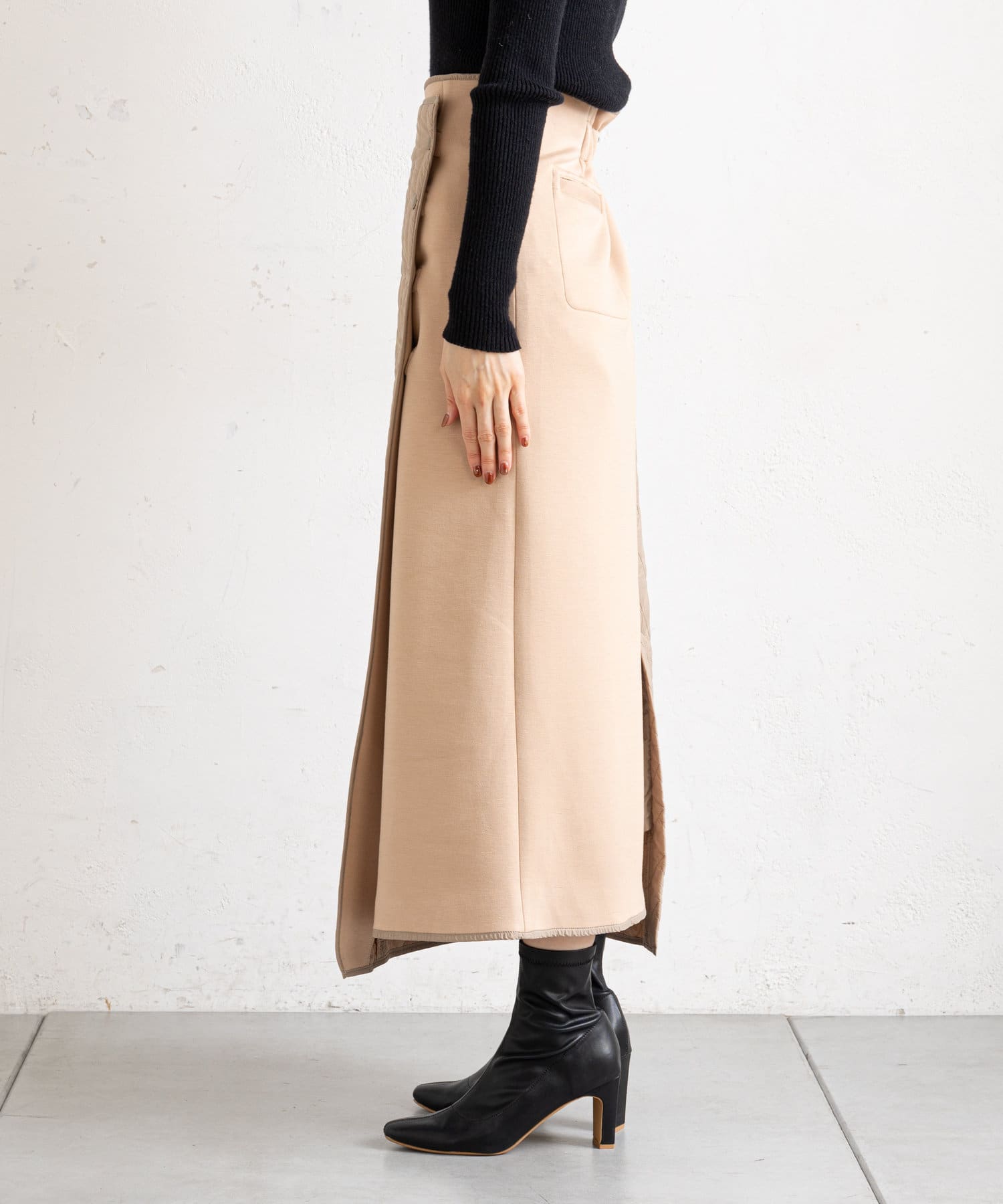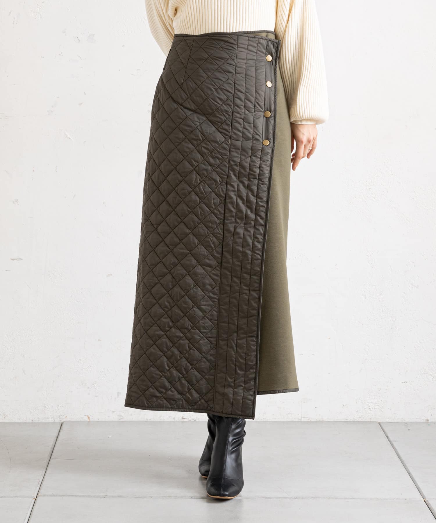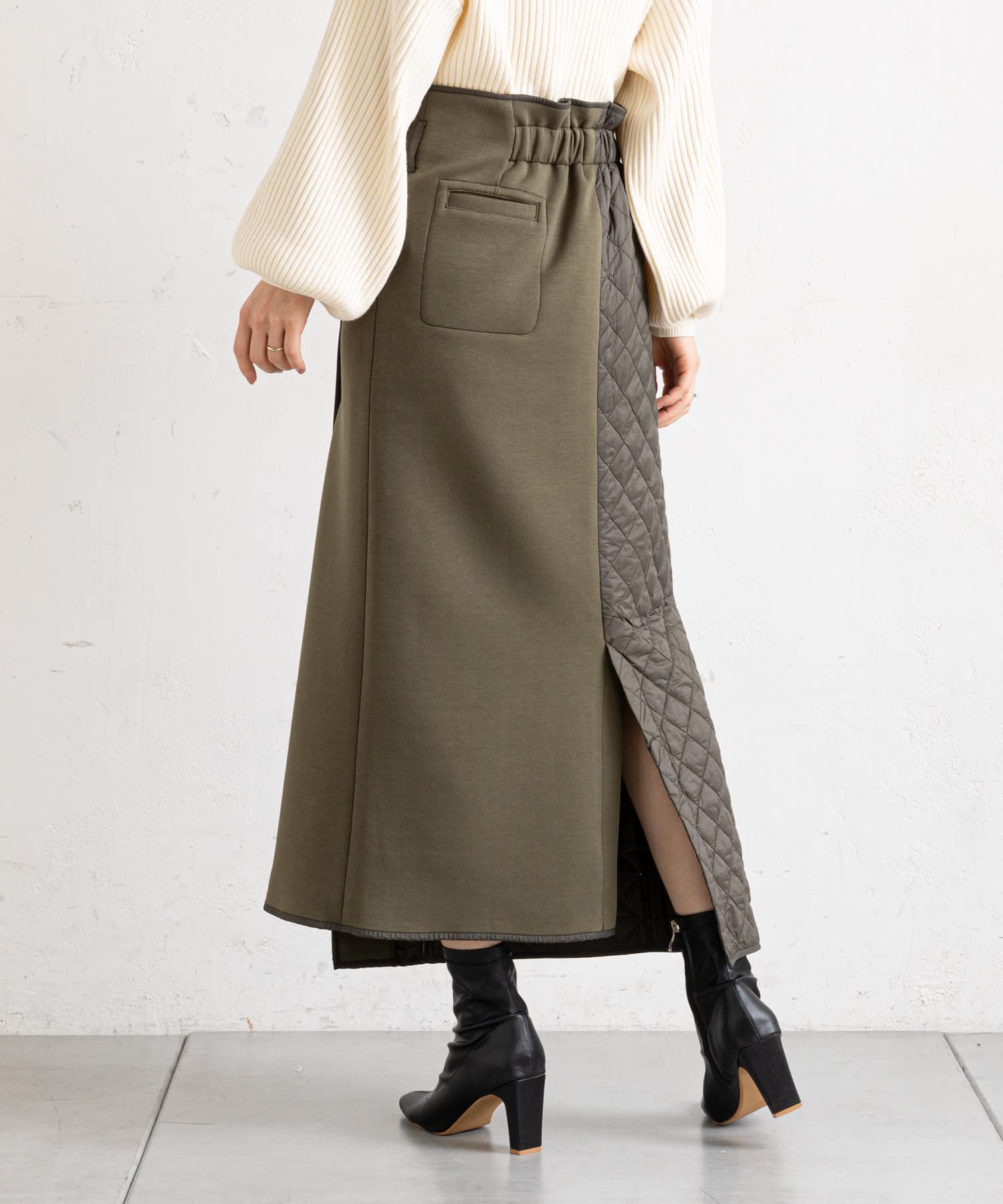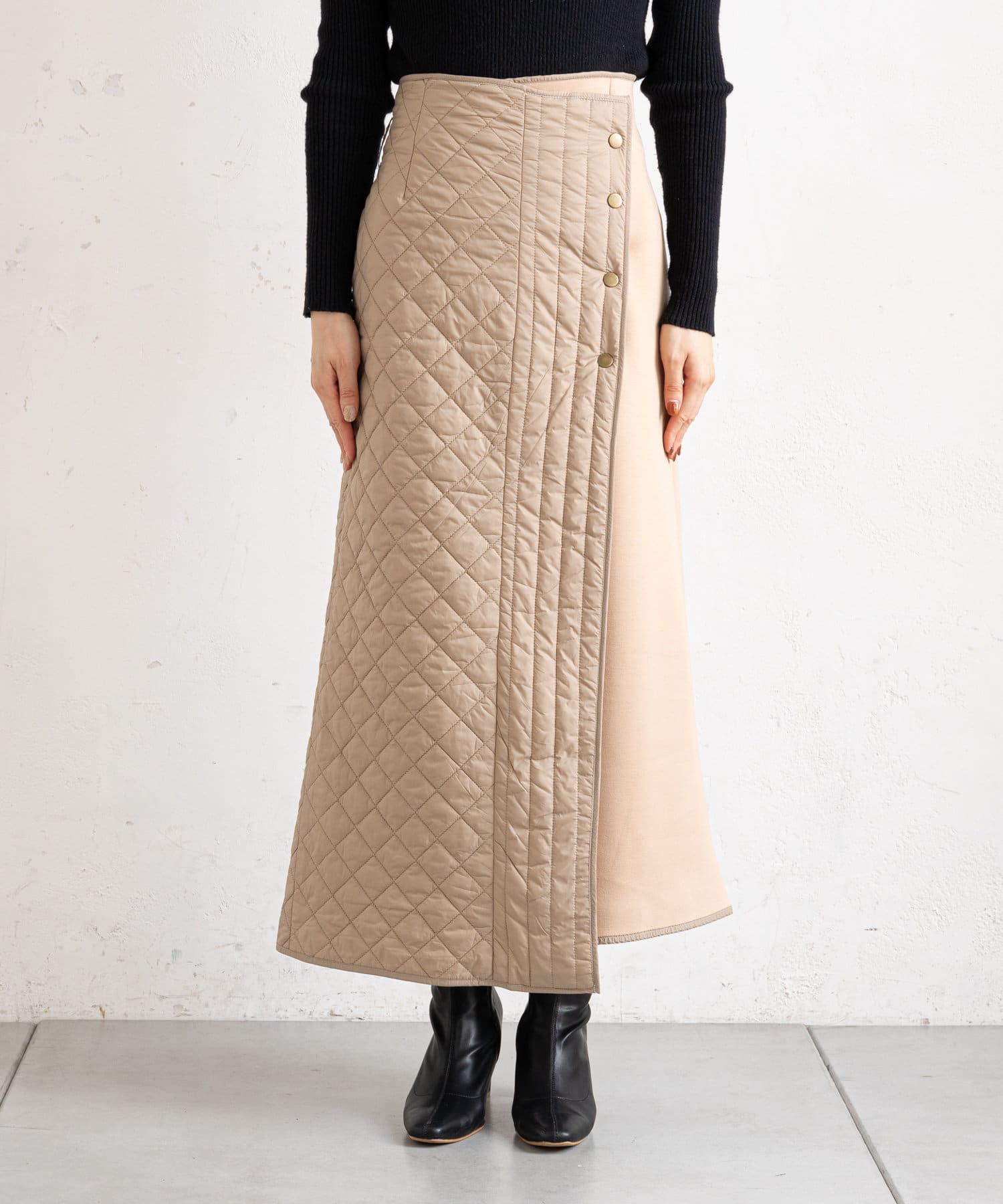 • prose verse(プロズヴェール) 【バックウエストゴム仕様】キルティング切り替えラップスカート