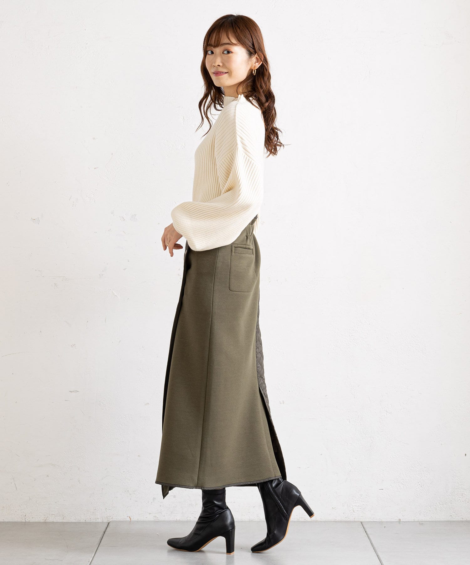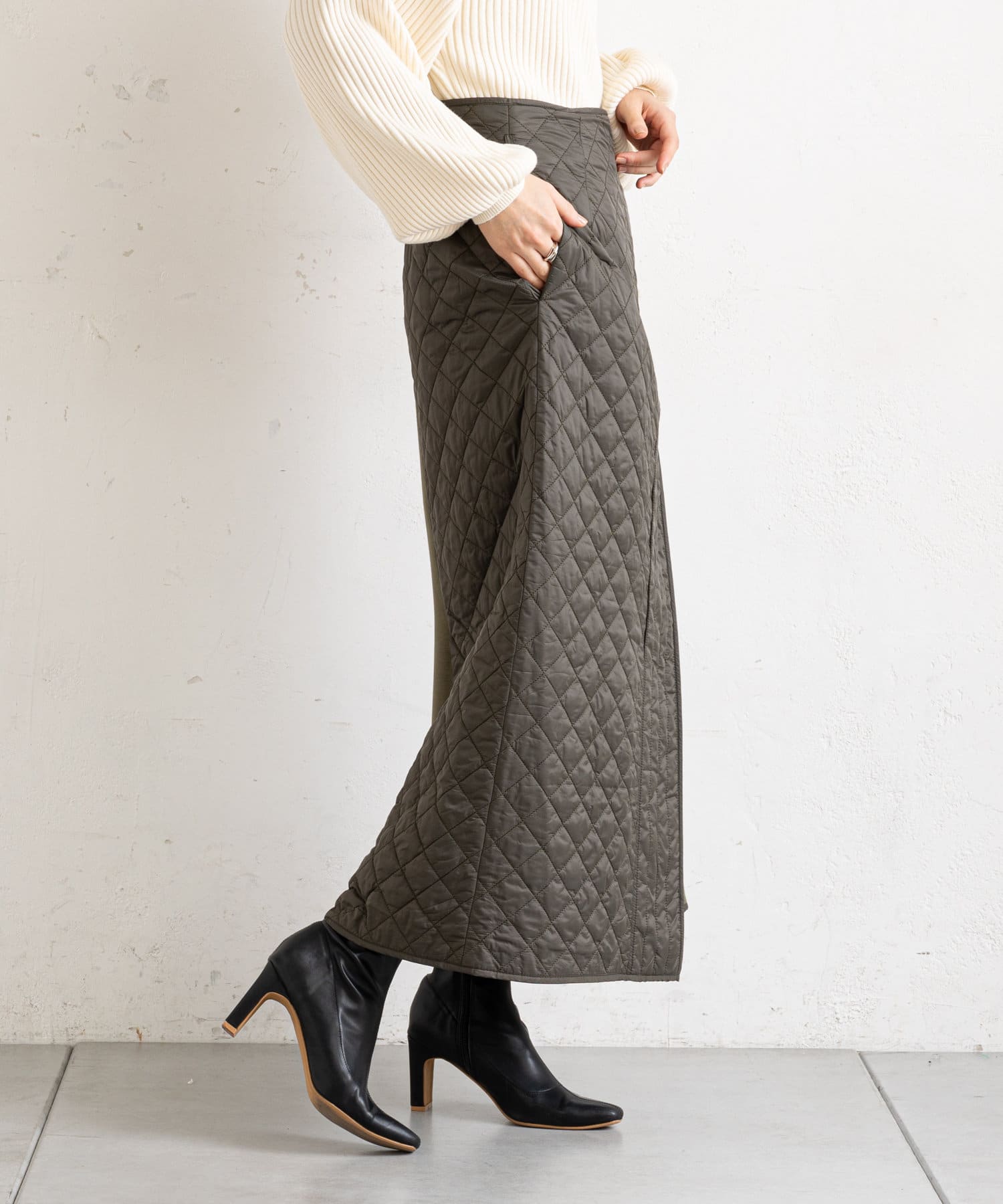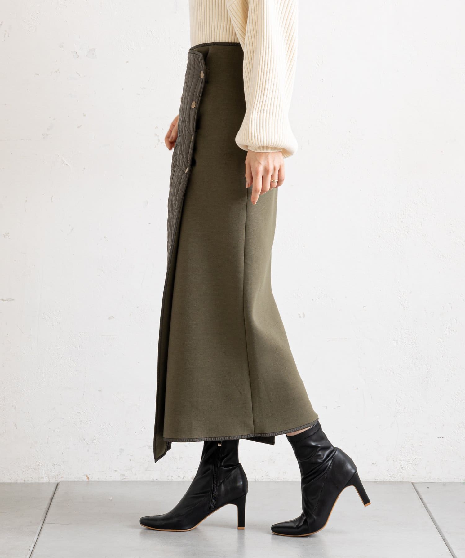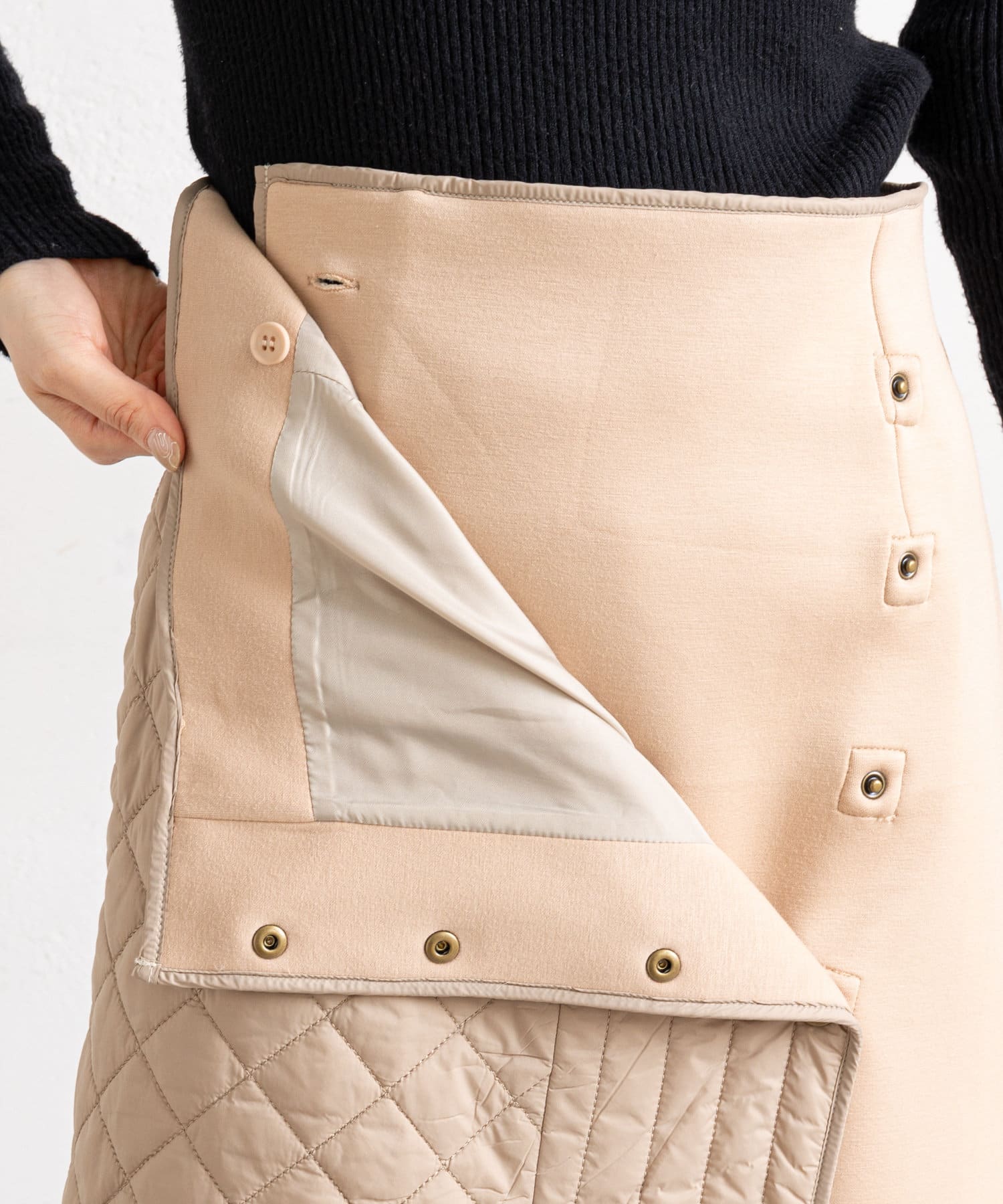 • prose verse(プロズヴェール) 【バックウエストゴム仕様】キルティング切り替えラップスカート