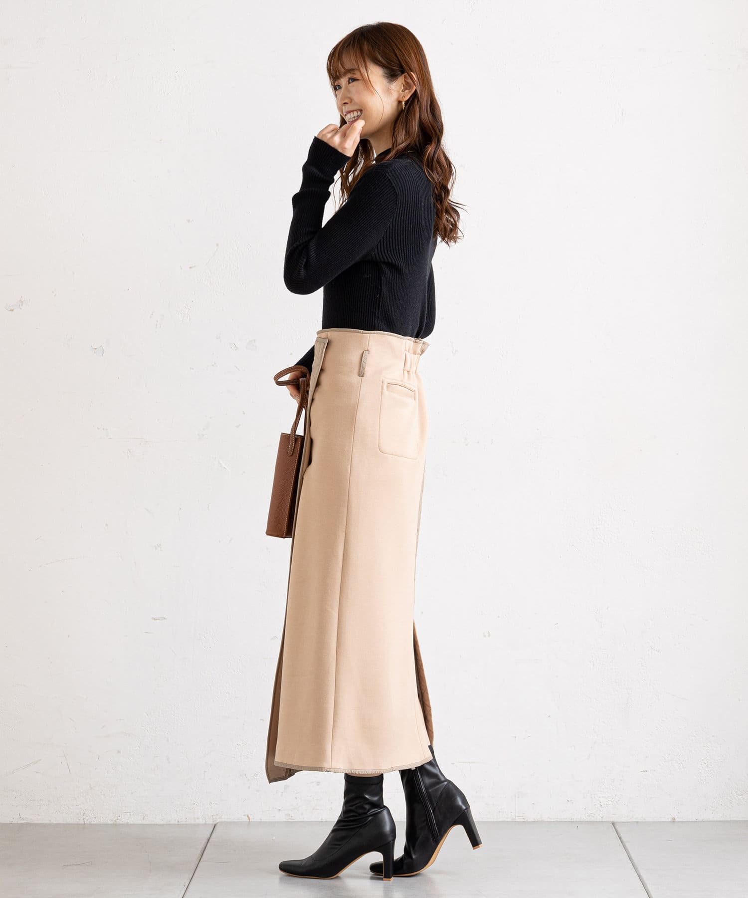 ●バックスリットが足元に抜け感を加え、足さばきもしやすい仕様
