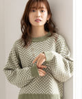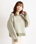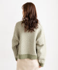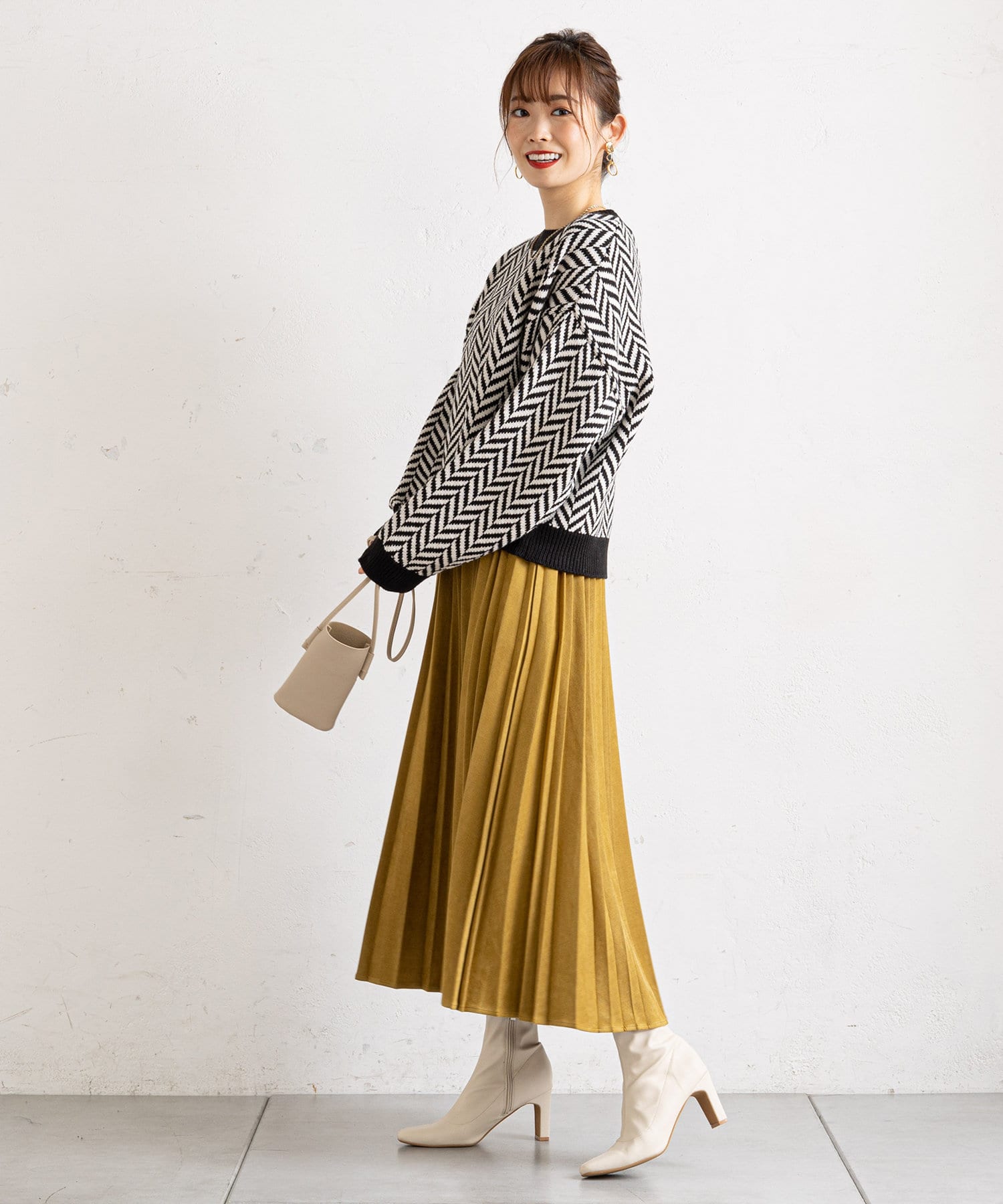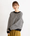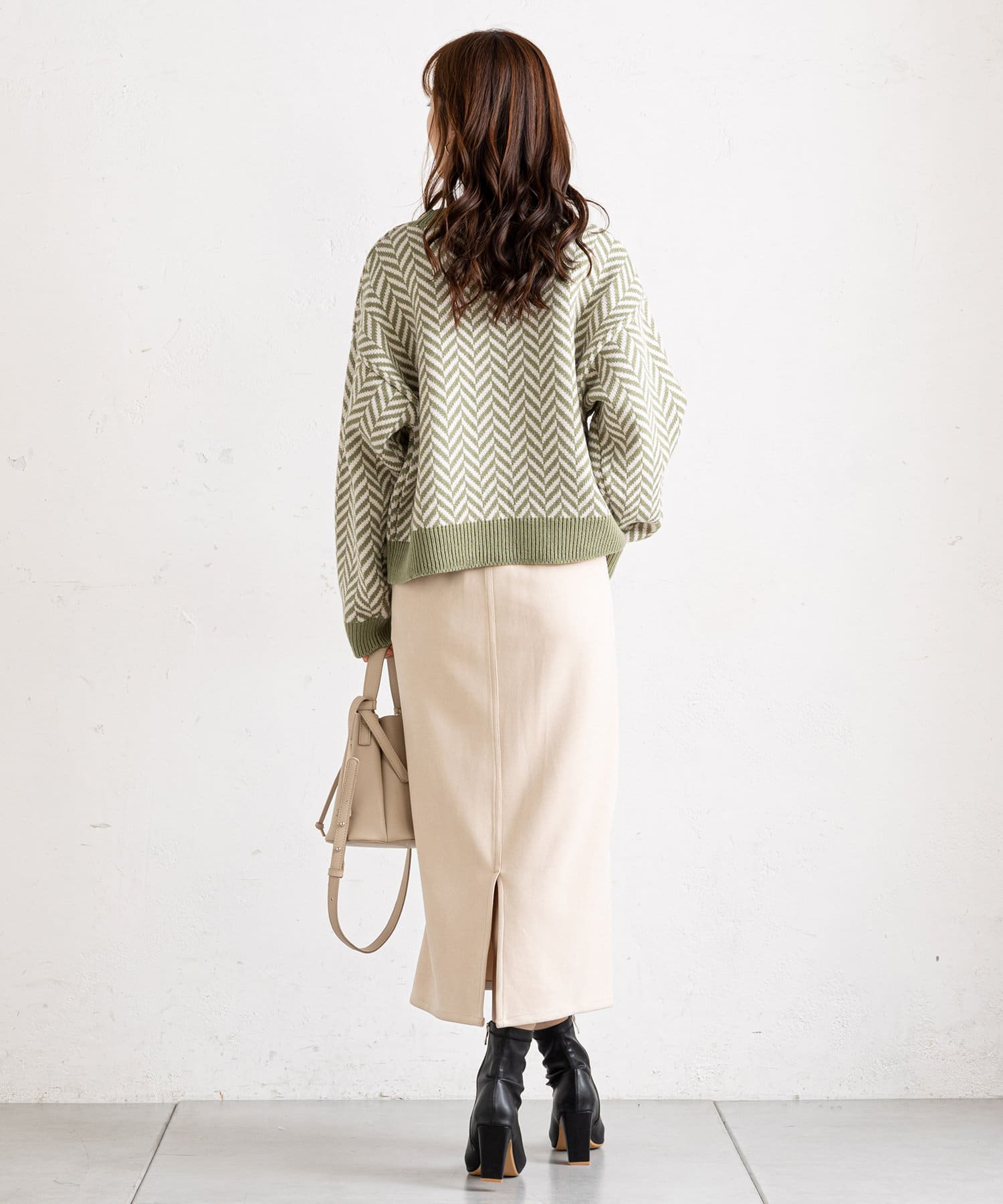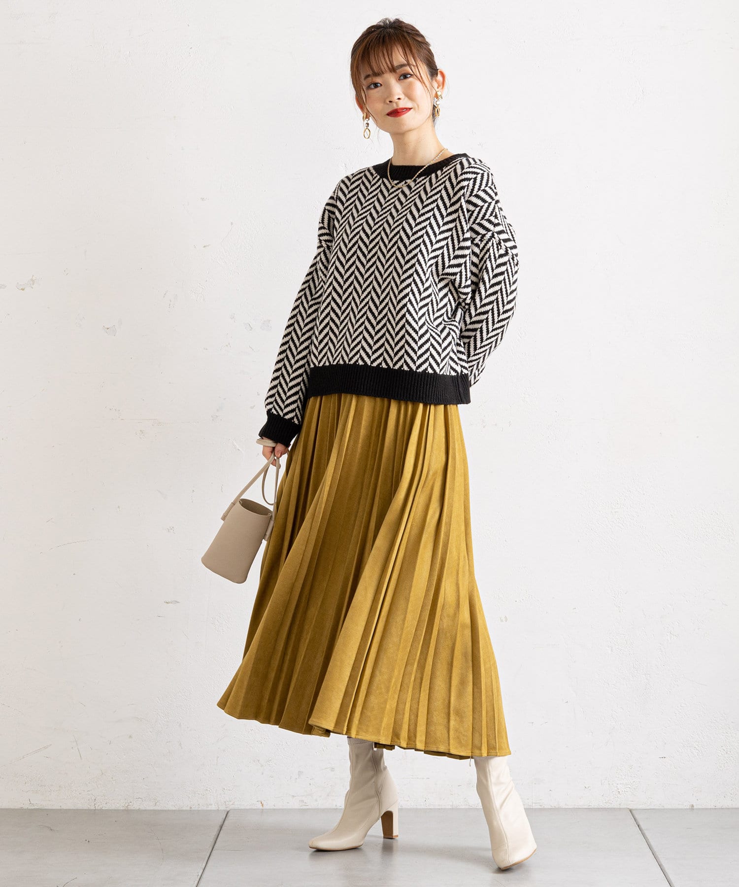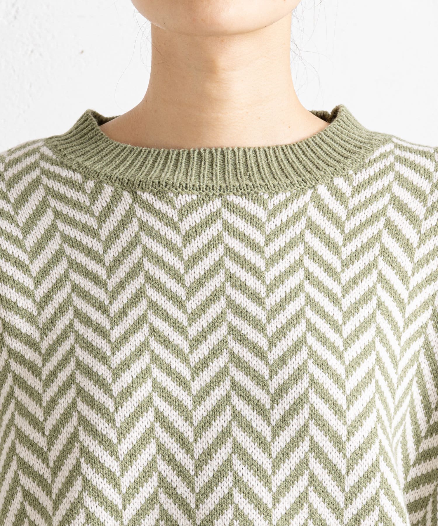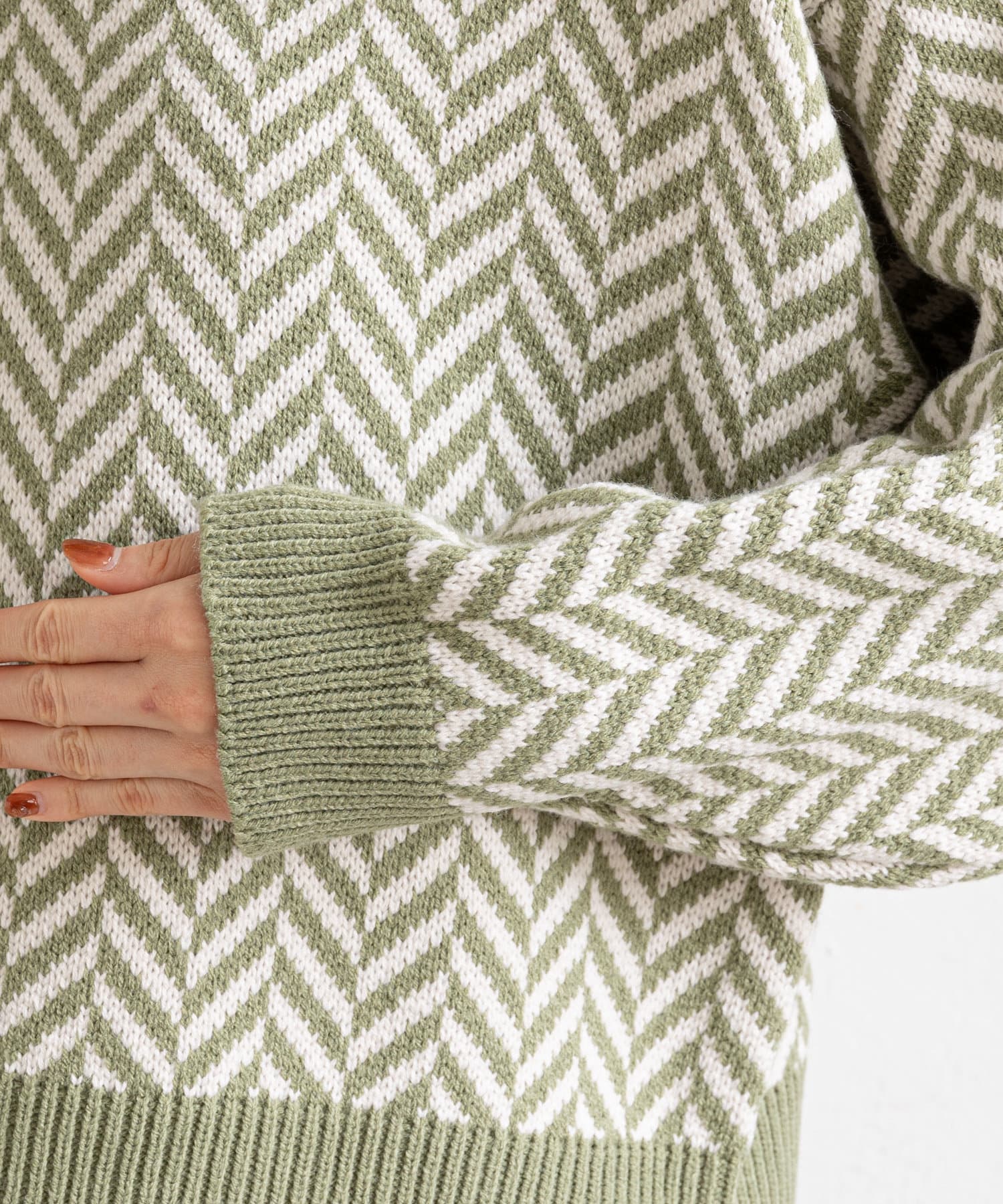 ●ヘリンボーンの総柄デザインがパッと目を引く大人ニット