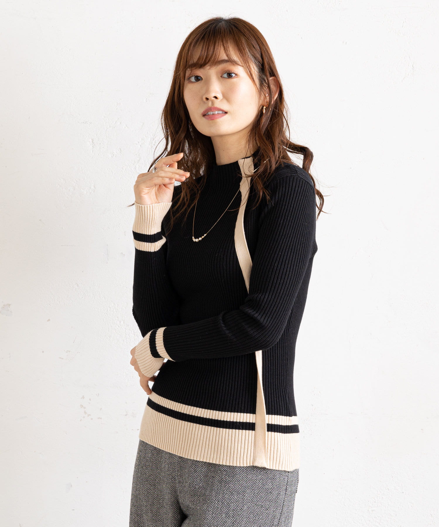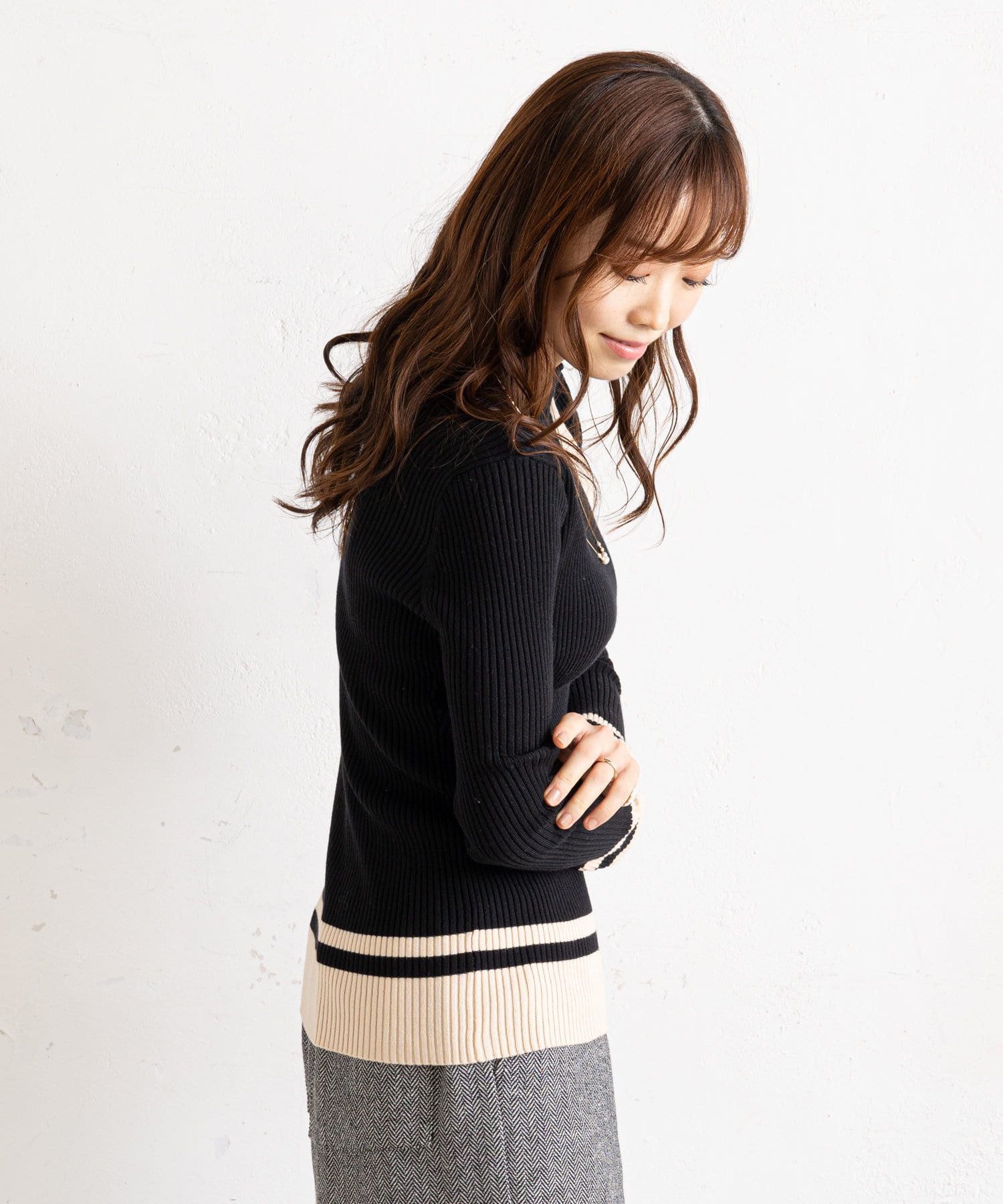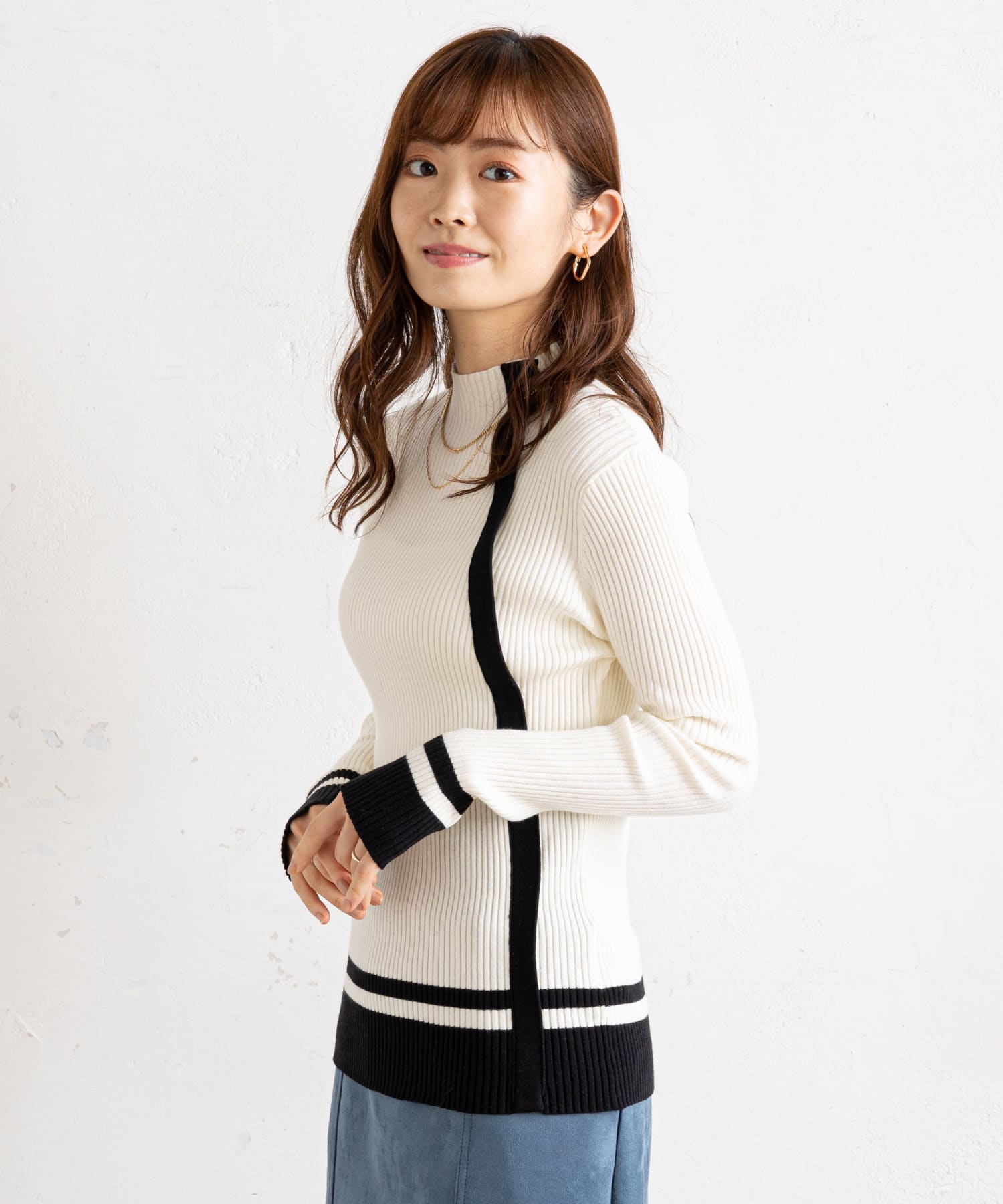 prose verse(プロズヴェール) ラインパネルリブハイネックニット