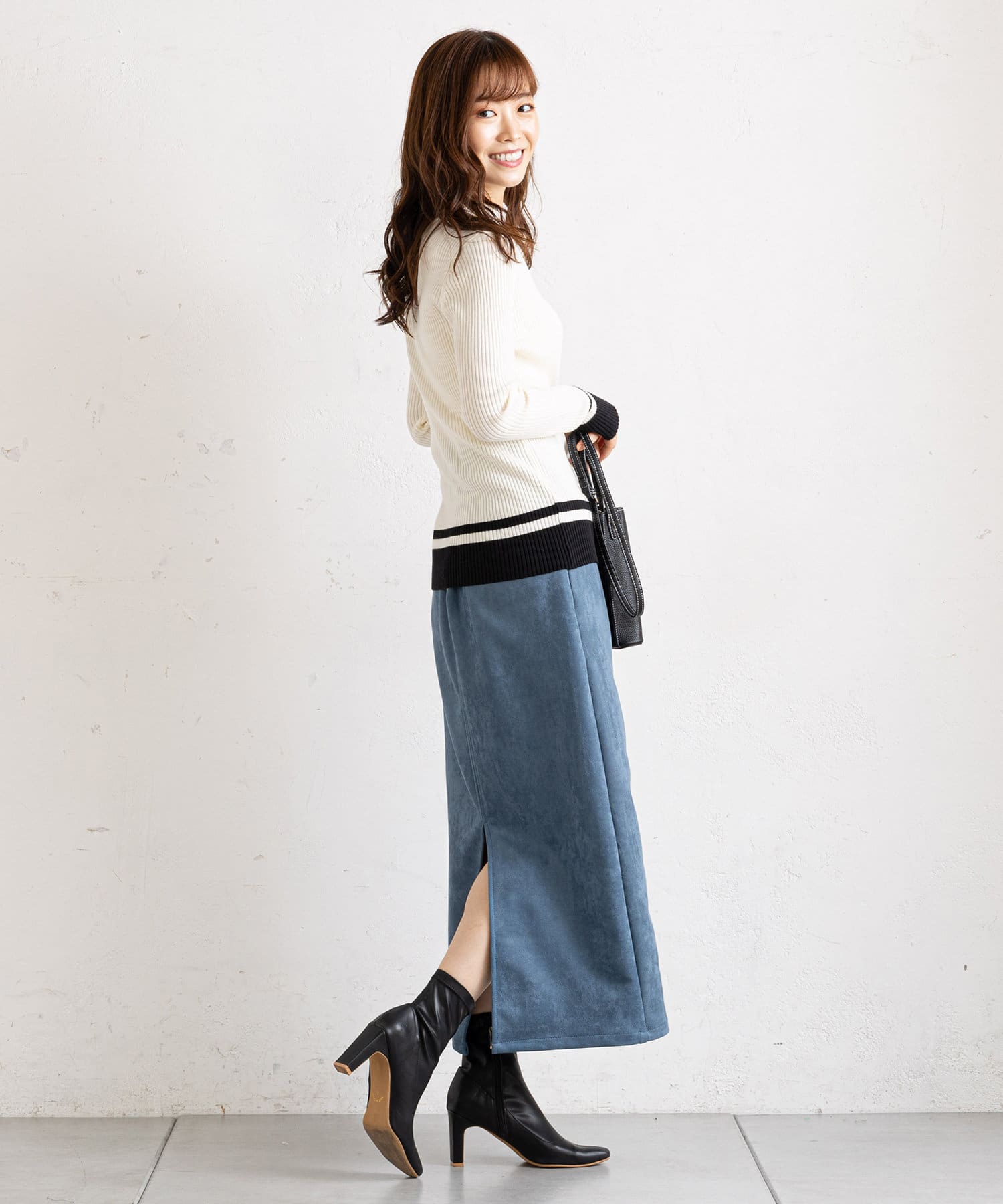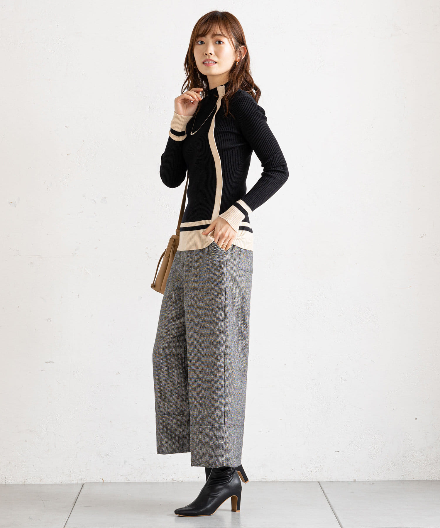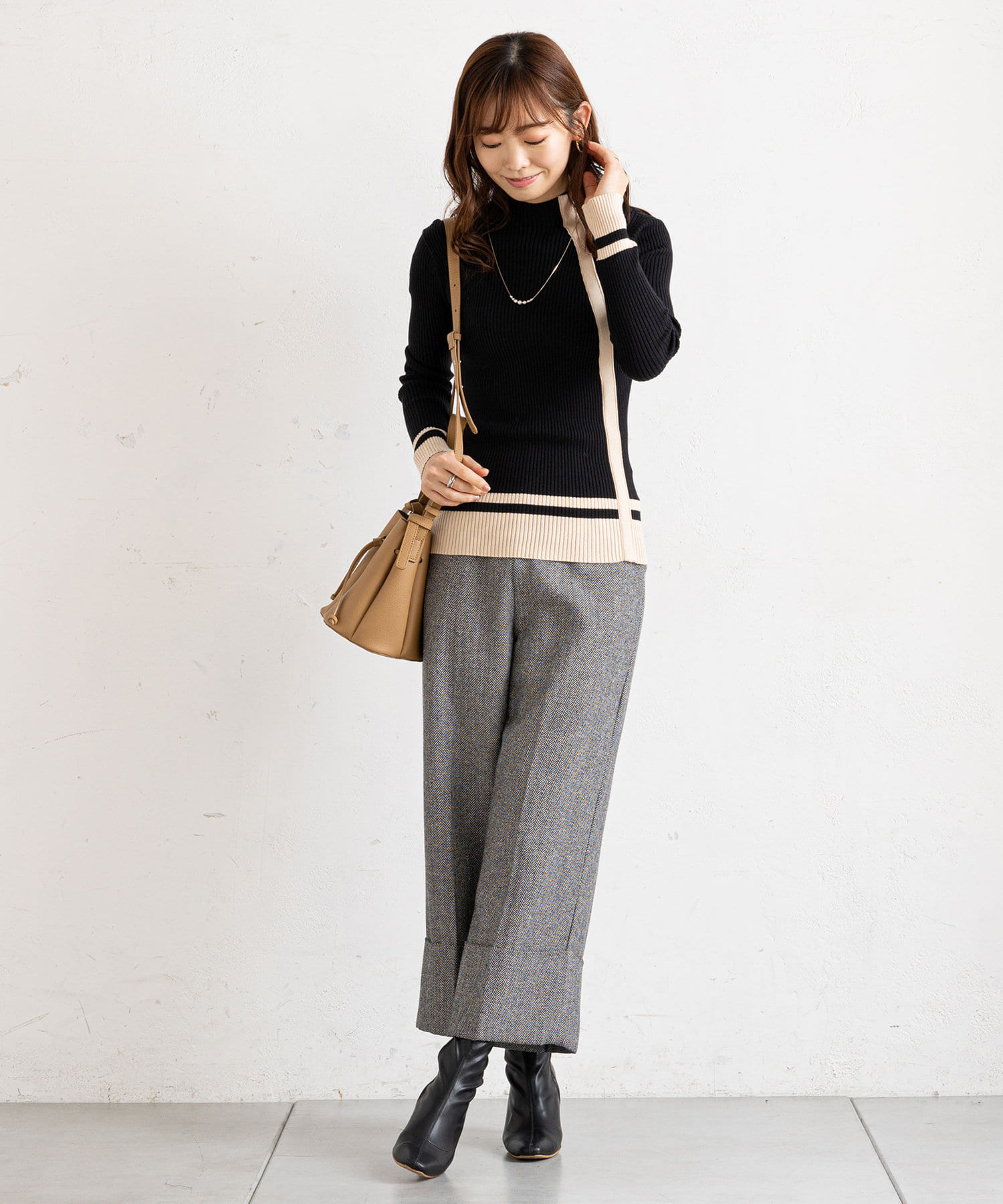 ●ハイになったネックラインが温かく、シーズンライクな印象に