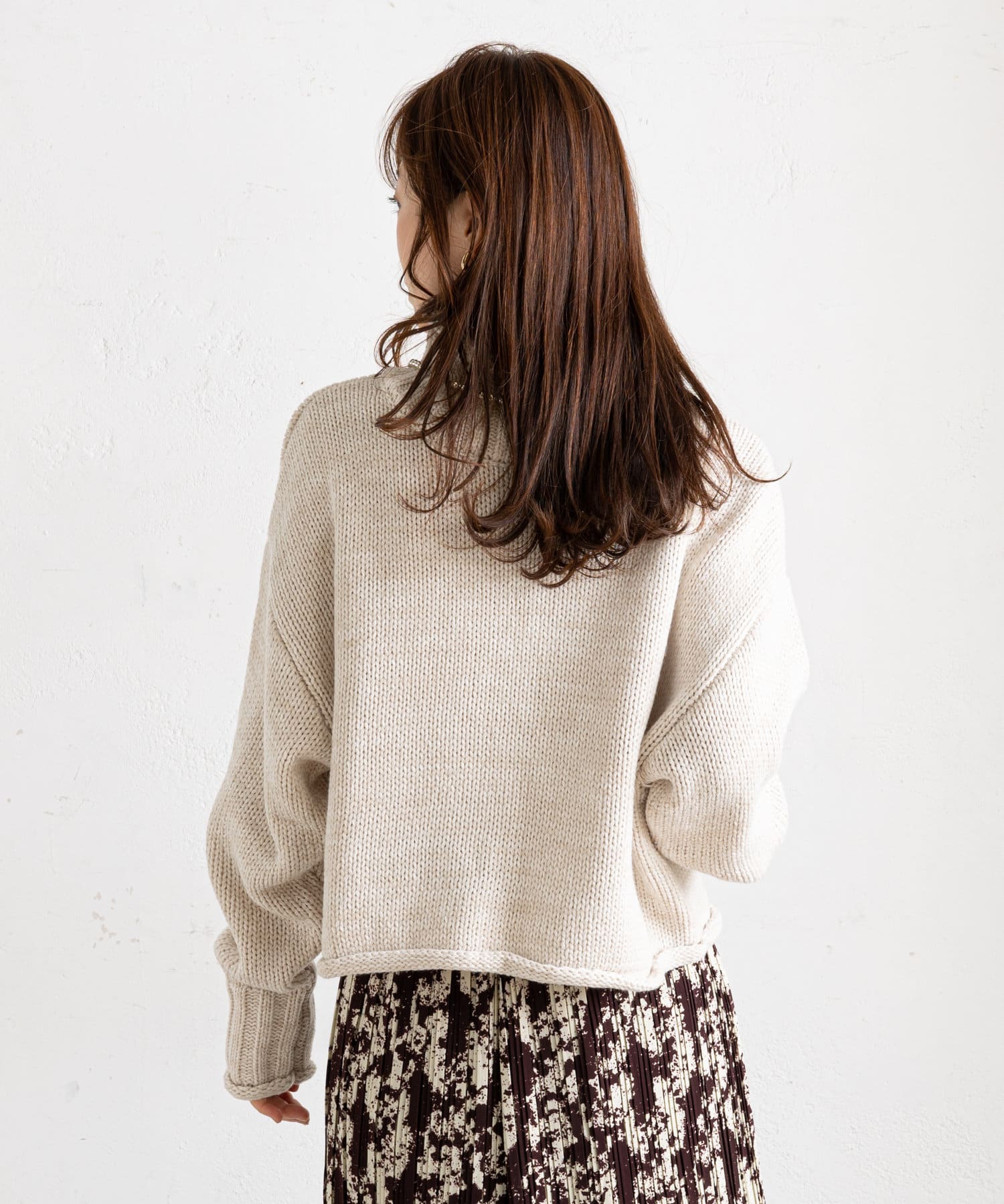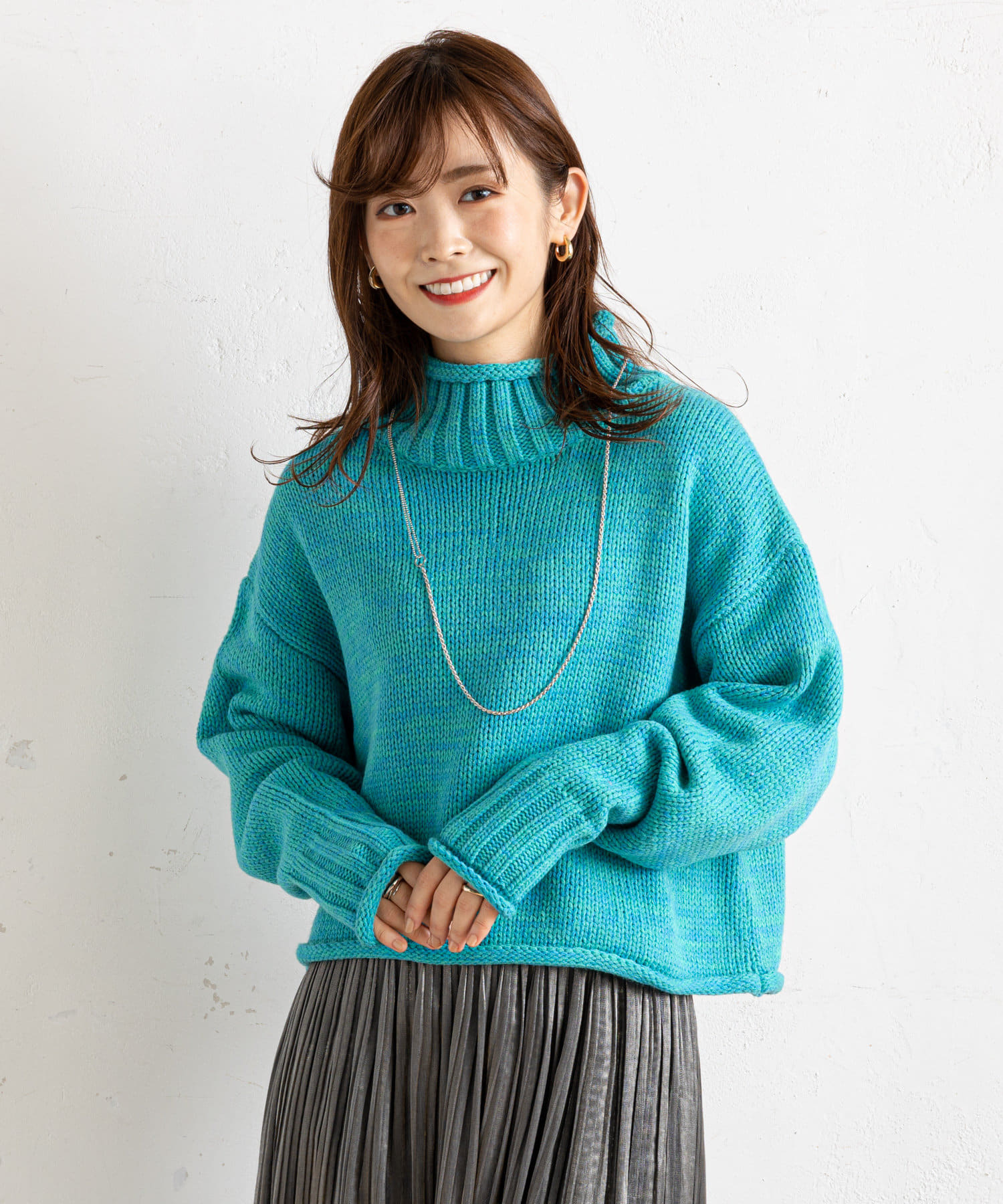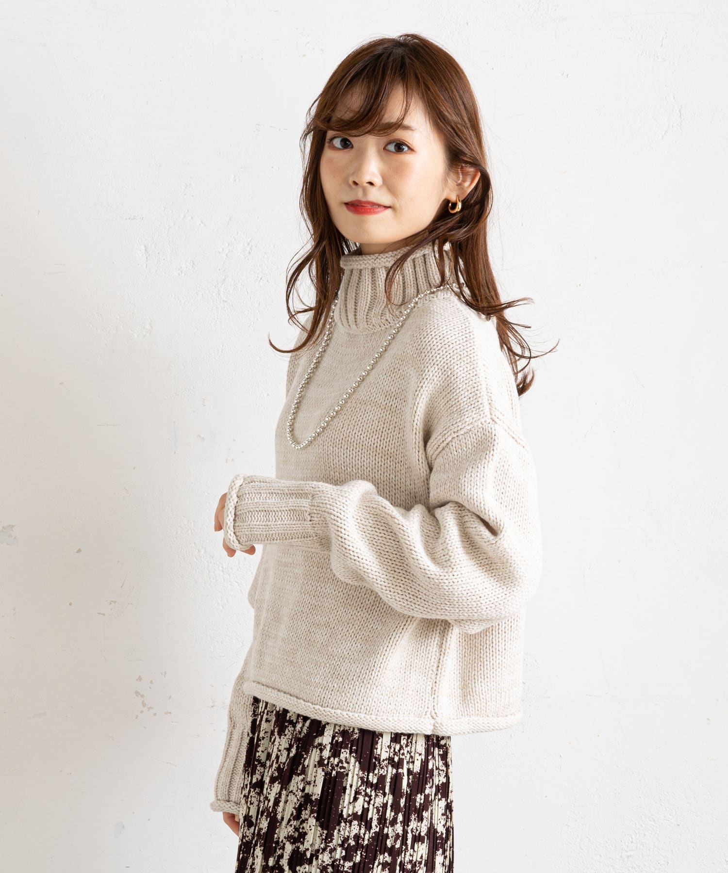 ハイネックで首元まであたたかな1枚