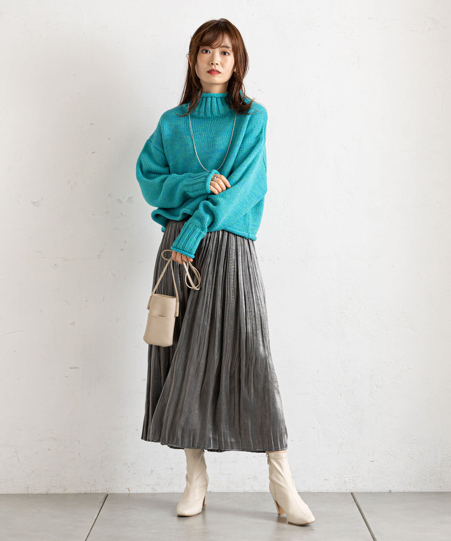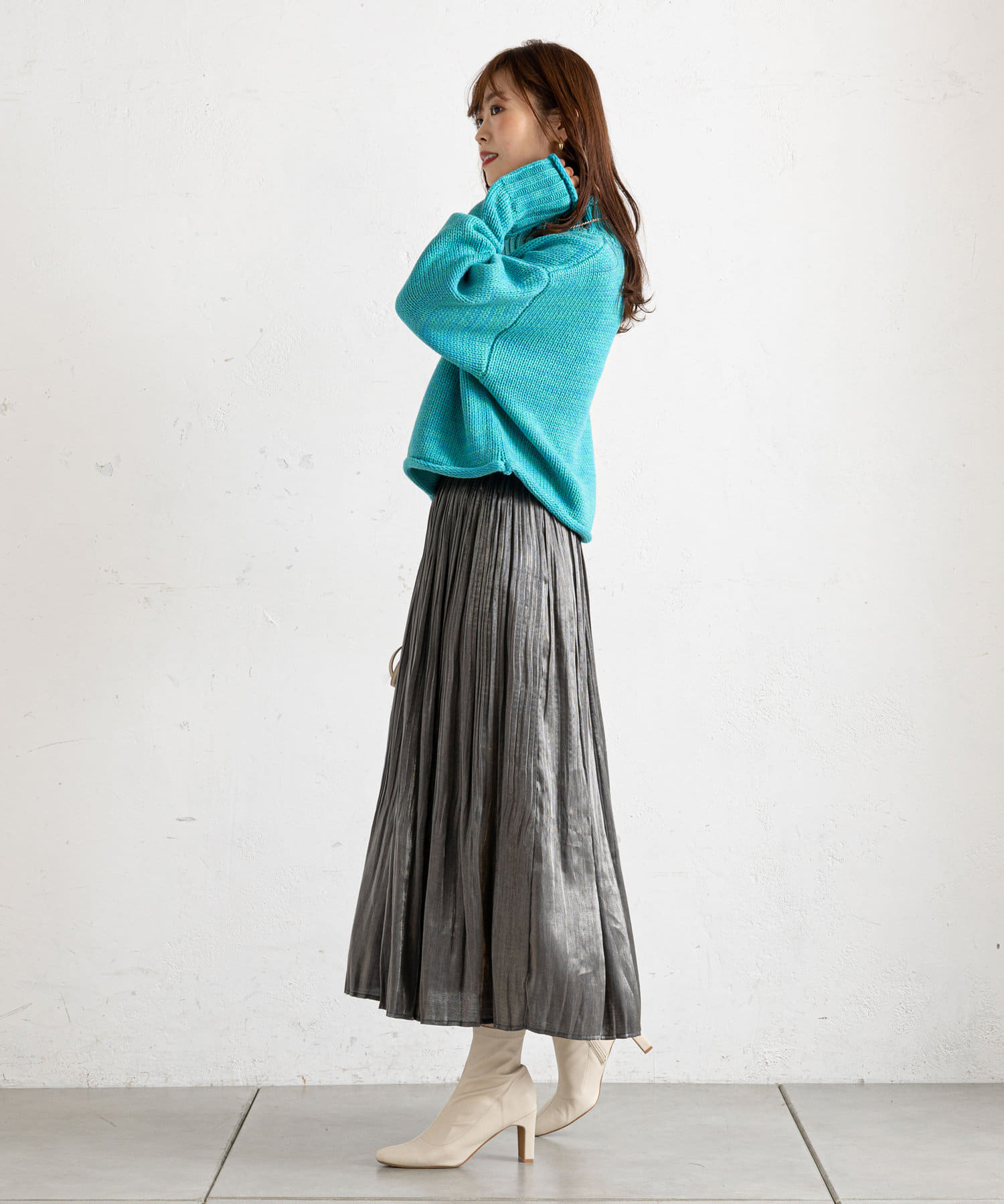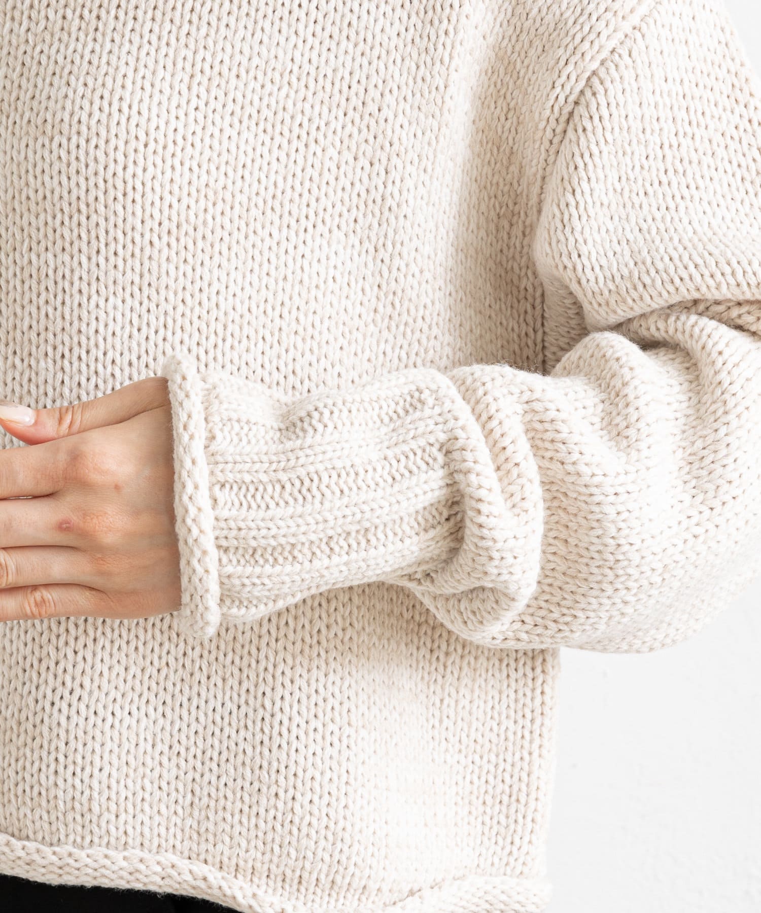 ハイネックで首元まであたたかな1枚