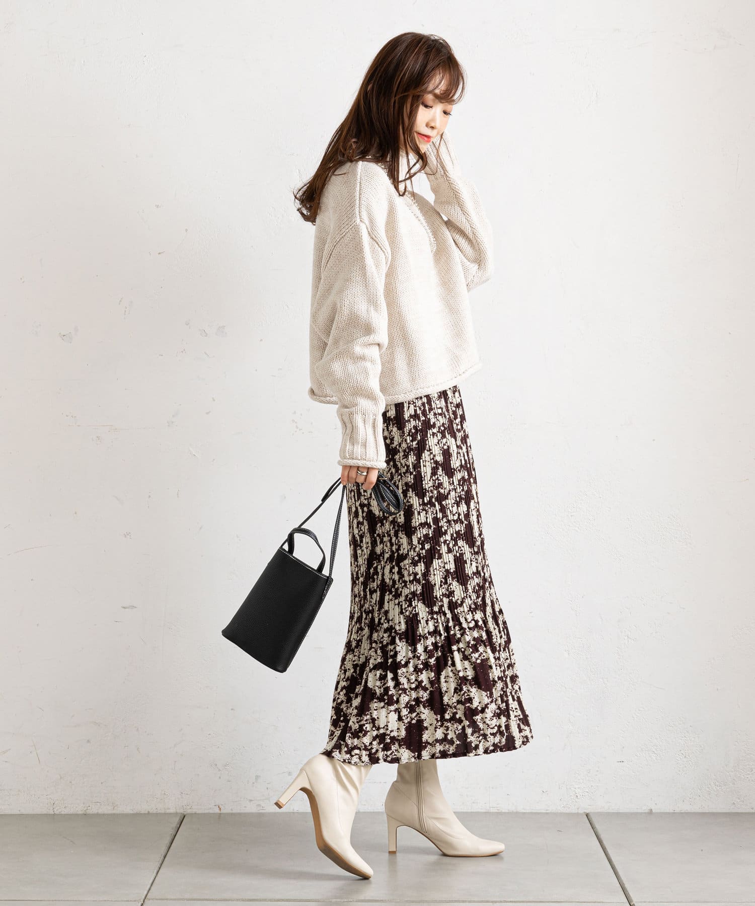 抜け感を加える女性らしいニットスタイル