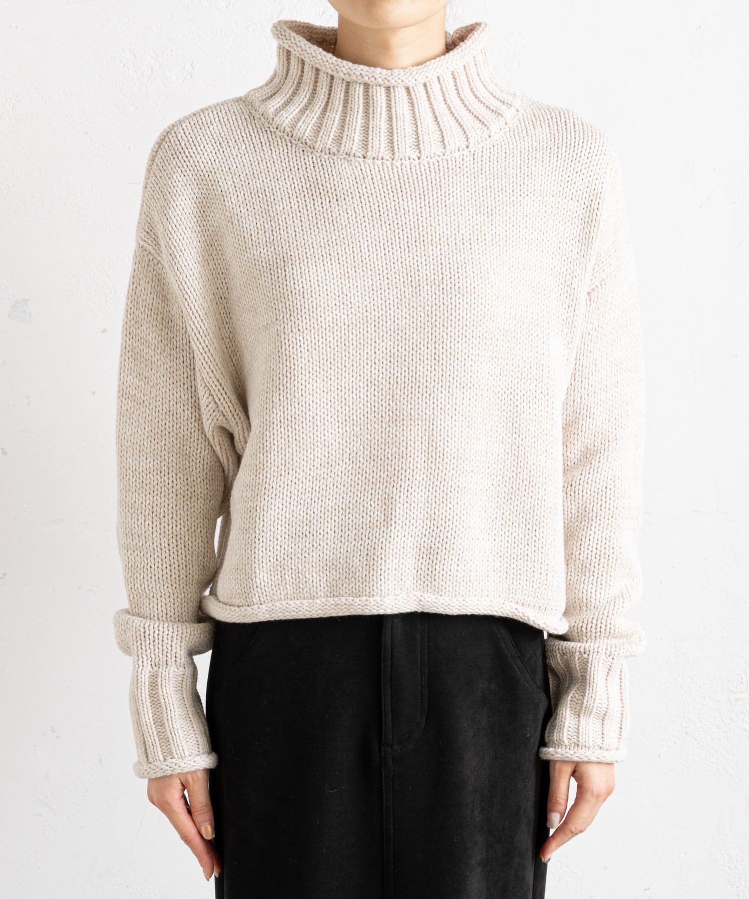 ハイネックショート丈ニット