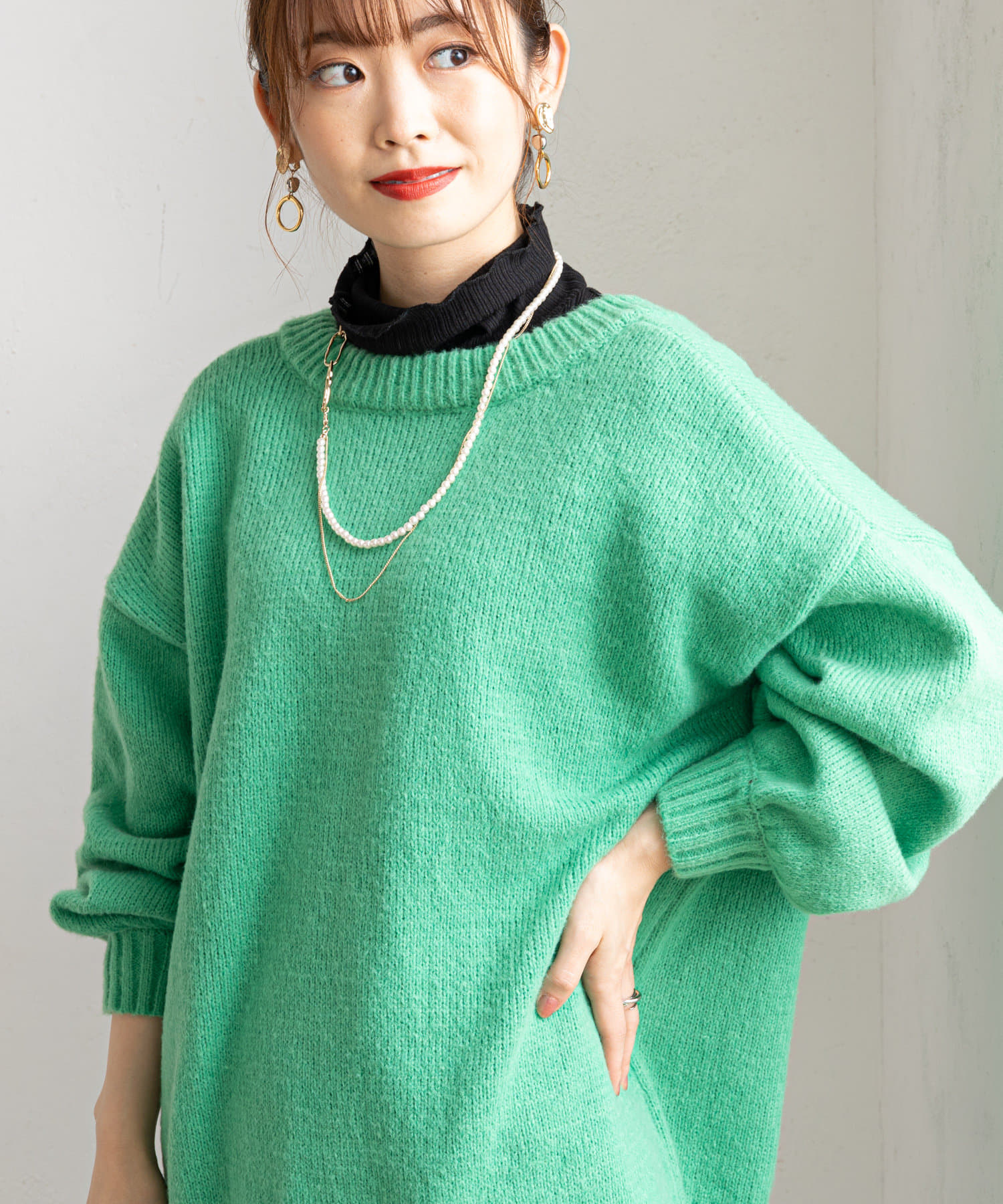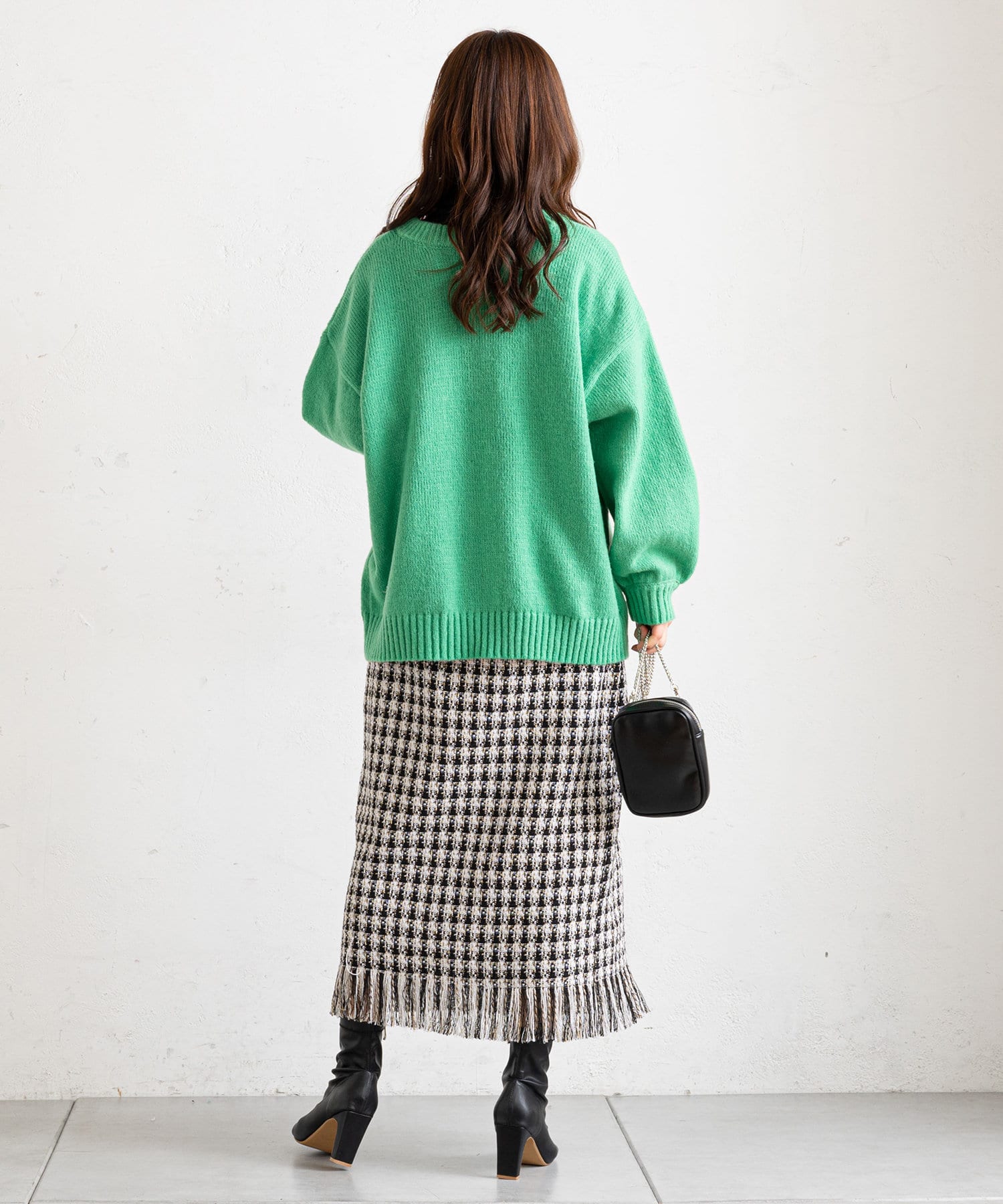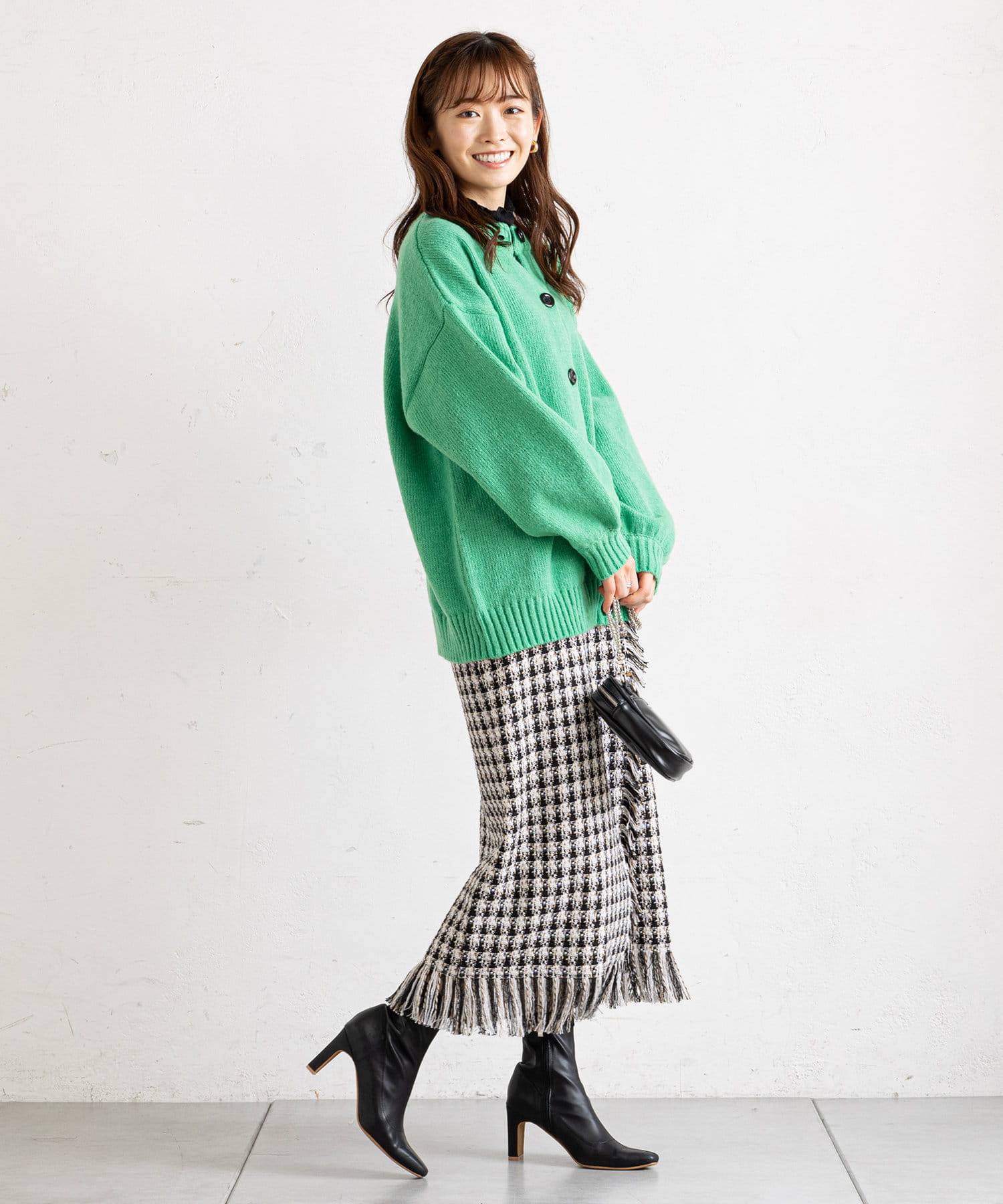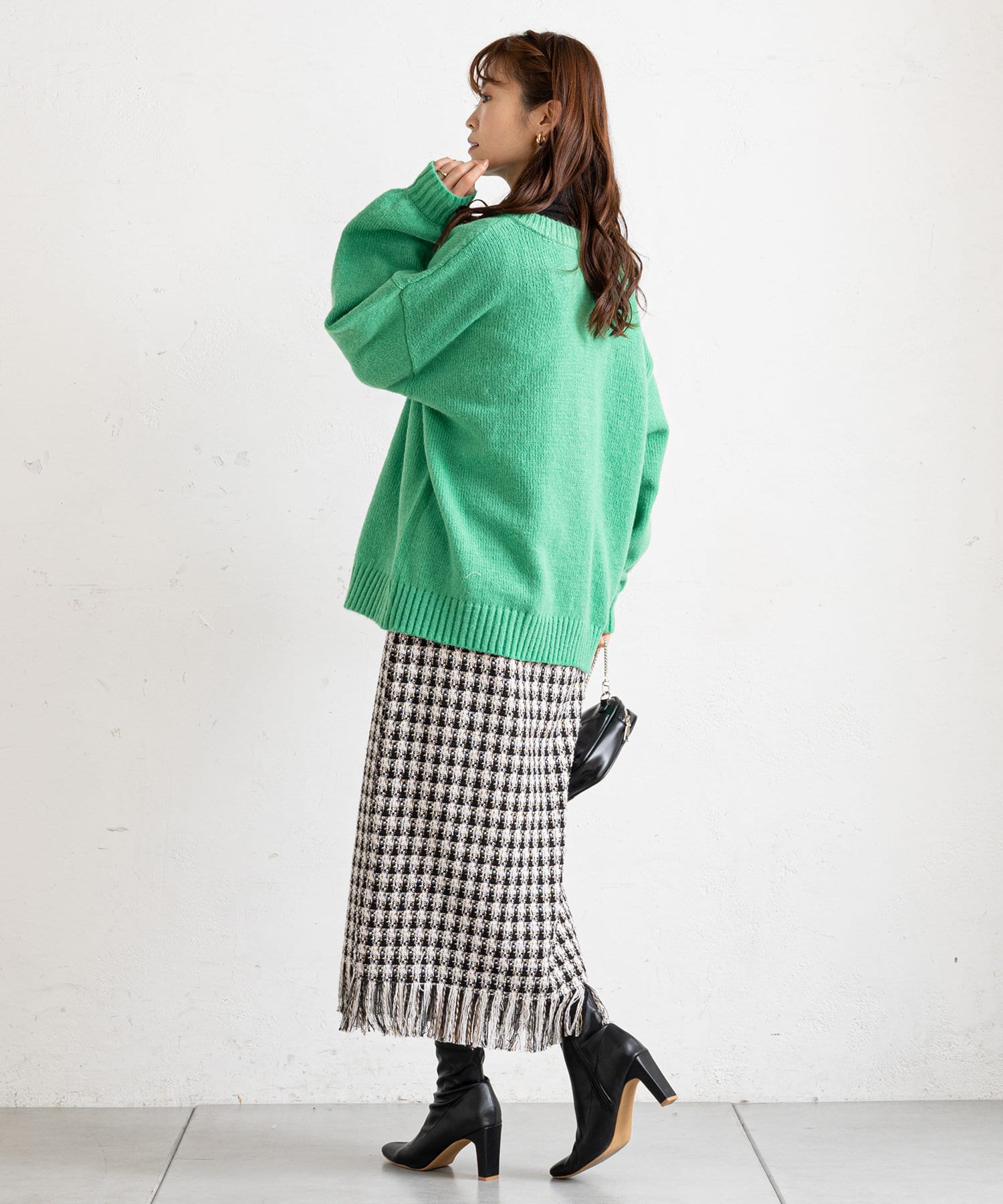 ・タイトなシルエットのロングスカートと合わせて