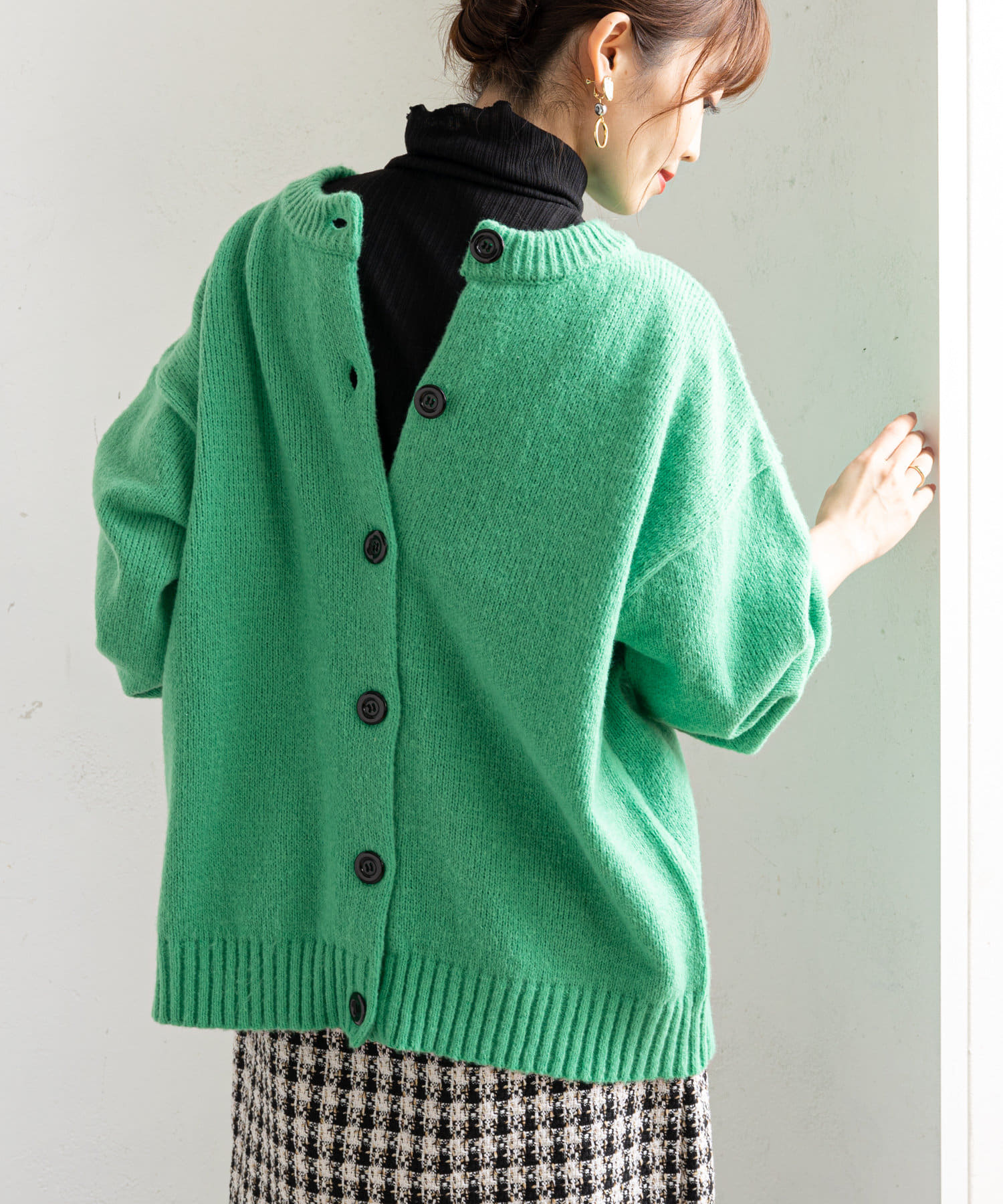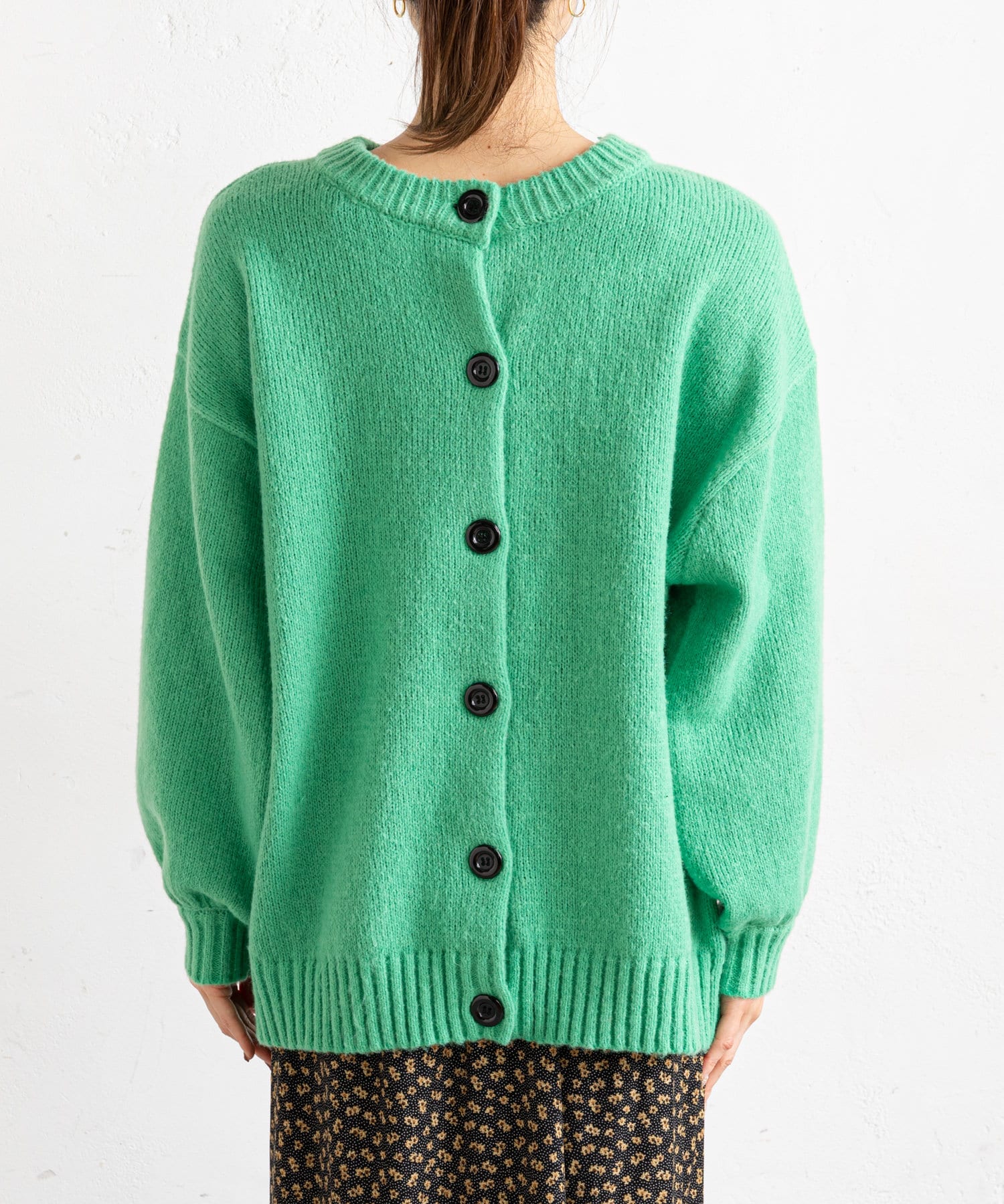 バックボタンデザインのこなれニットとしても着用可能