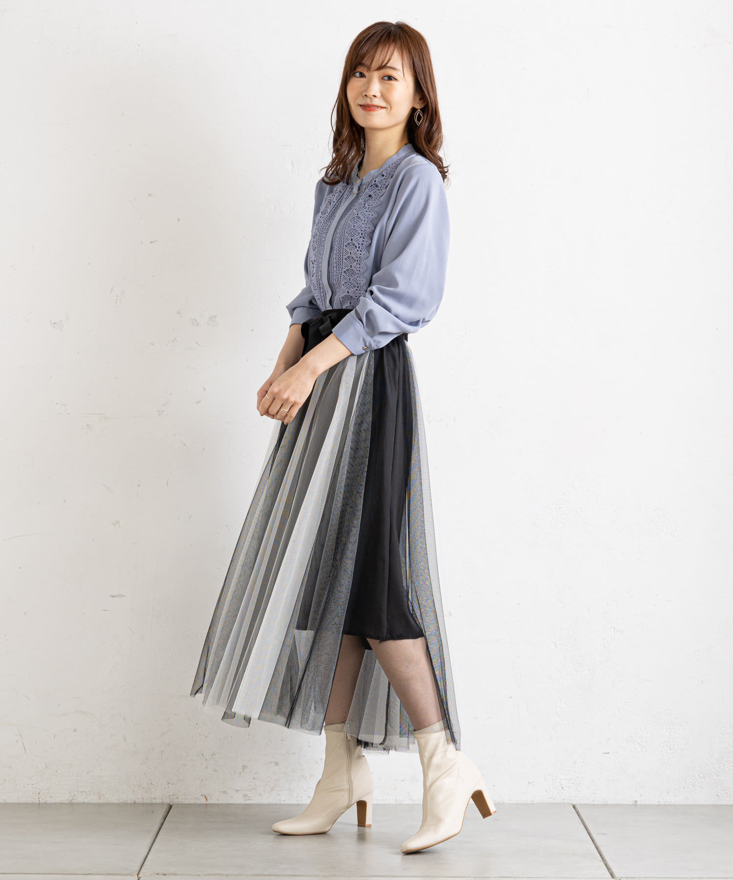 ●シアーなチュール素材が柔らかく上品に揺れ動きます