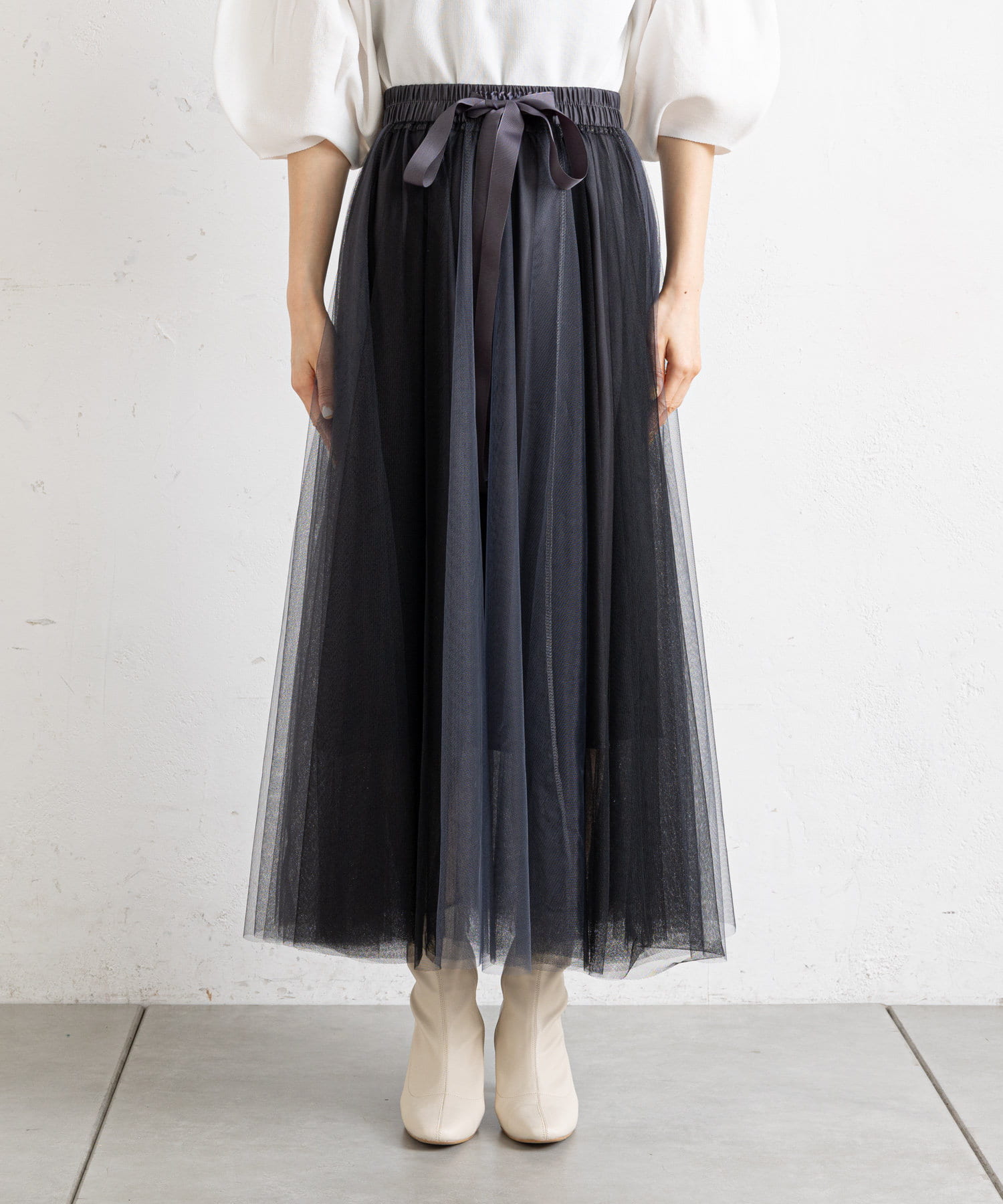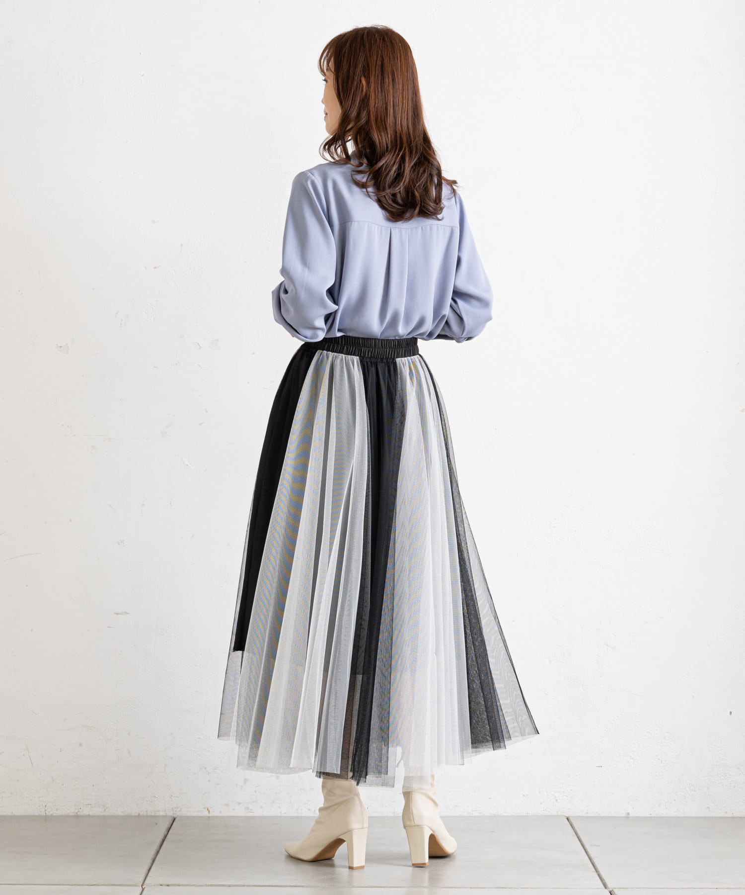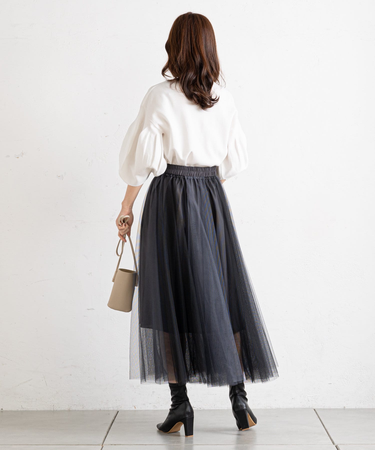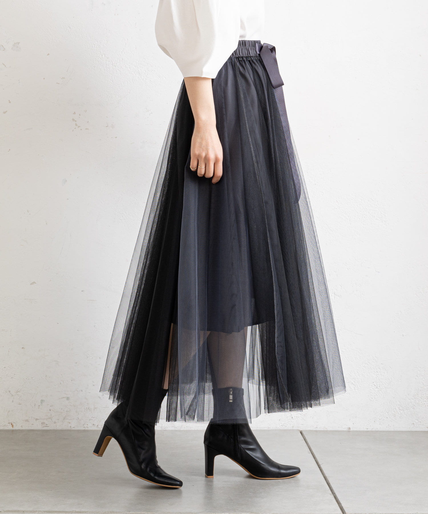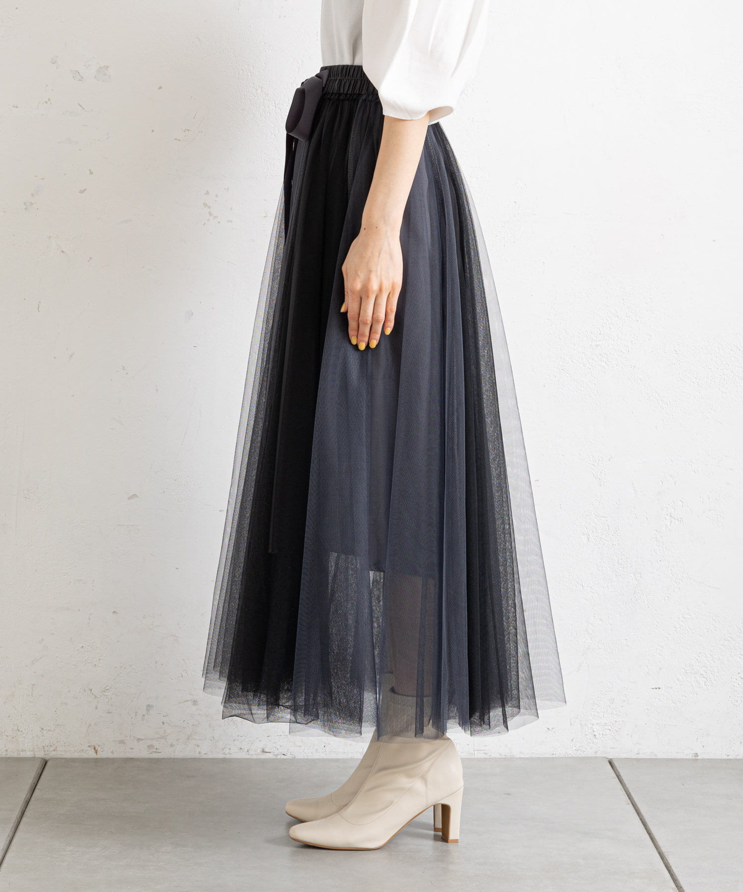 バイカラーがシックな大人のチュールスカート