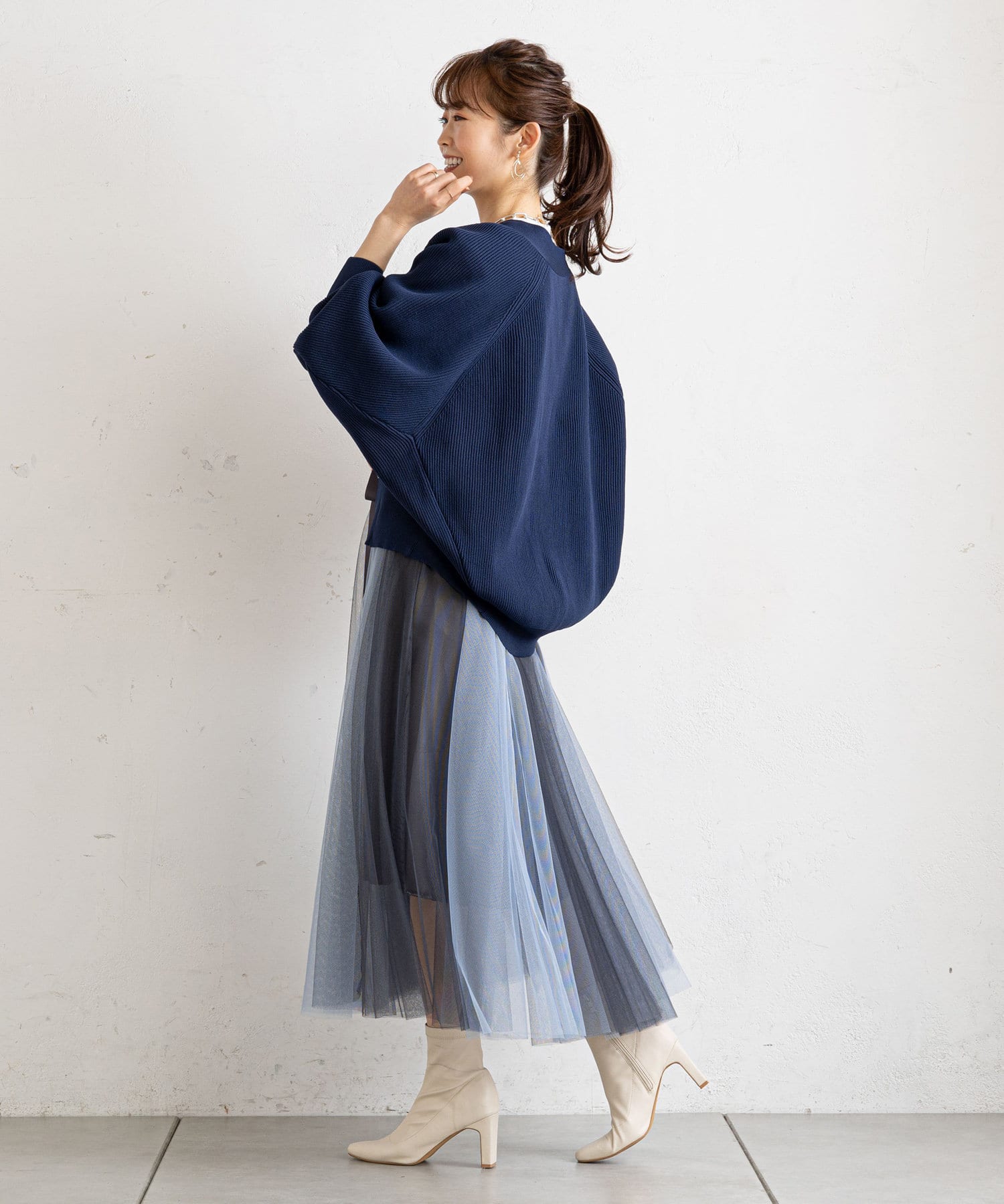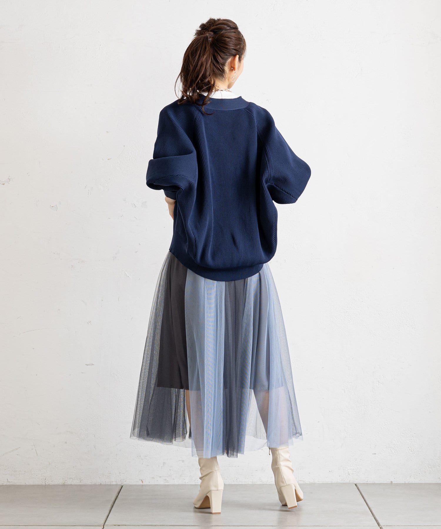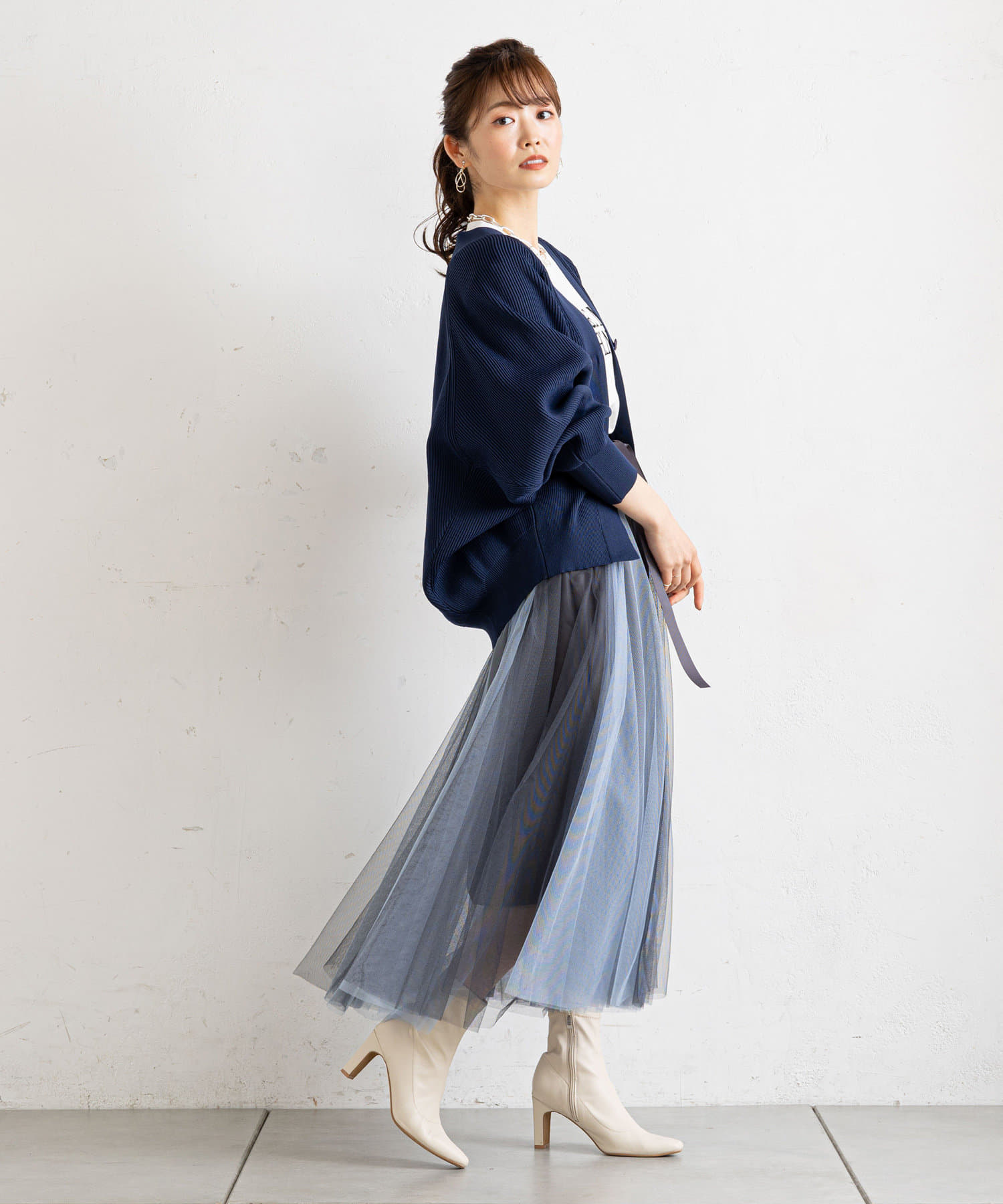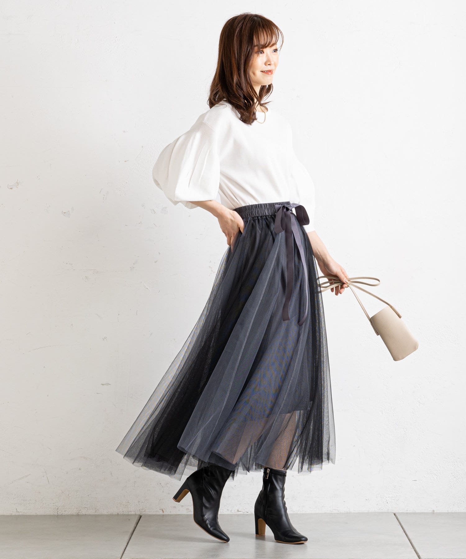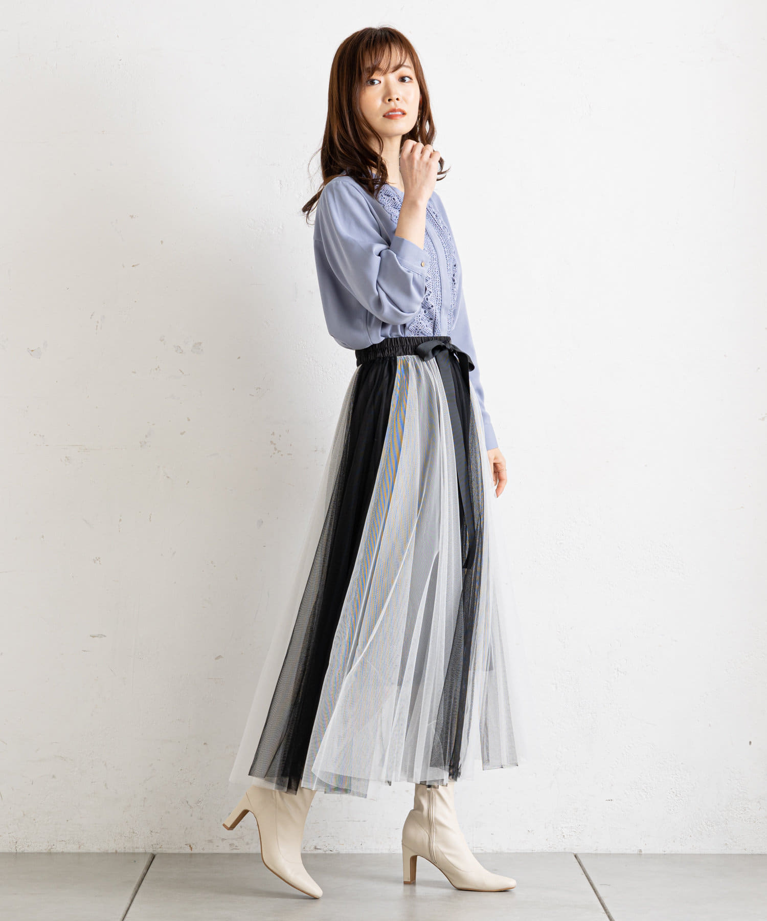 バイカラーがシックな大人のチュールスカート