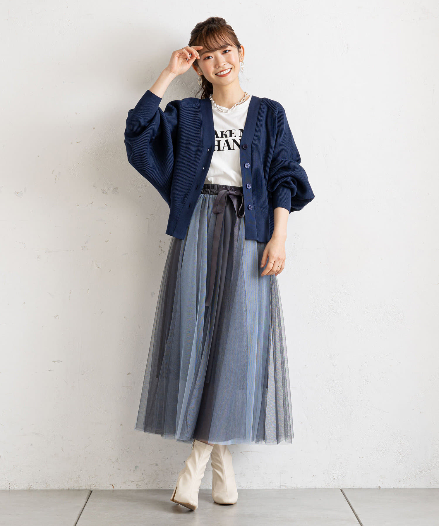 ・ブラウスをタックインして、