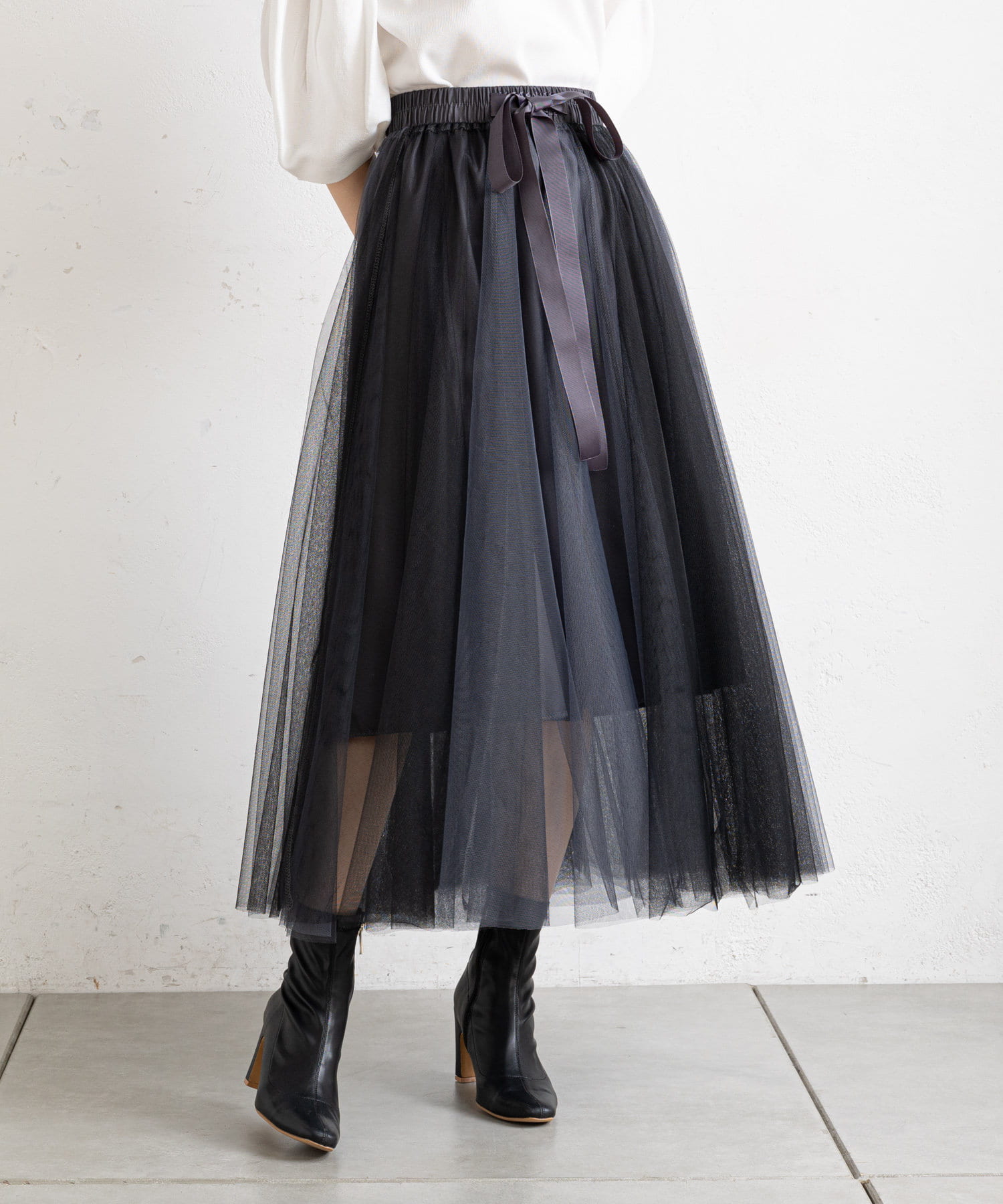 TOP > prose verse > レディース > スカート > スカート > 【ウエストゴム仕様】リボン付きバイカラーチュールスカート