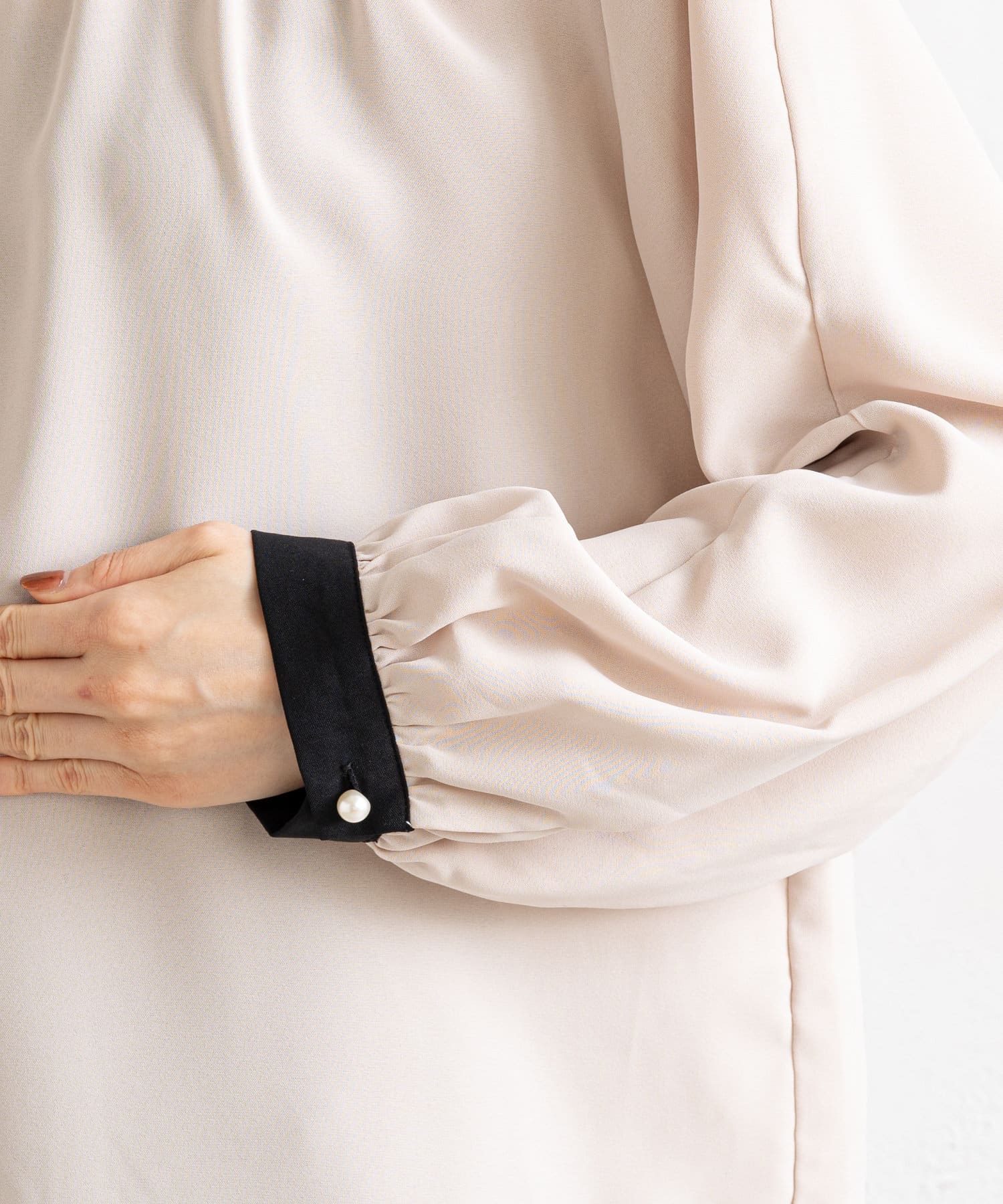 ●袖・首部分ついているパールボタンが女性らしい可憐な印象に