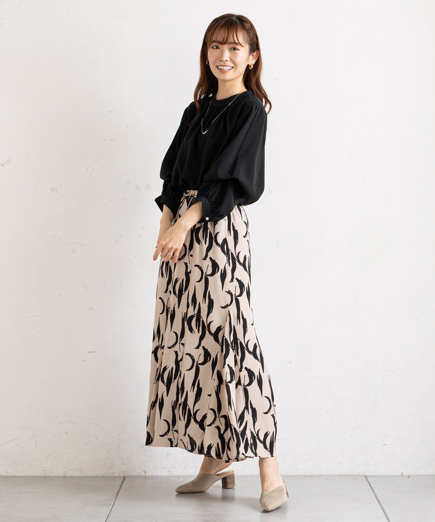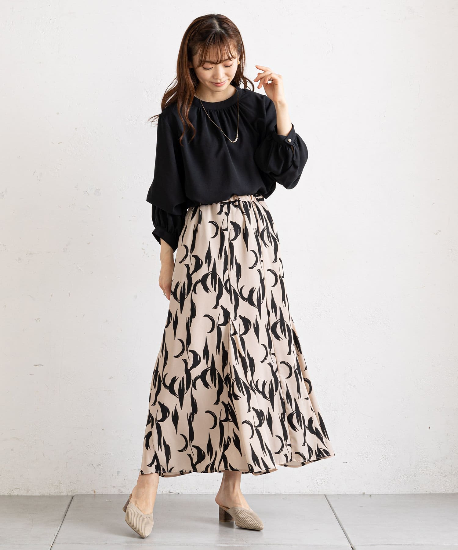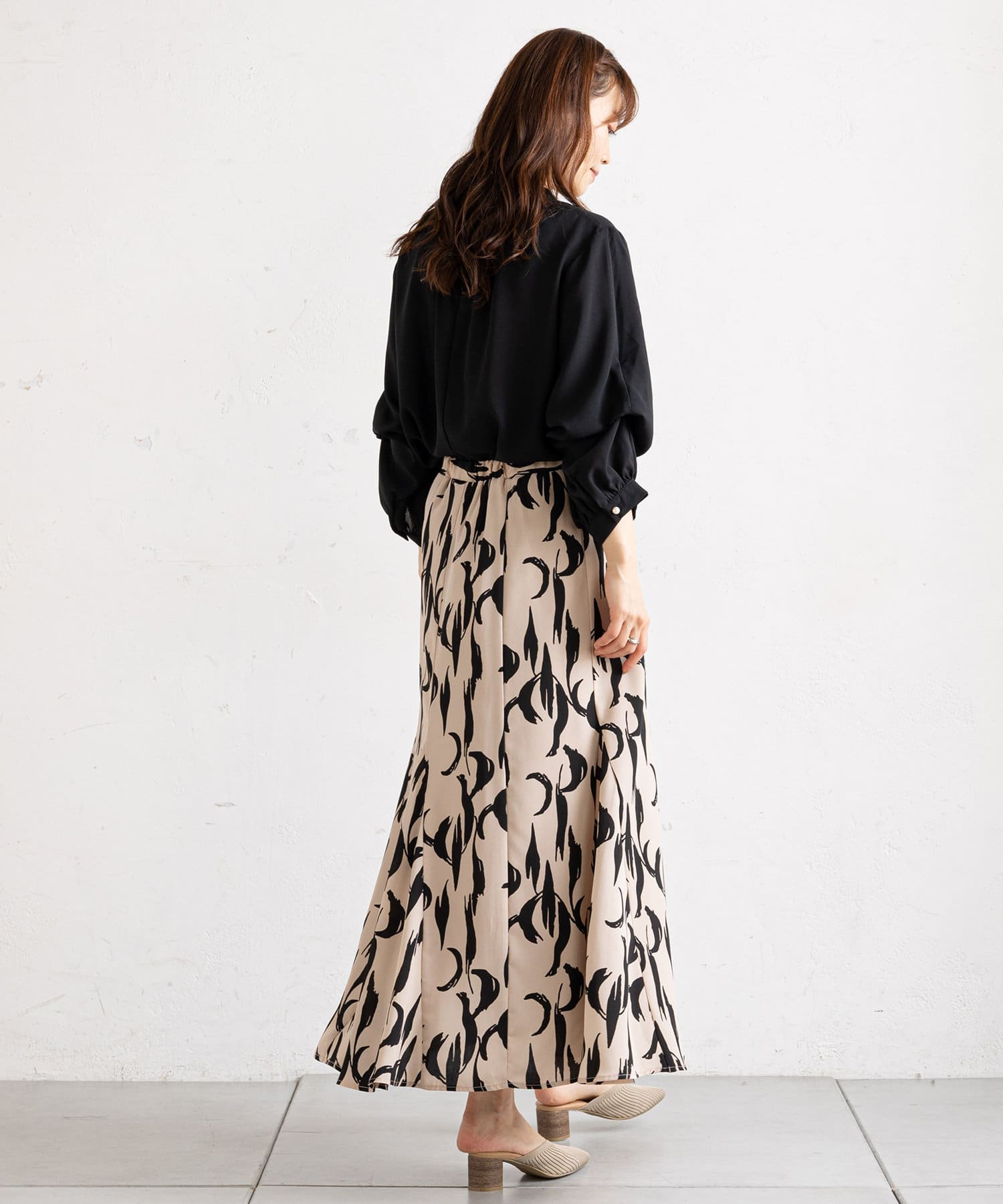 ・モノトーン幾何柄マーメイドスカート (PVZ1012601A0002)