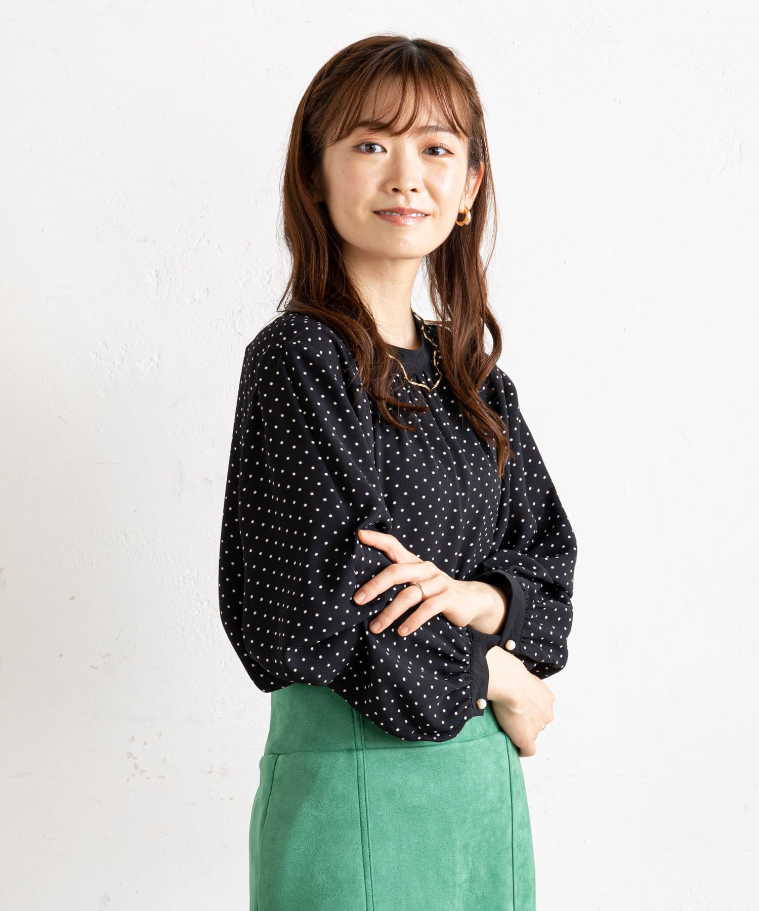 ・ボタンを留めればクシュっと女性らしいふんわり七分袖に