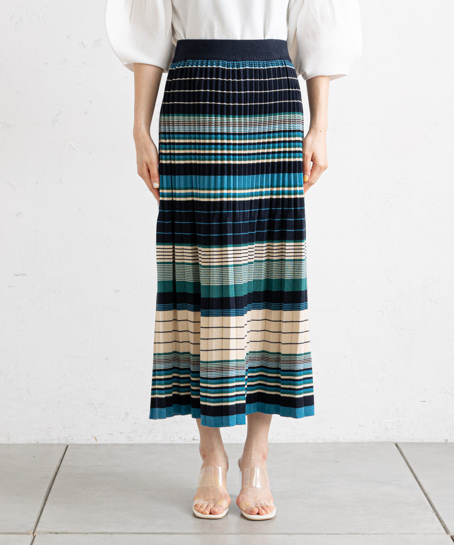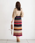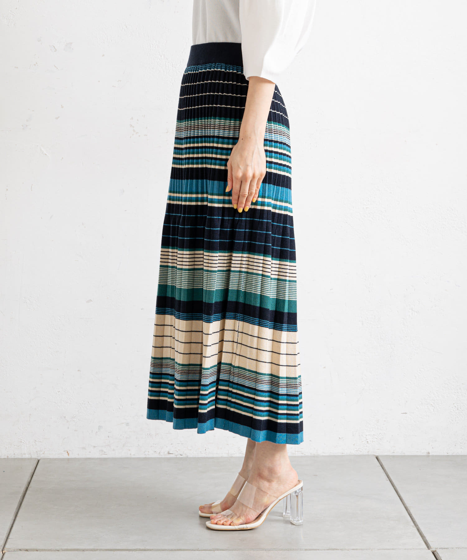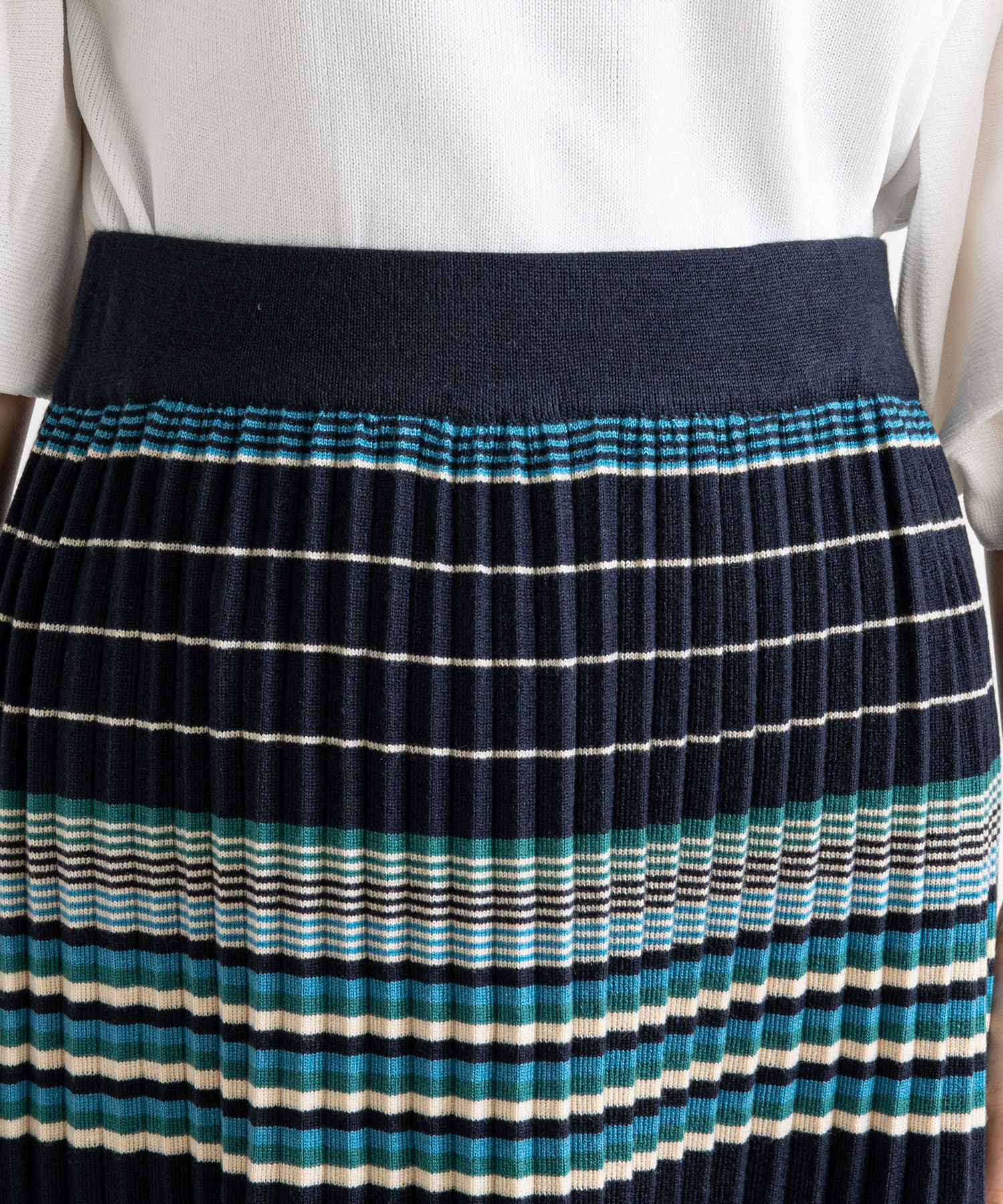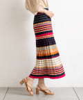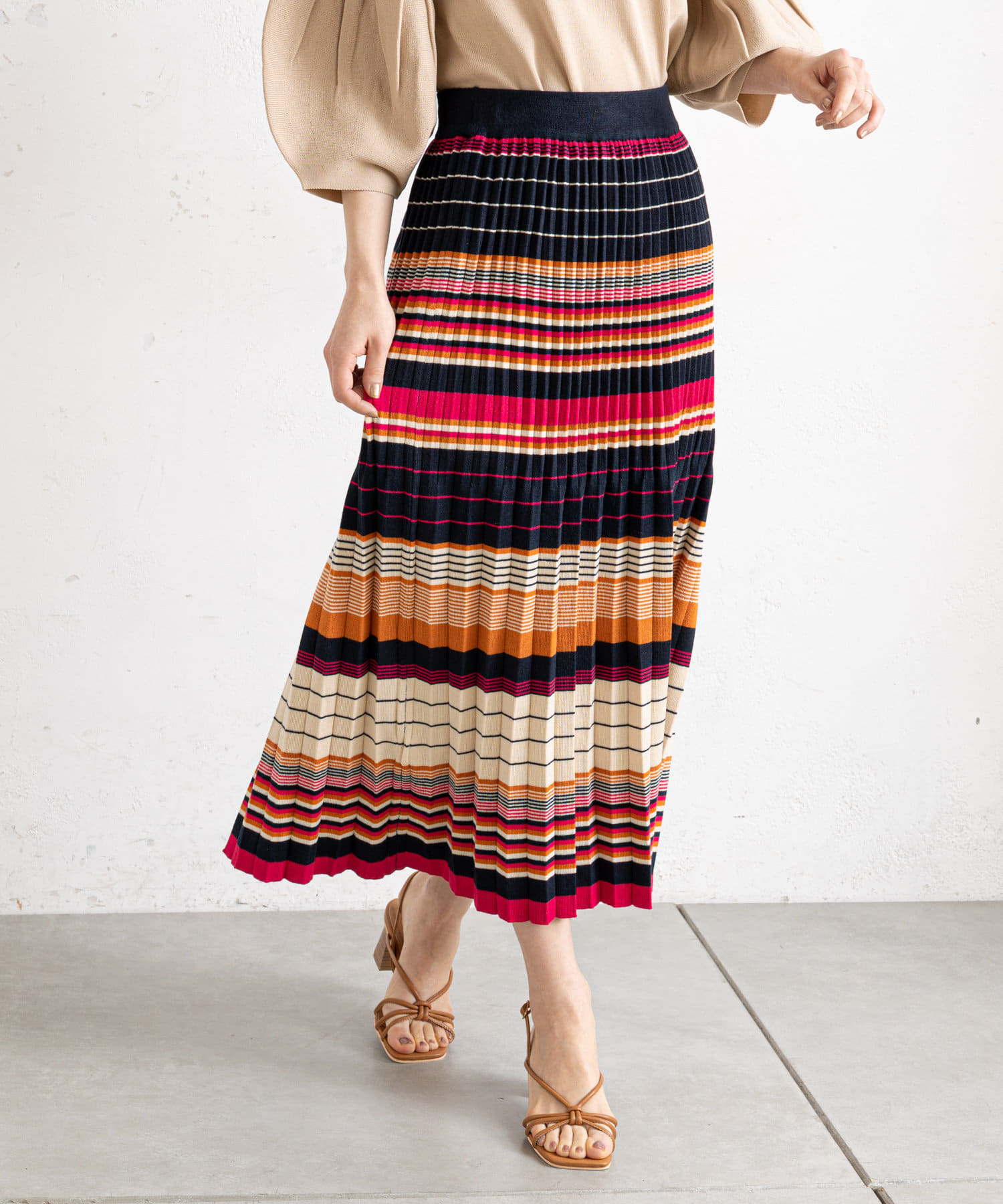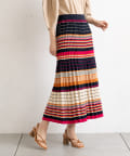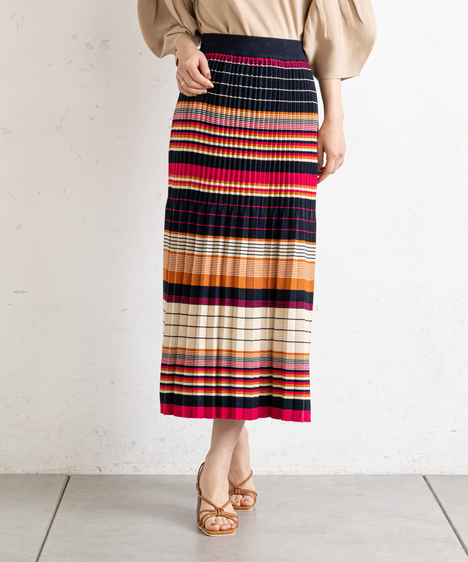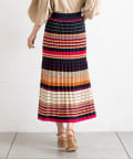 【ウエストゴム仕様】マルチボーダーニットプリーツスカート