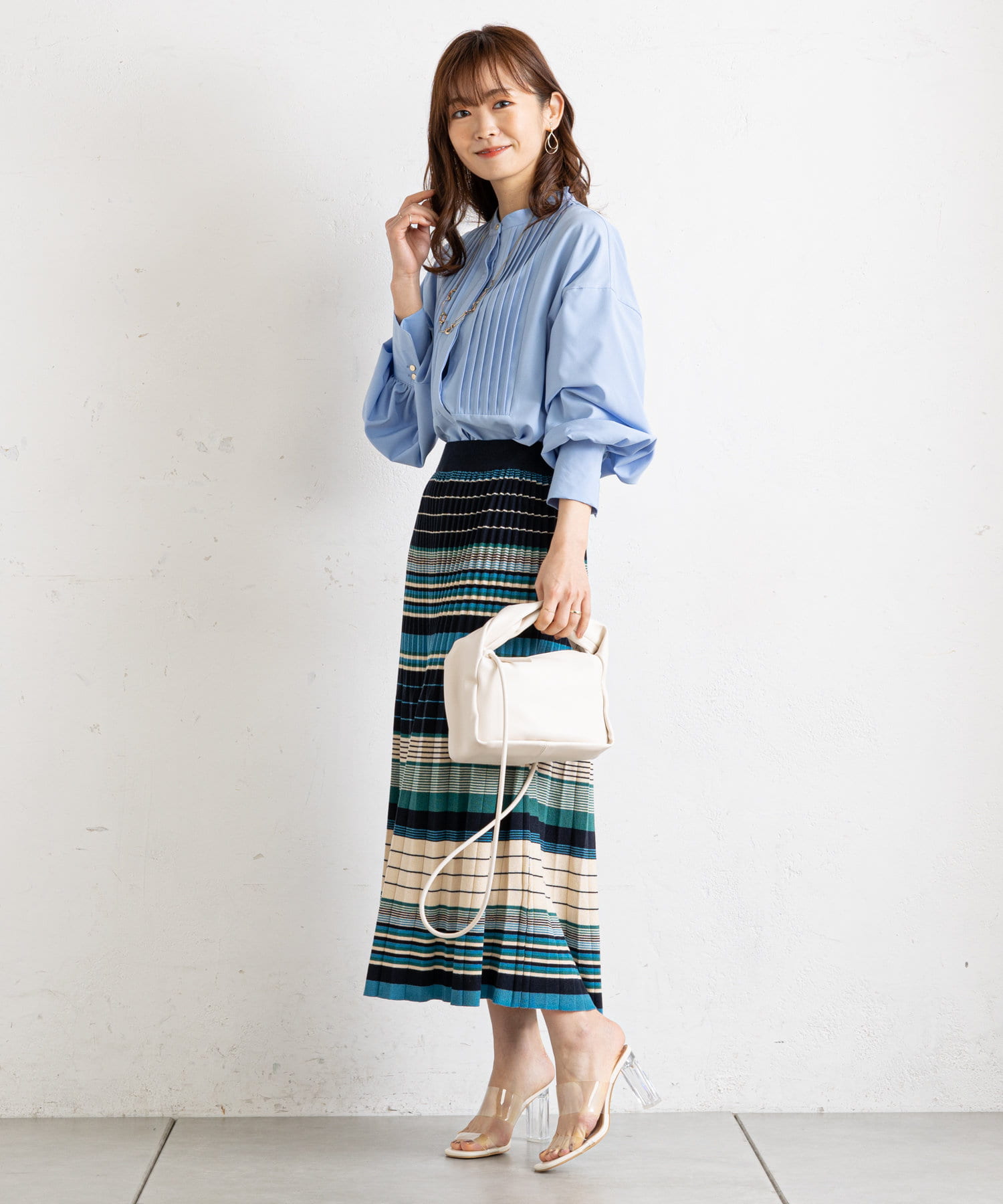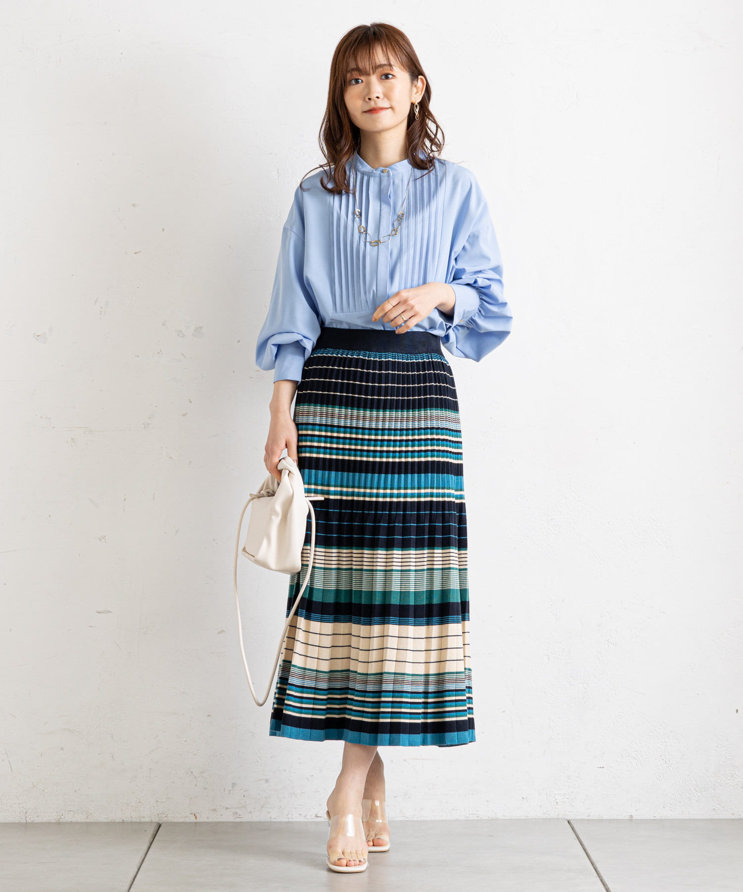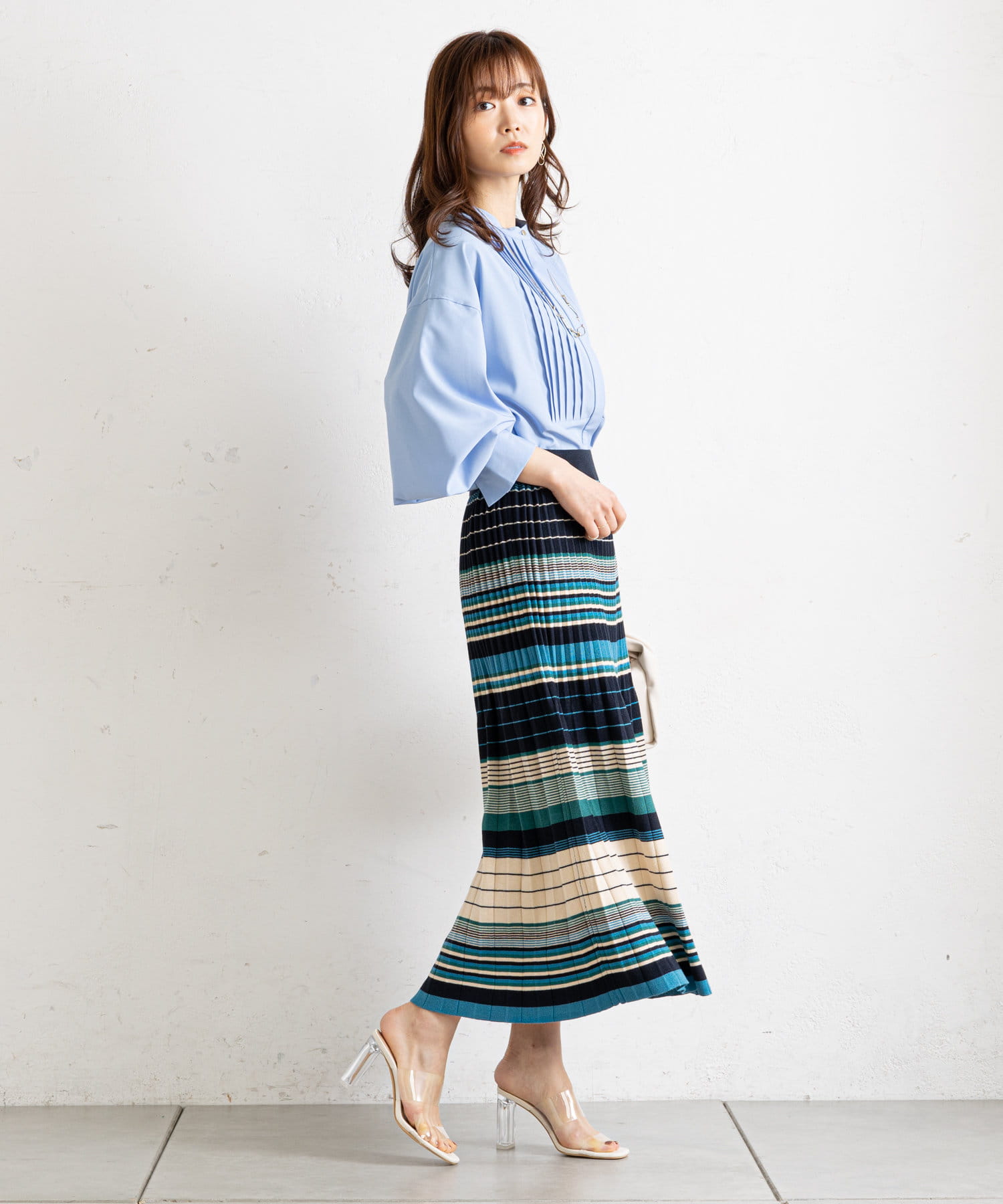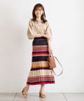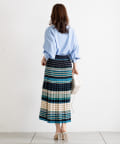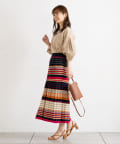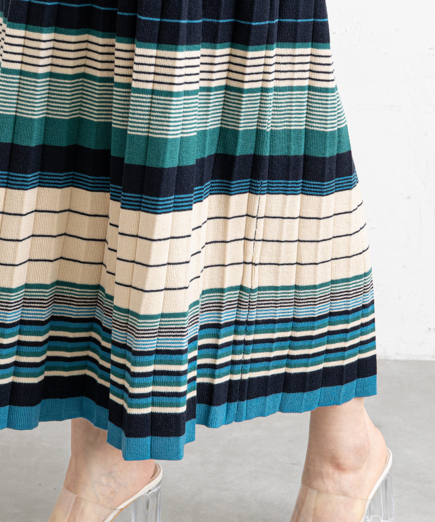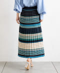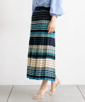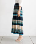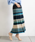 【ウエストゴム仕様】マルチボーダーニットプリーツスカート