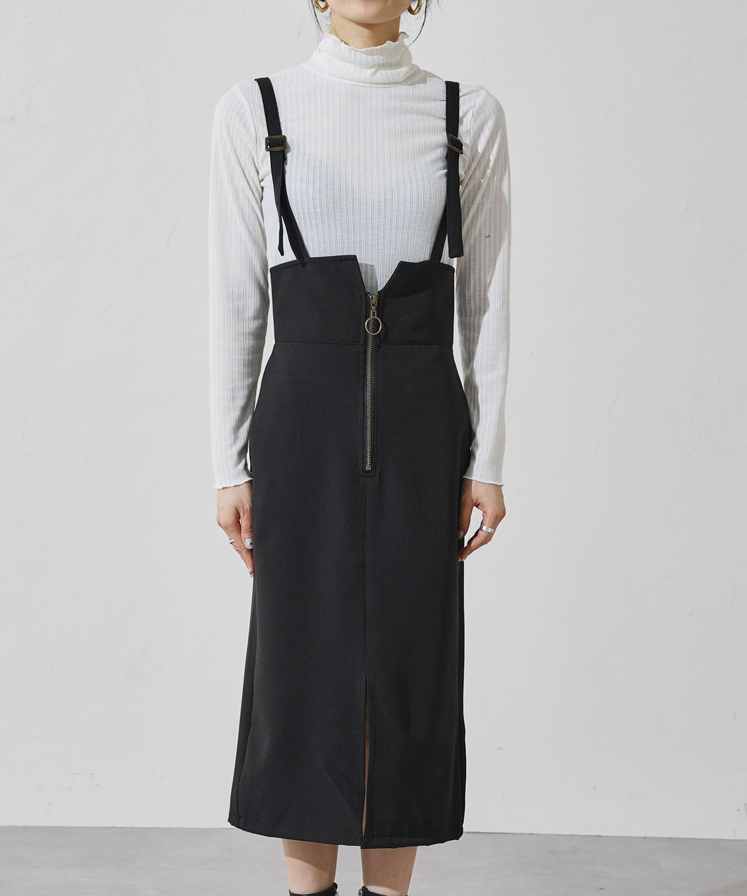 • prose verse(プロズヴェール) 【肩紐調節可能】サスペンダー付きフロントジップスカート