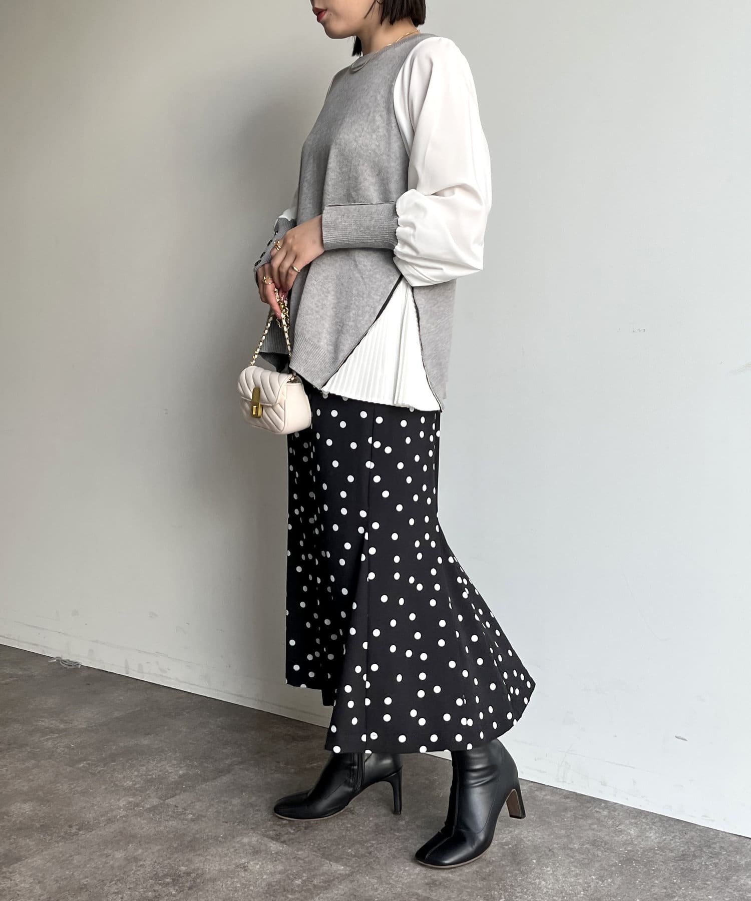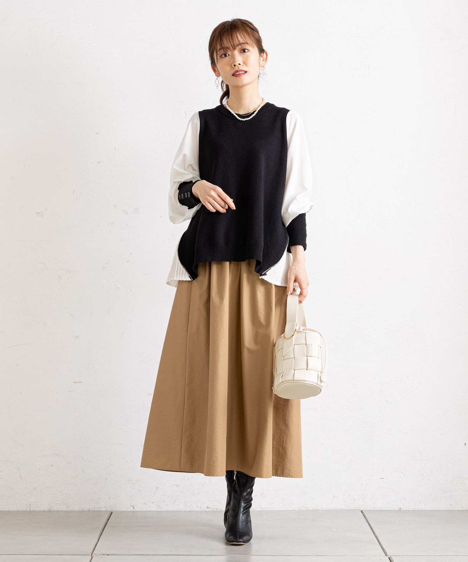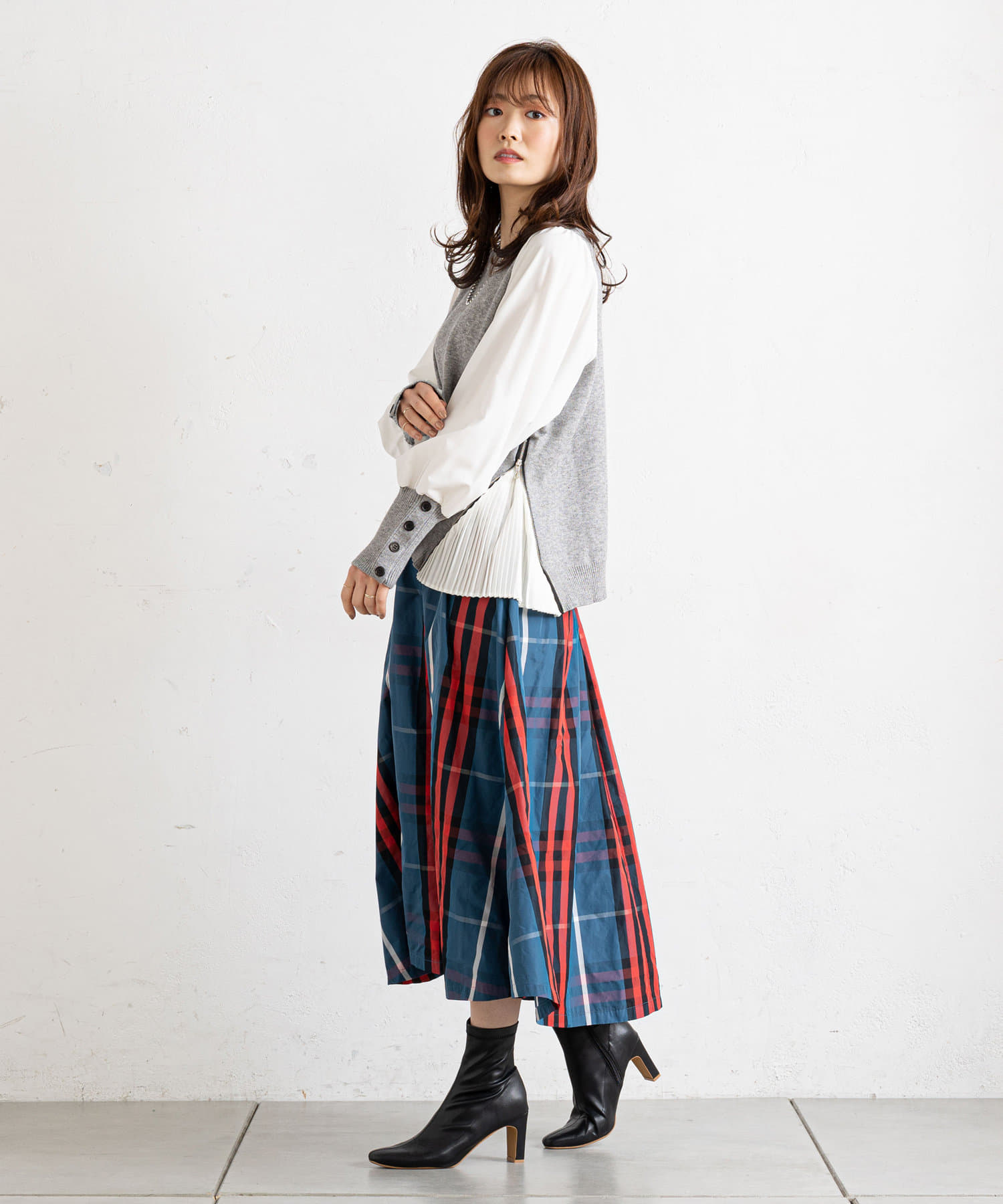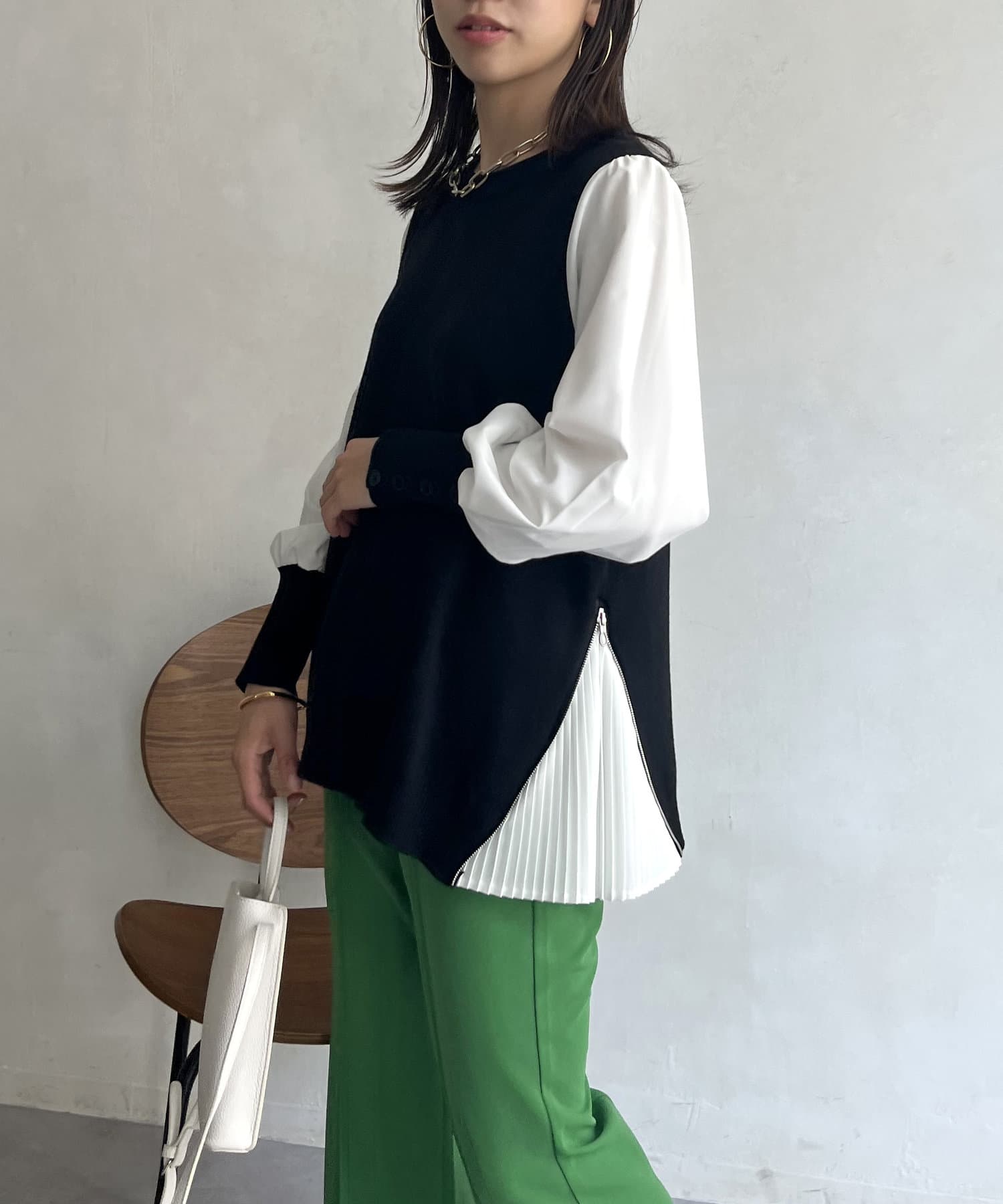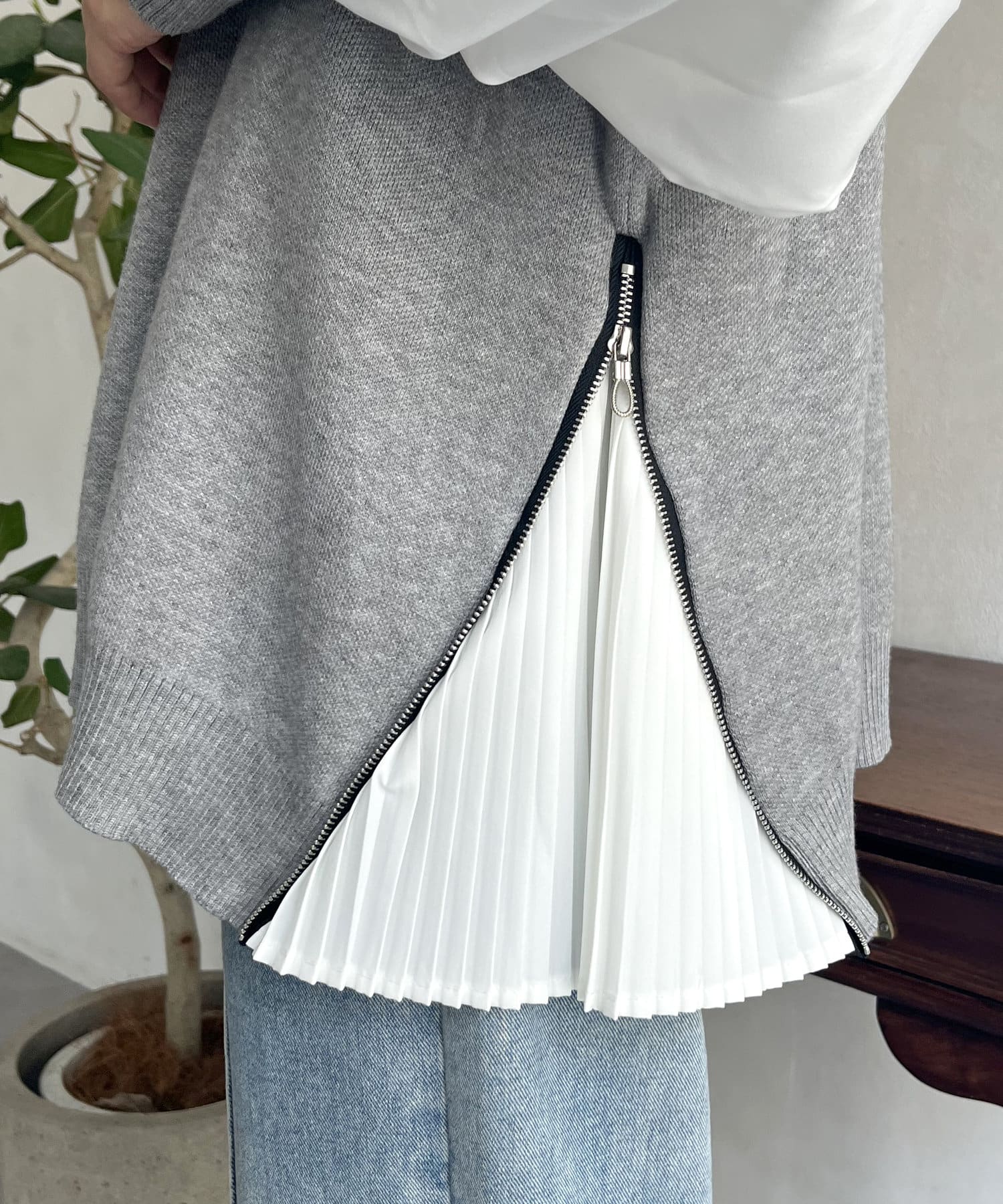 ●サイドジップの内側から覗くプリーツがコーデのアクセントに