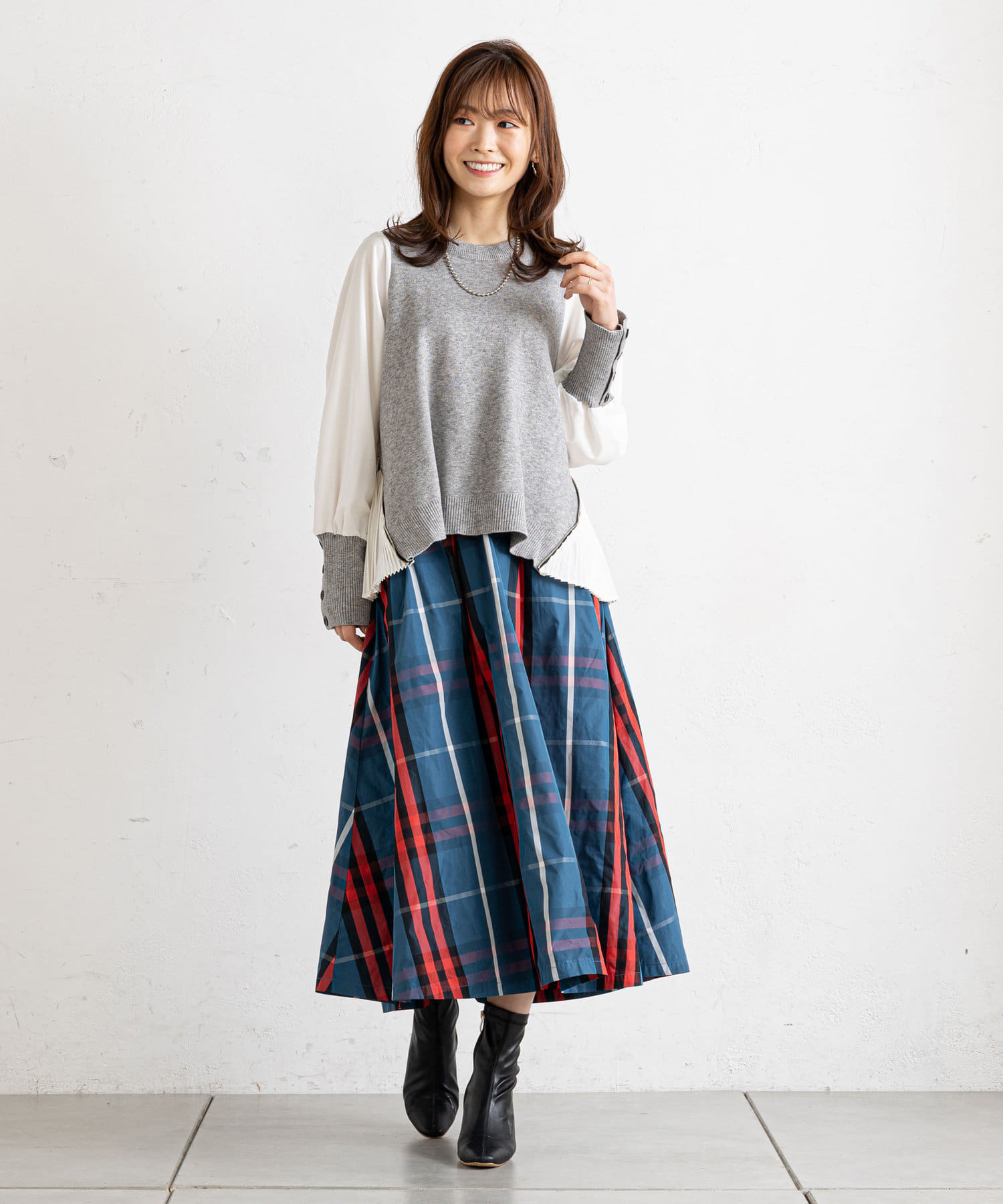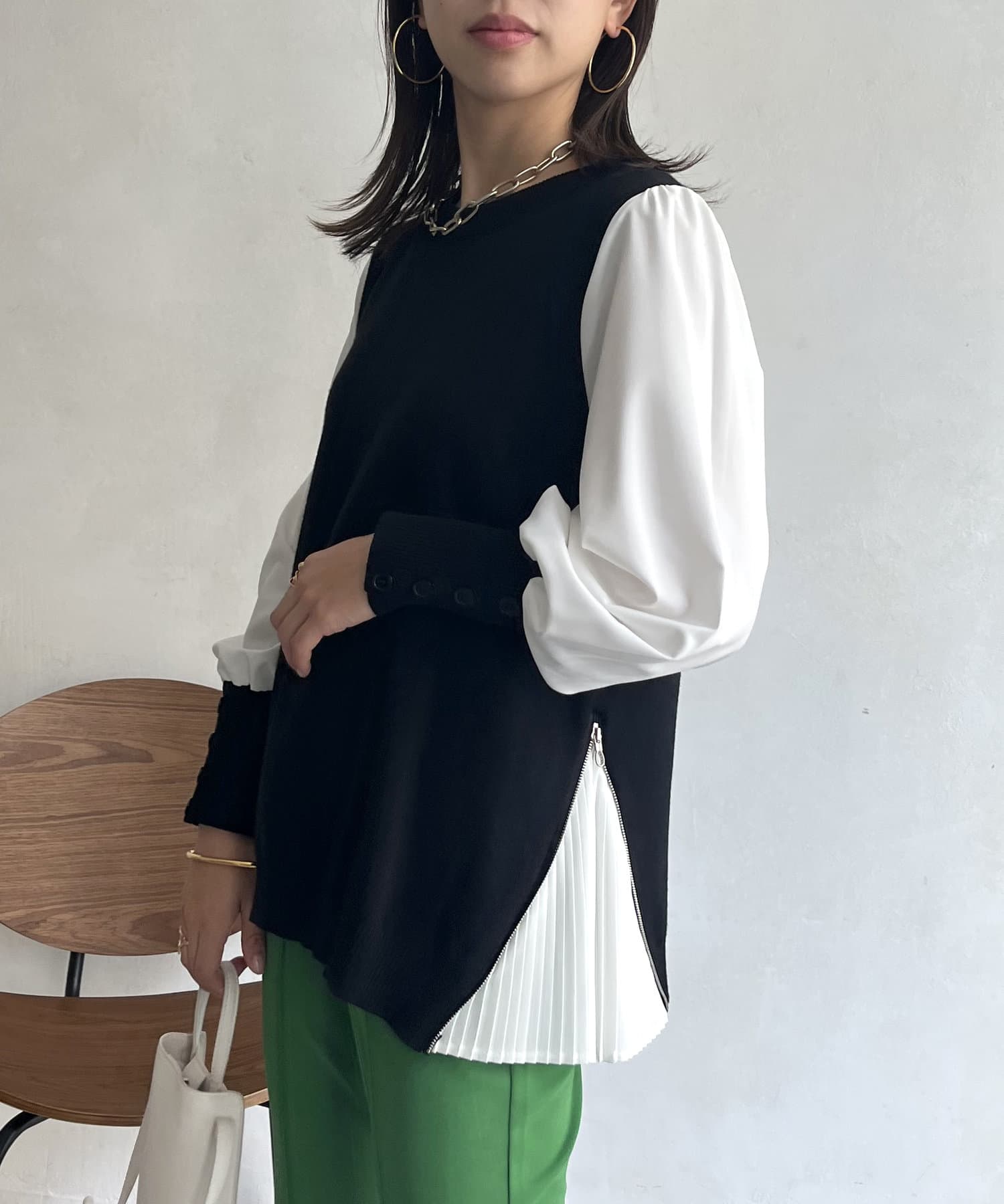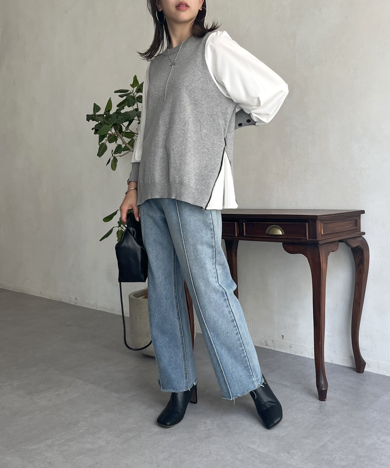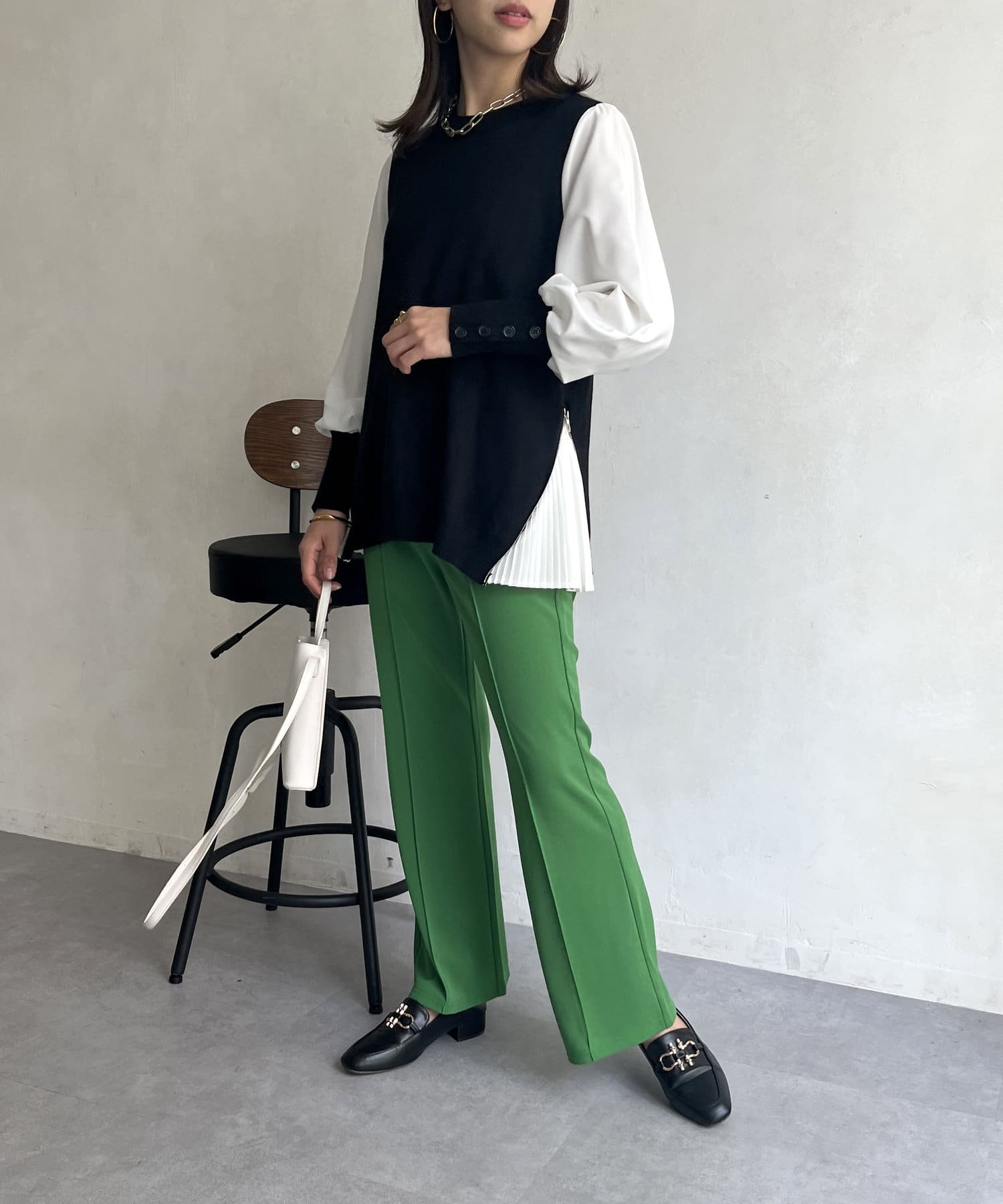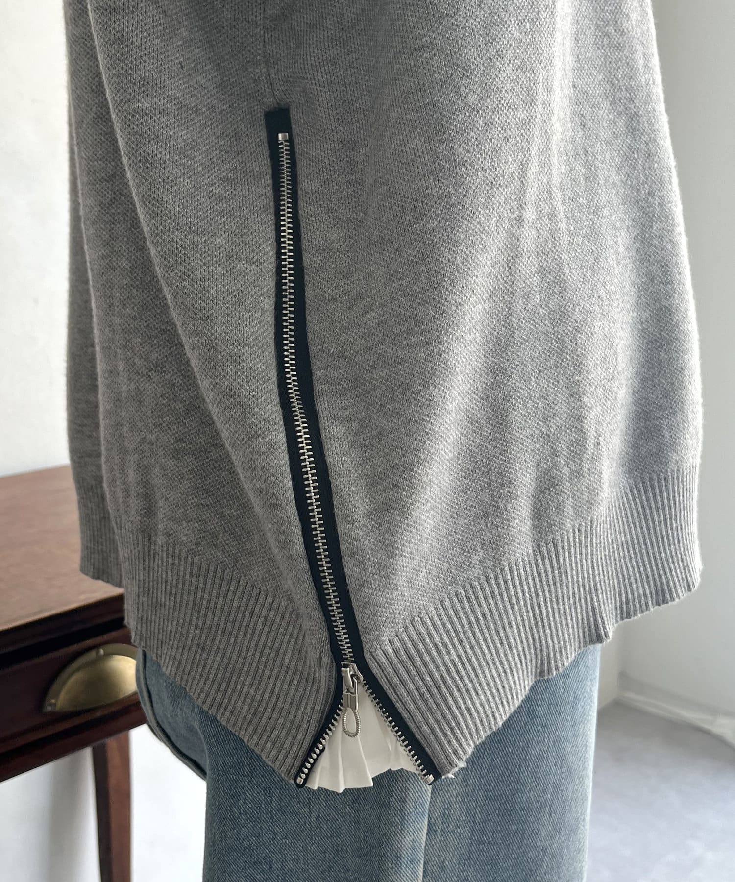 ●サイドジップの内側から覗くプリーツがコーデのアクセントに