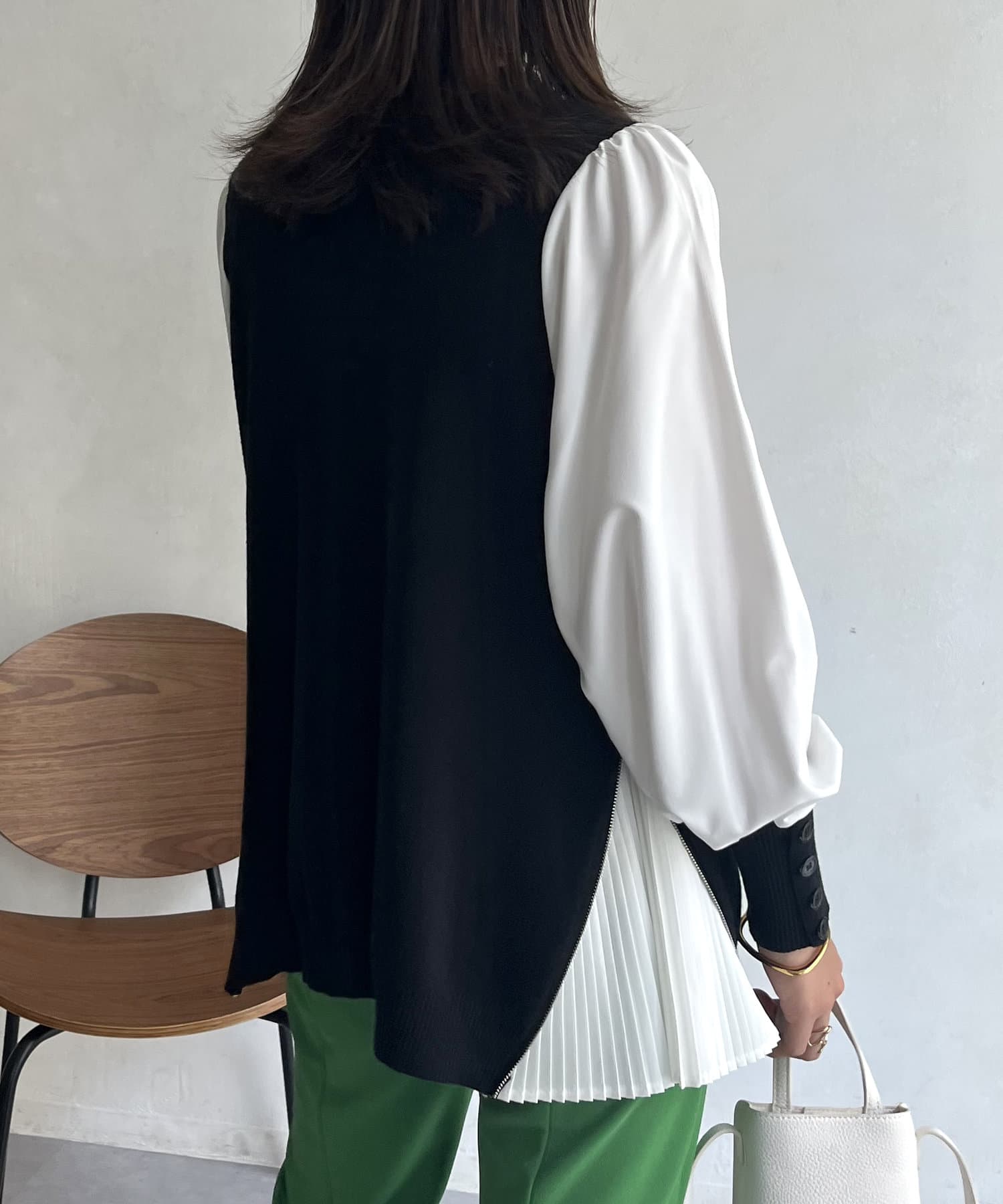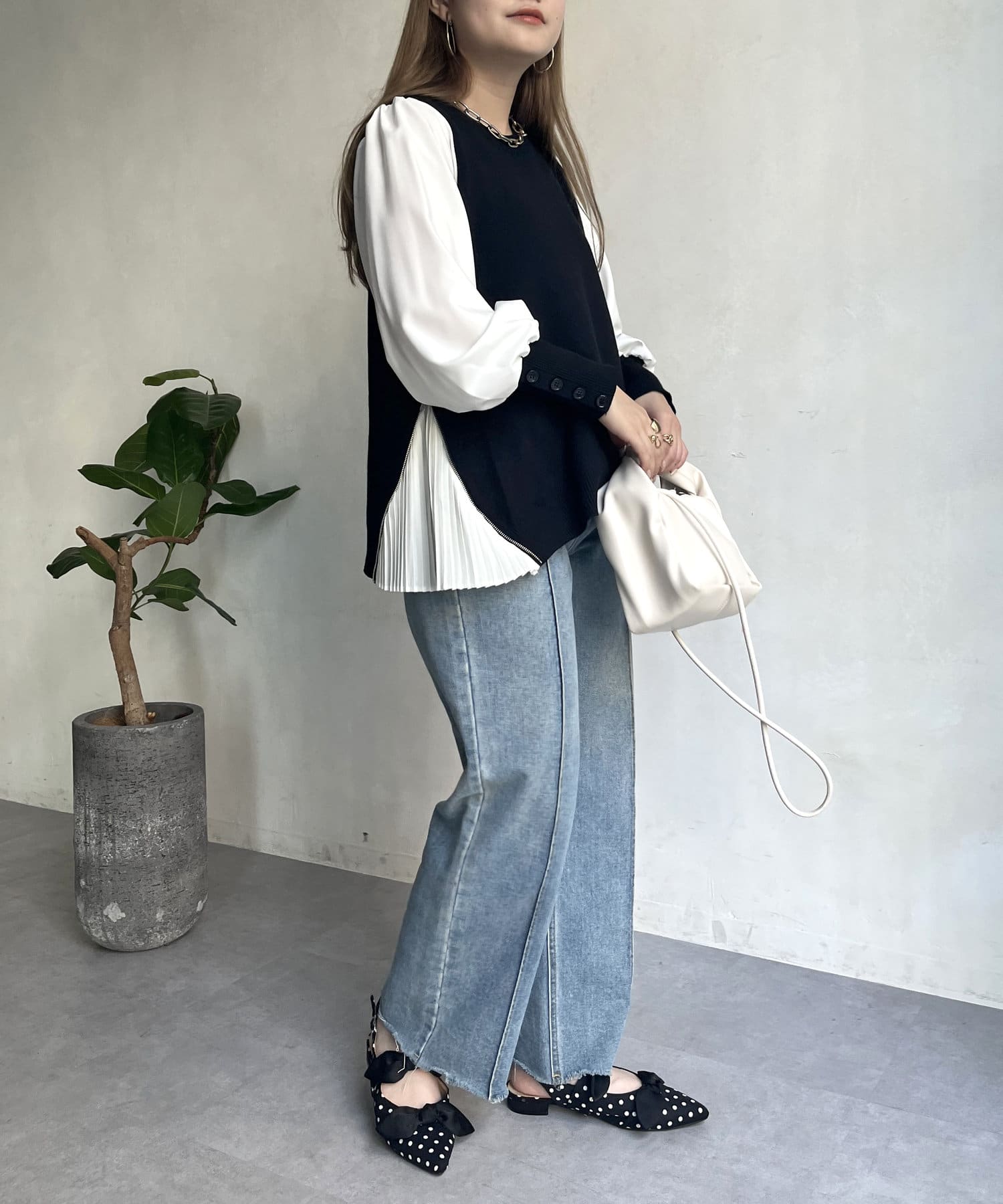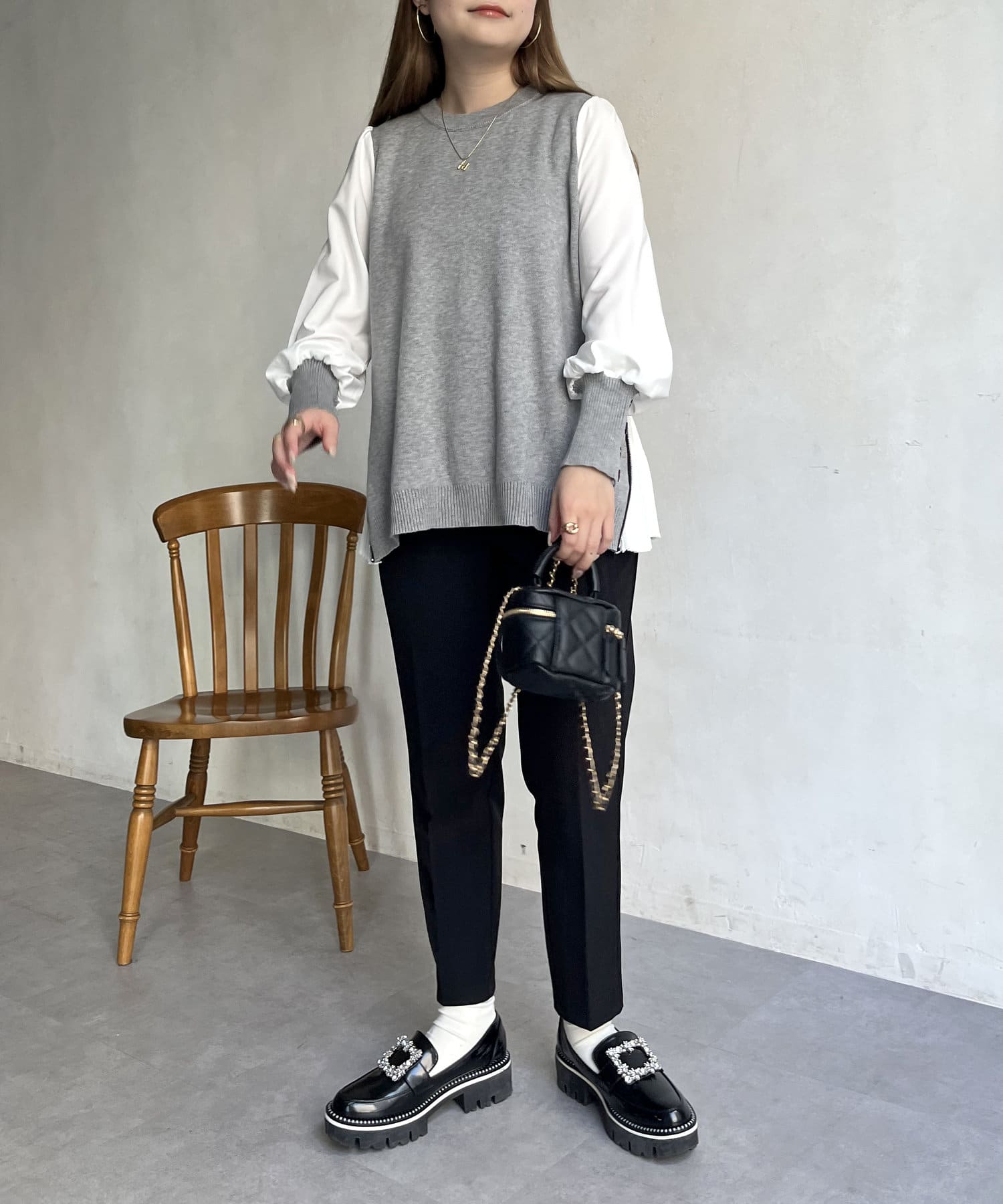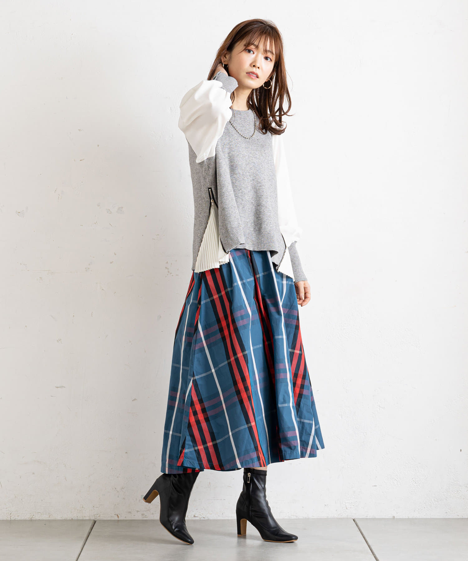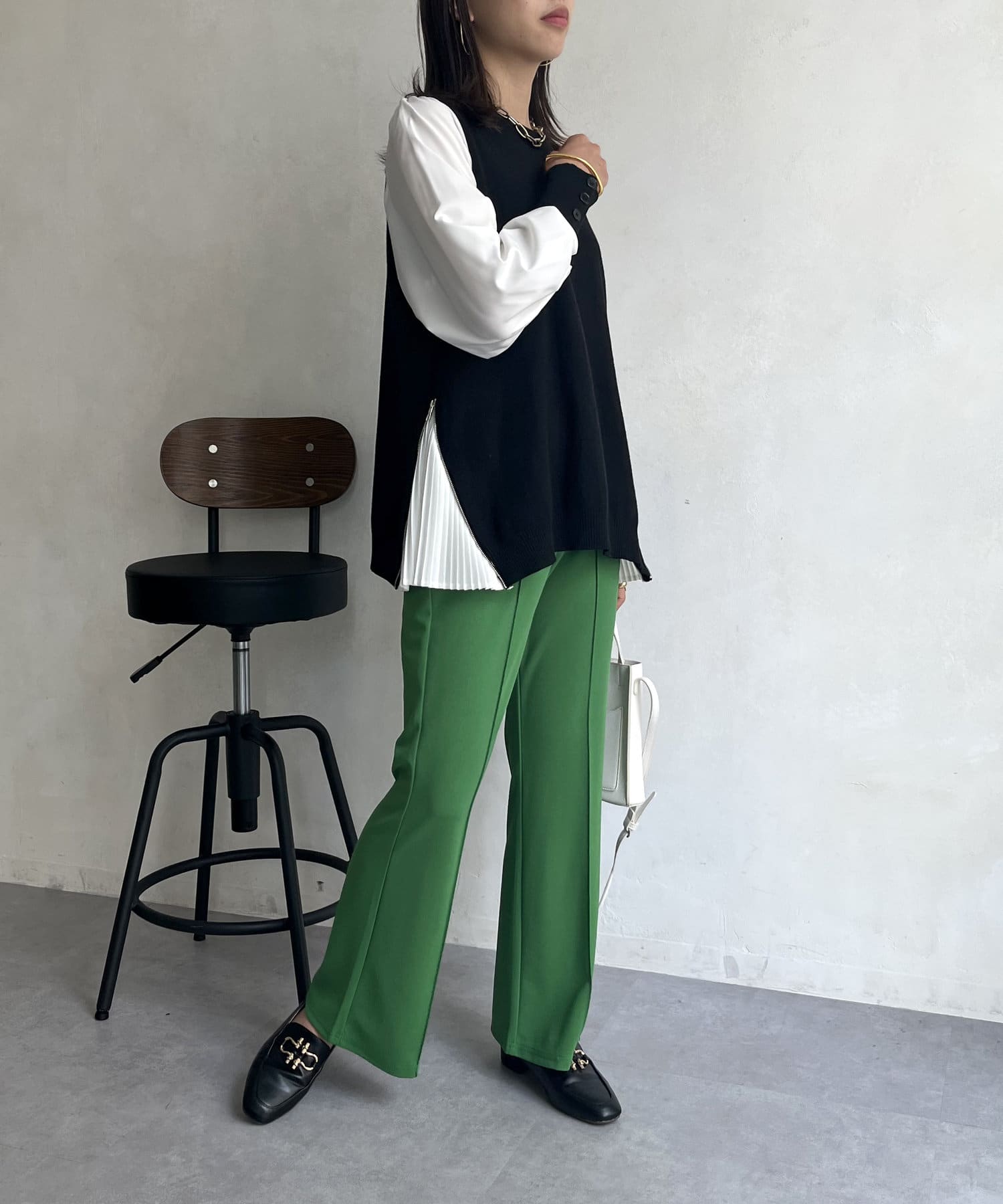 ●サイドジップの内側から覗くプリーツがコーデのアクセントに