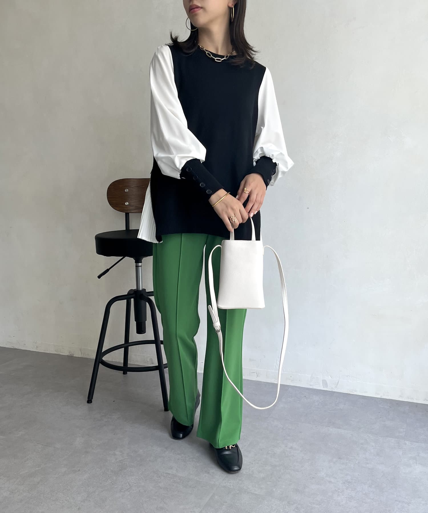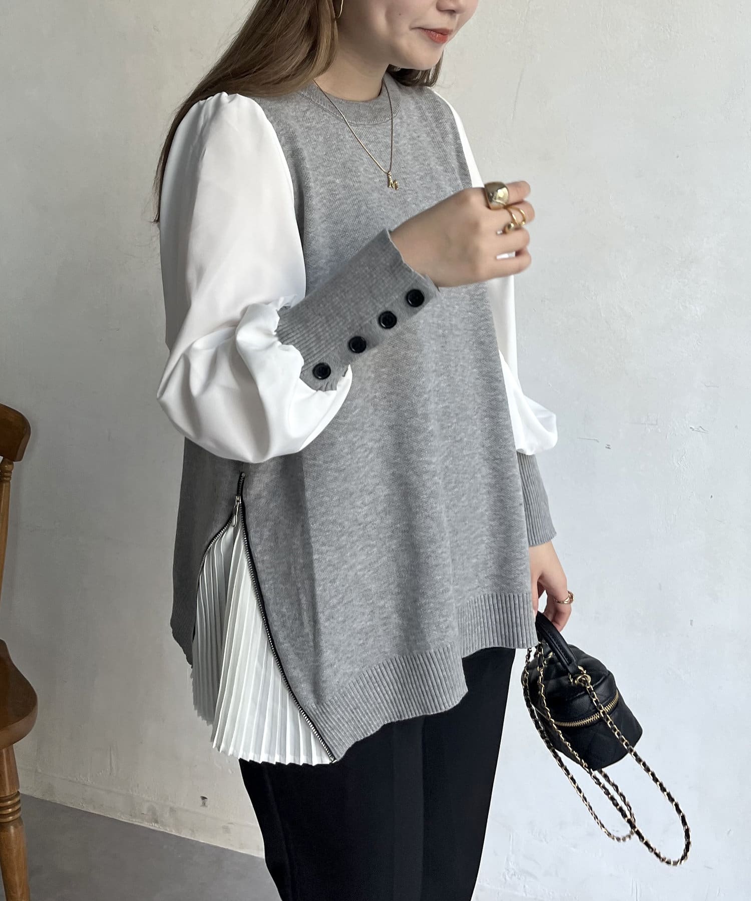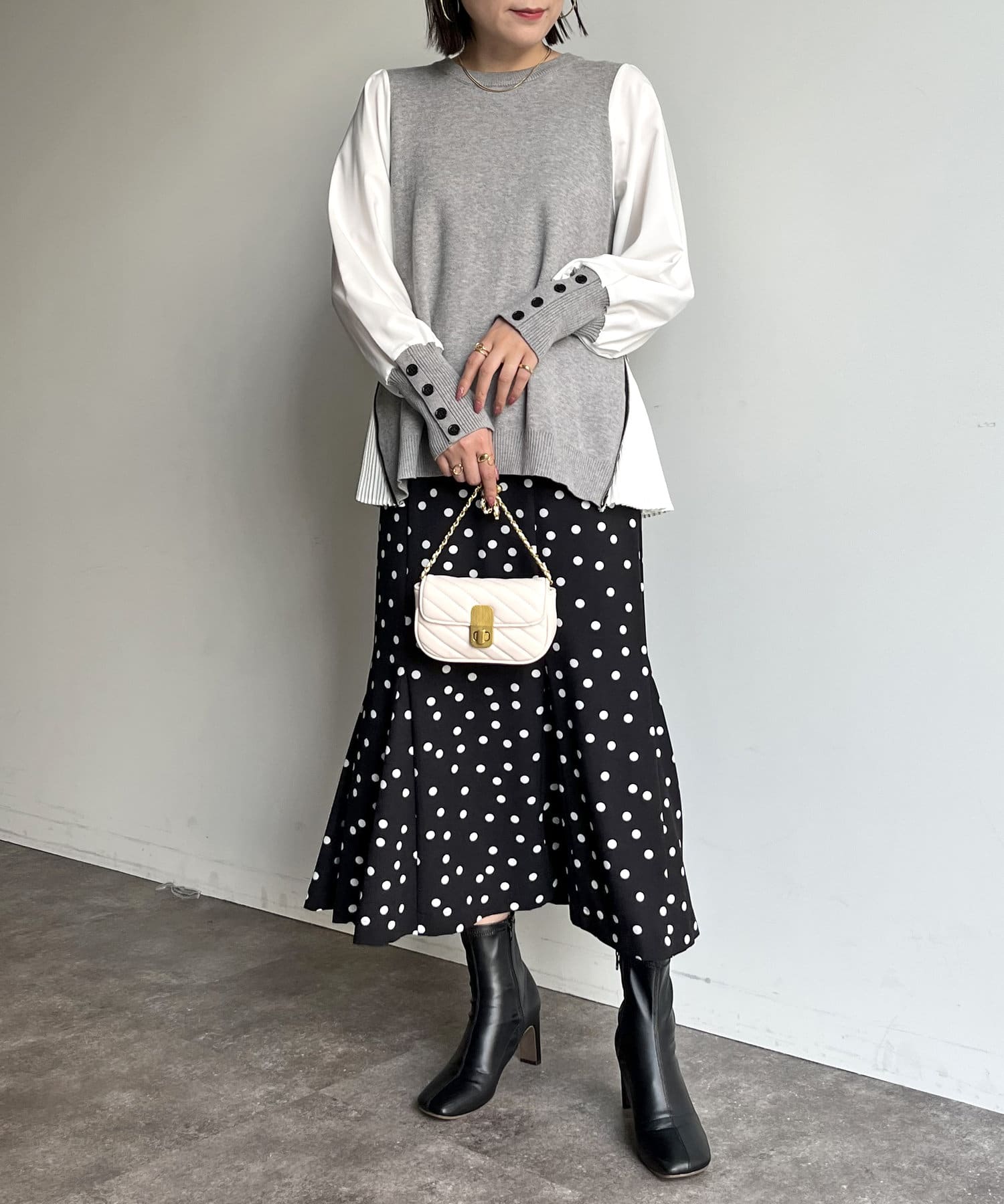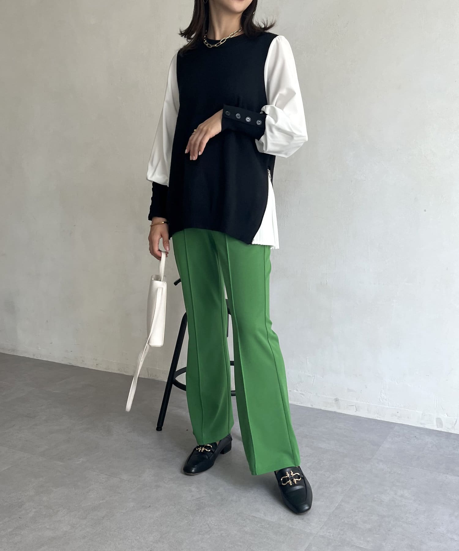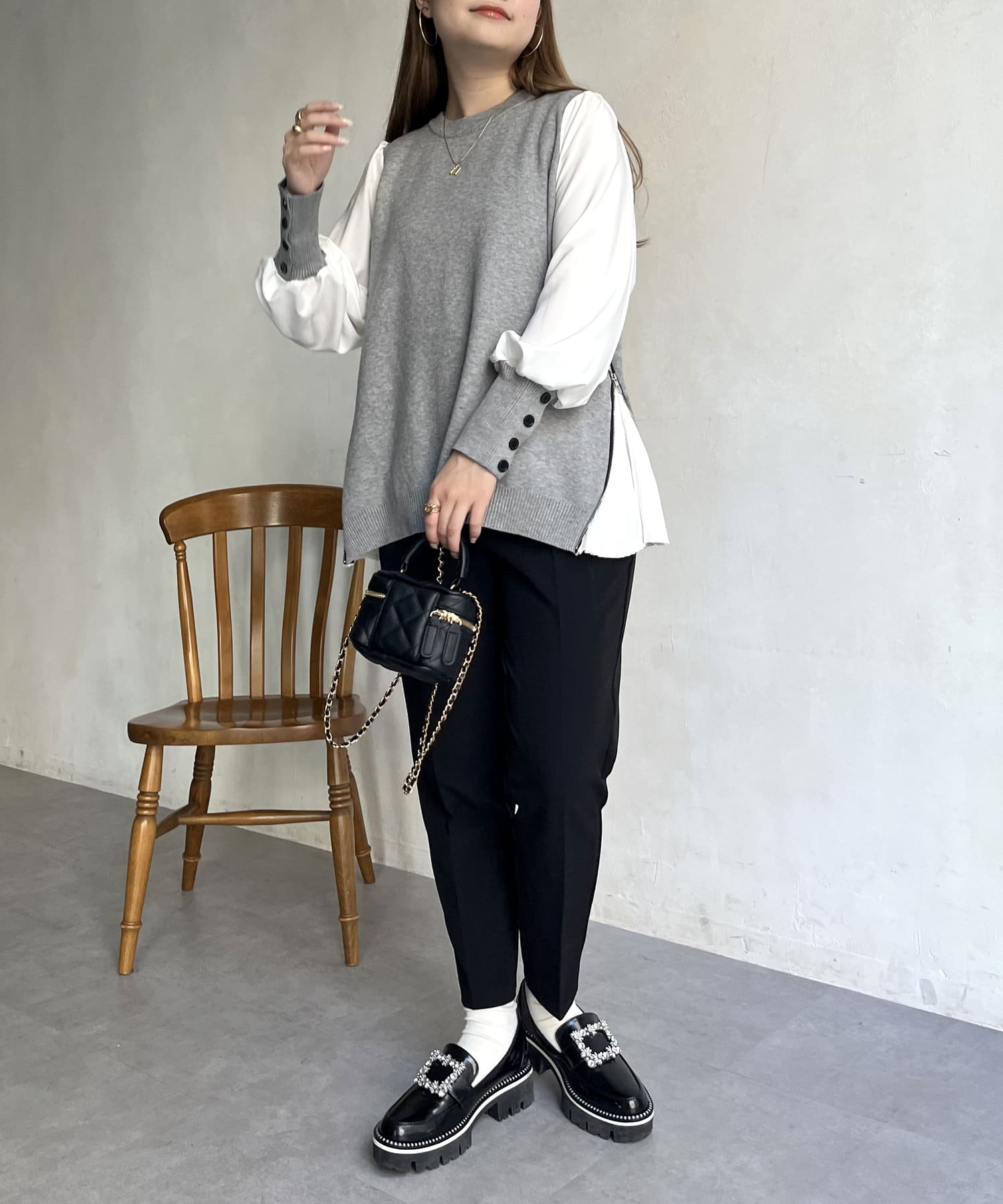 ●サイドジップの内側から覗くプリーツがコーデのアクセントに