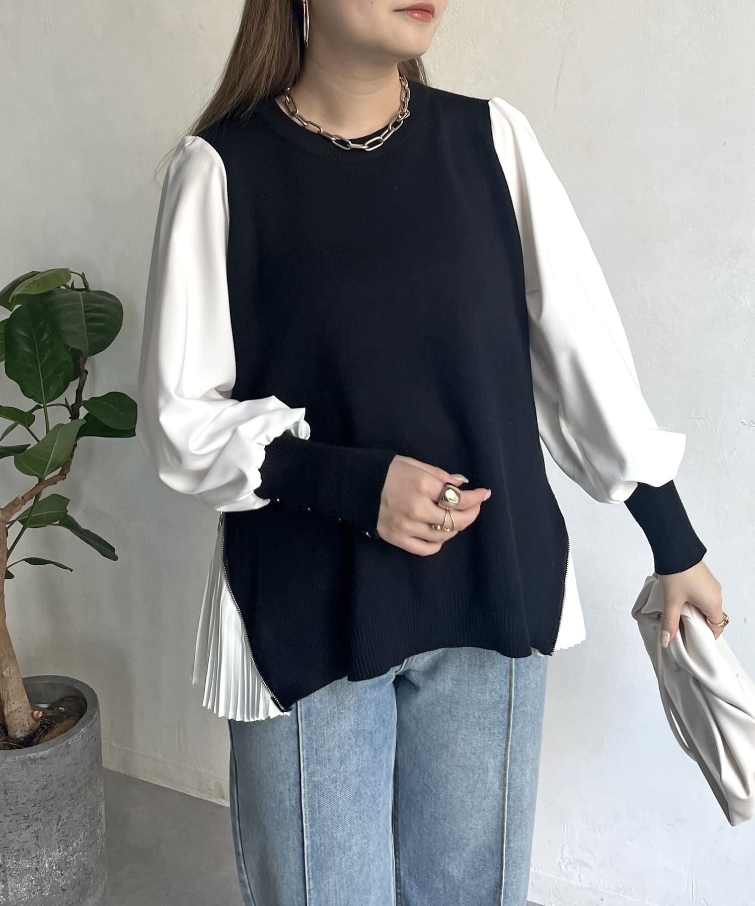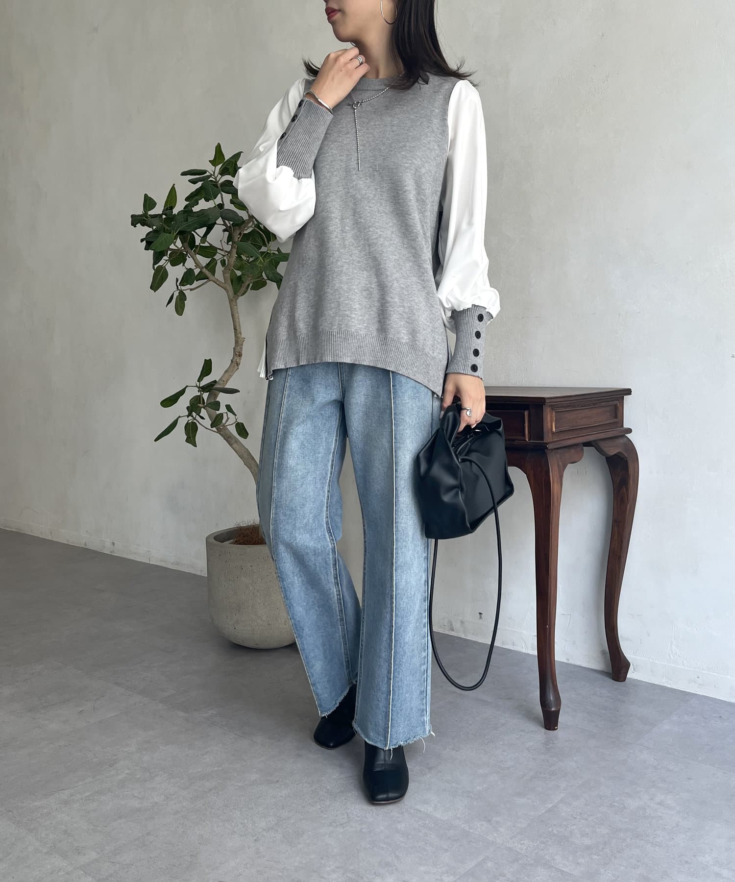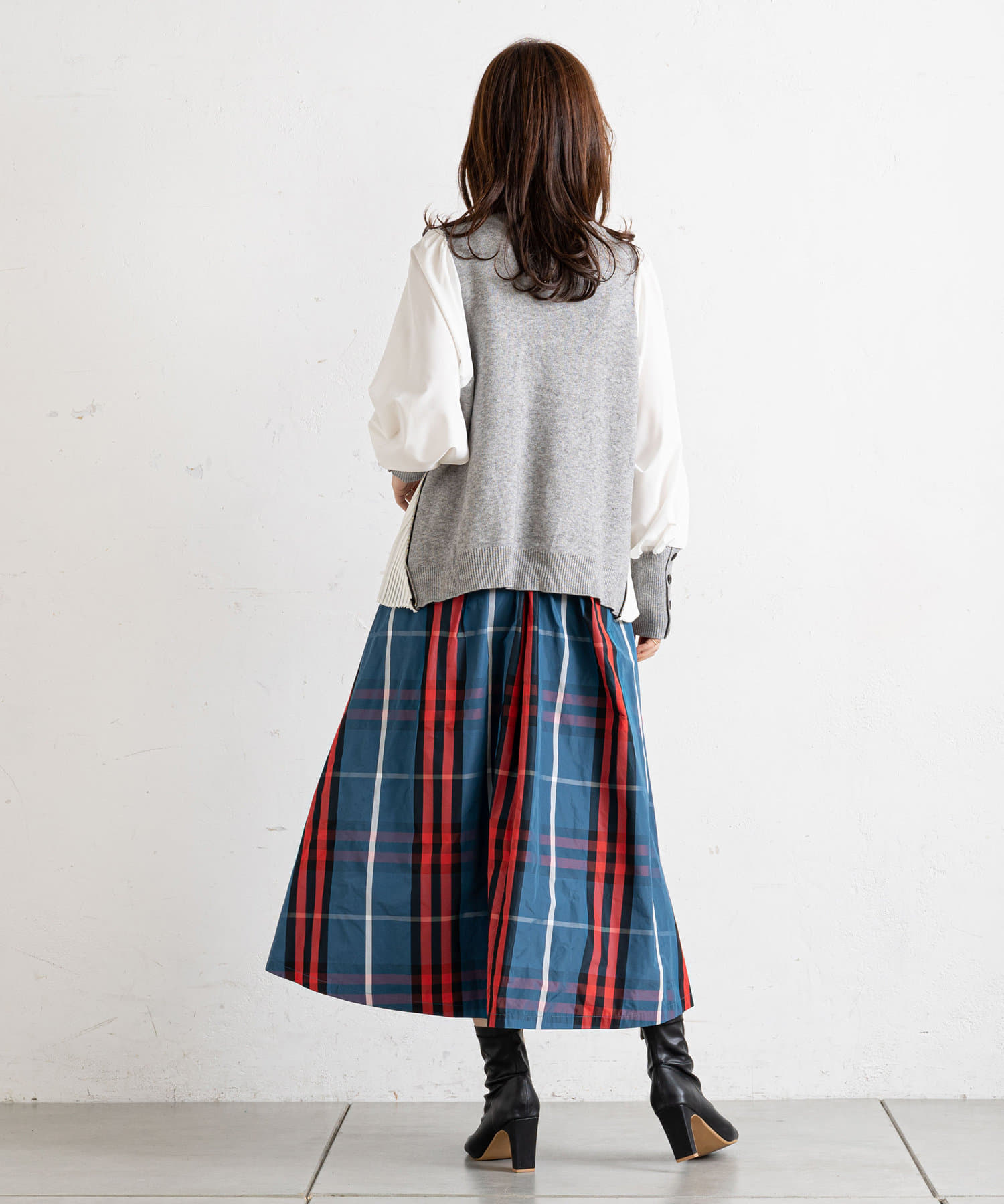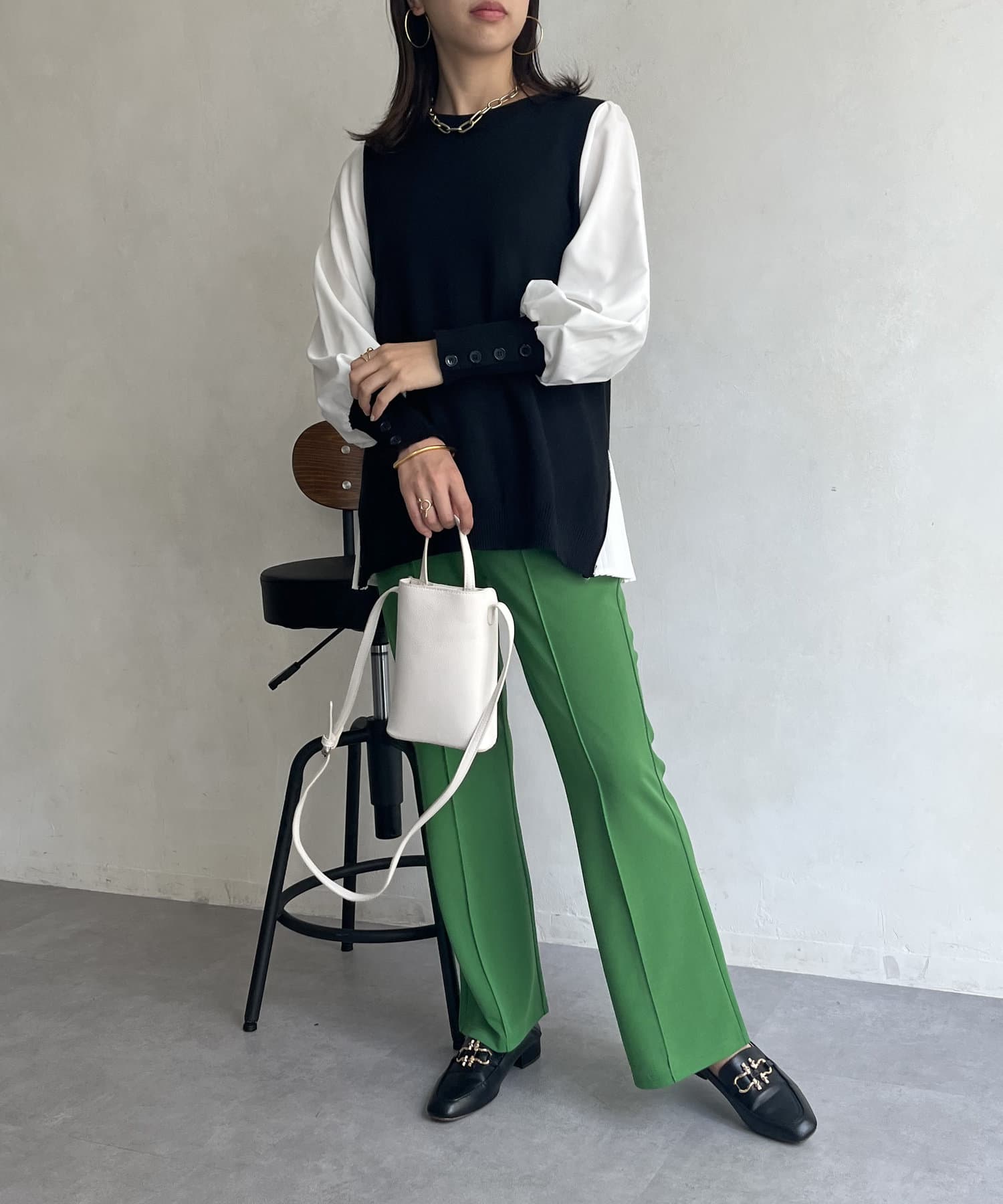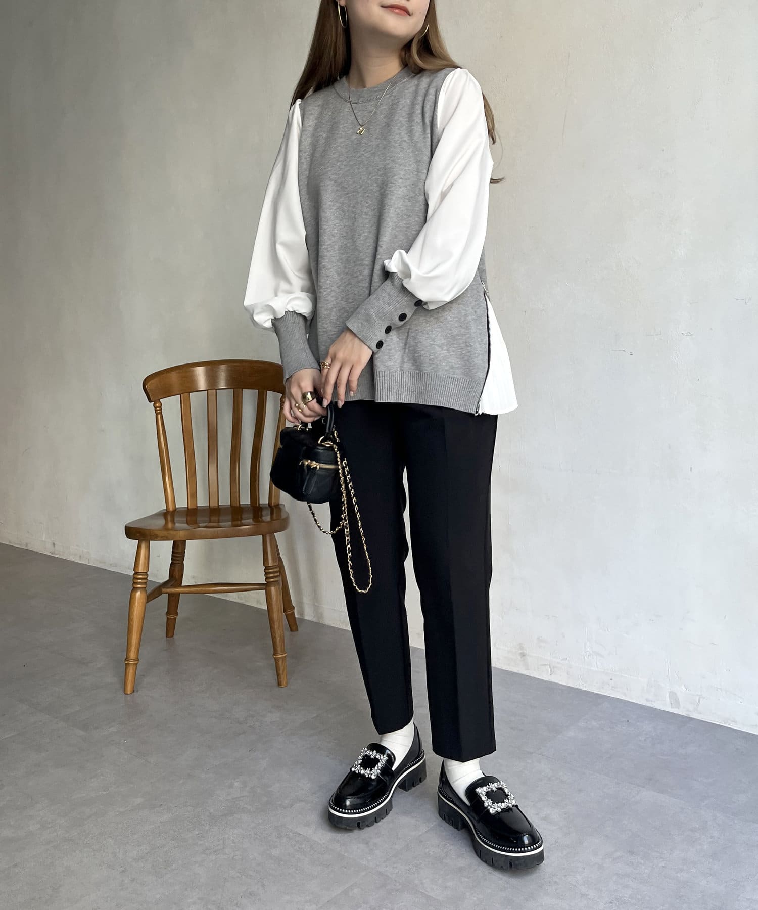●サイドジップの内側から覗くプリーツがコーデのアクセントに
